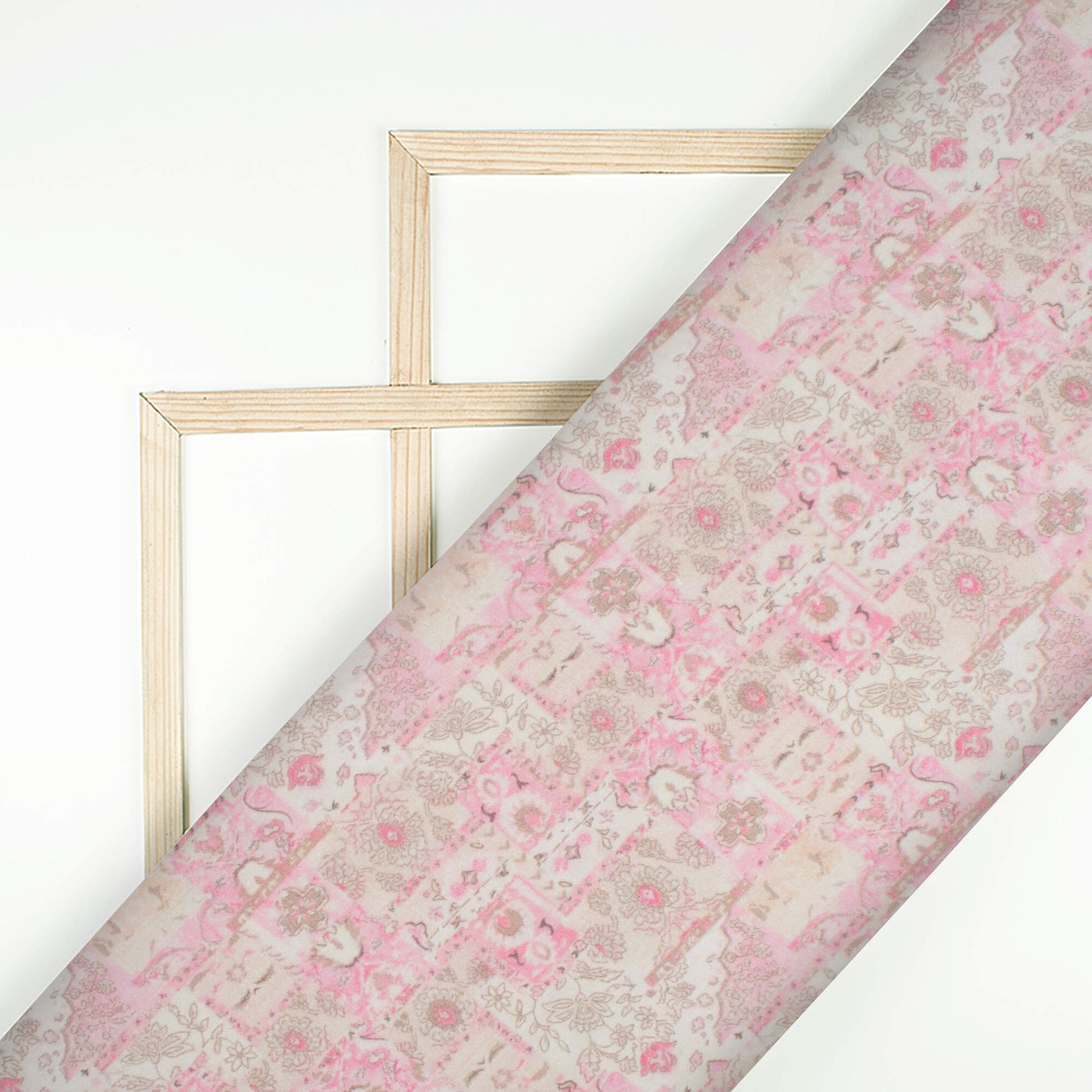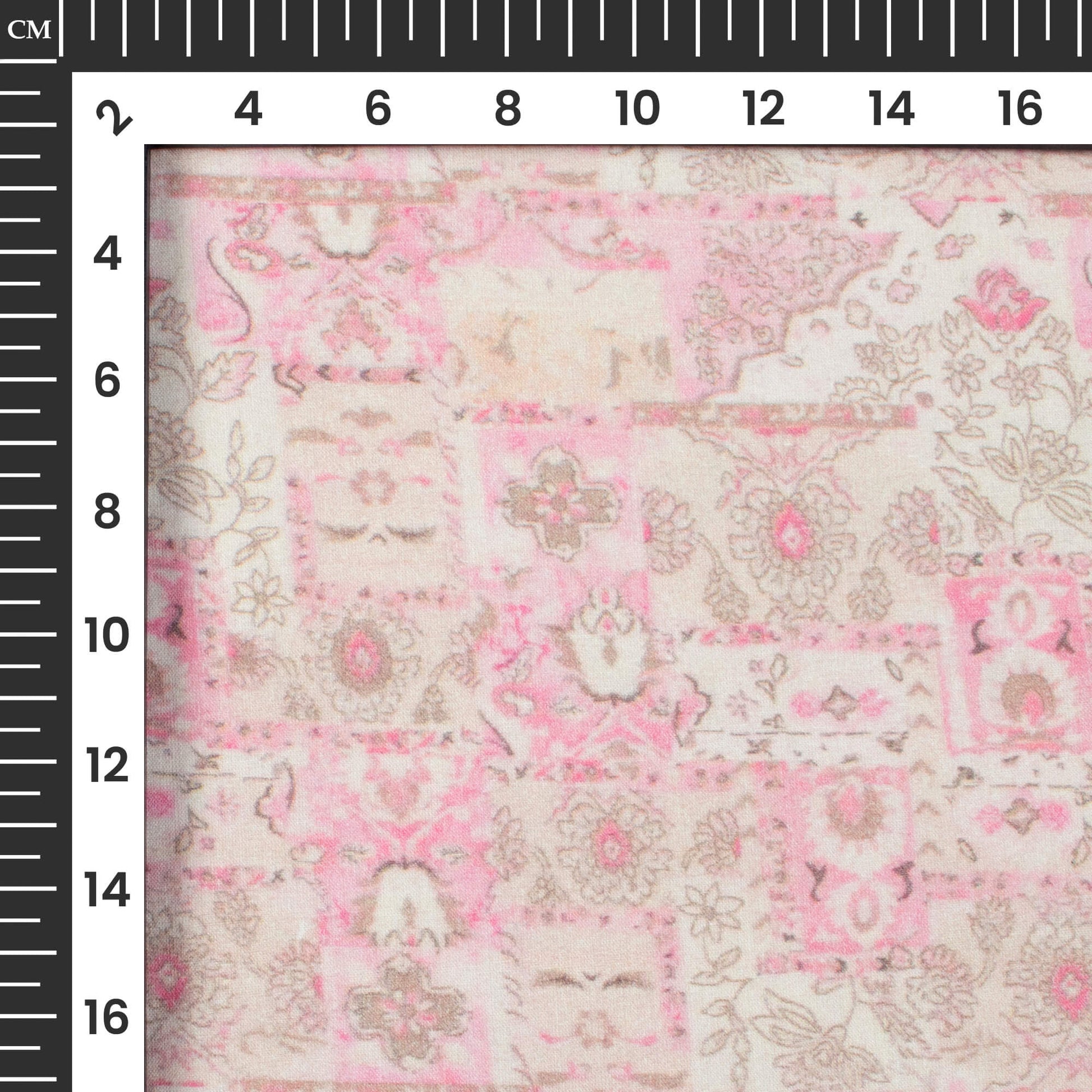 Blush Pink And Beige Floral Digital Print Cotton Cambric Fabric