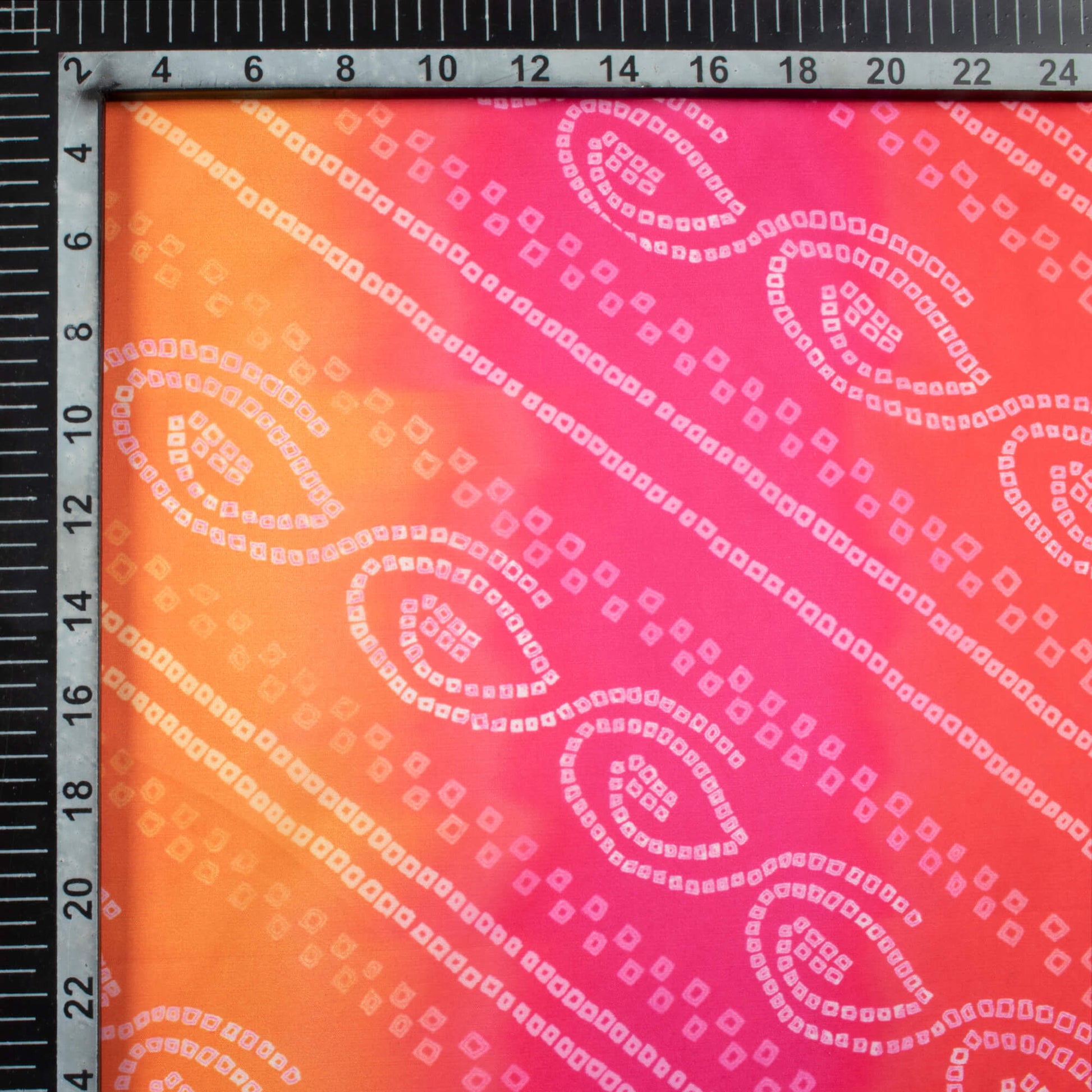 Candy Red And Carrot Orange Bandhanii Pattern Digital Print Organza Satin Fabric