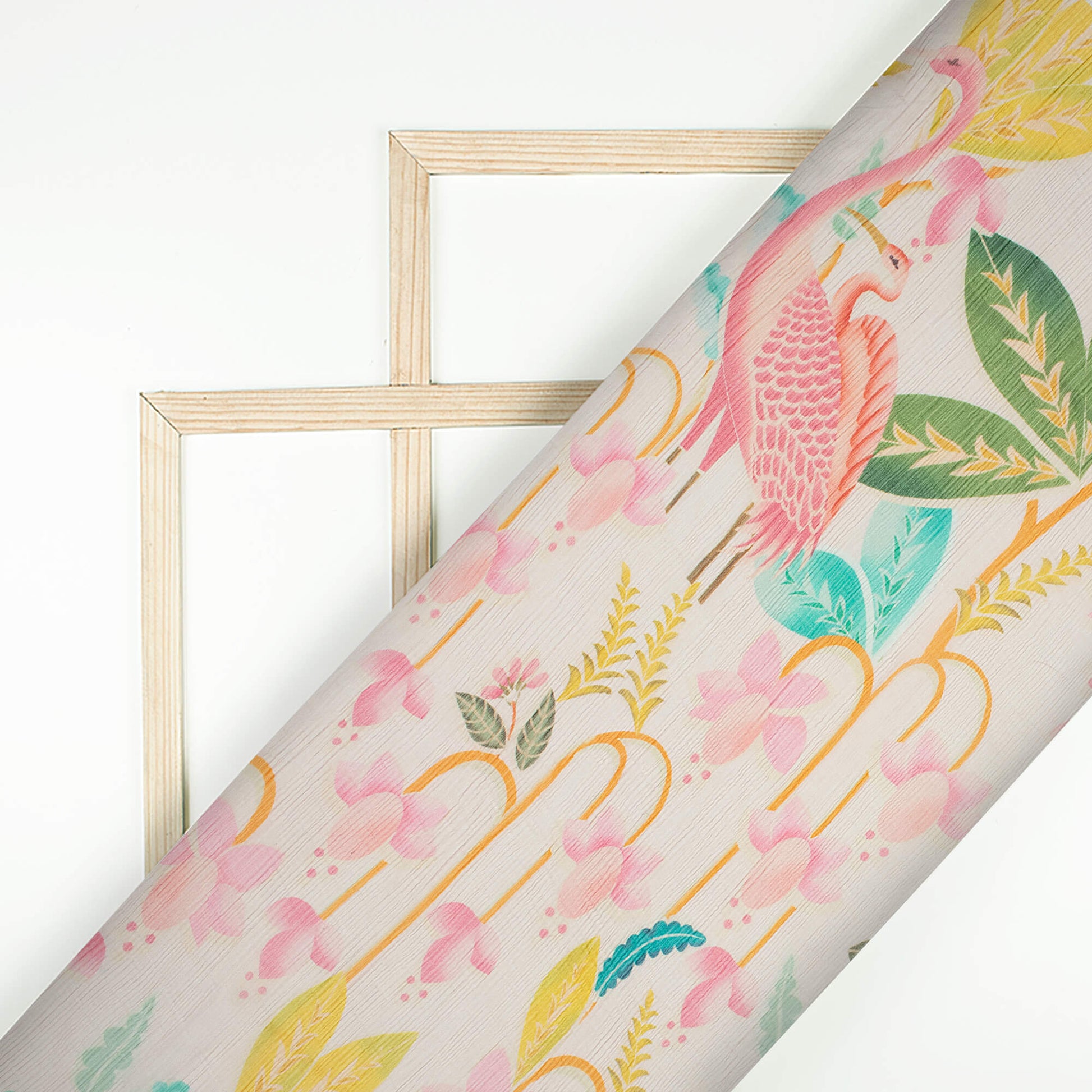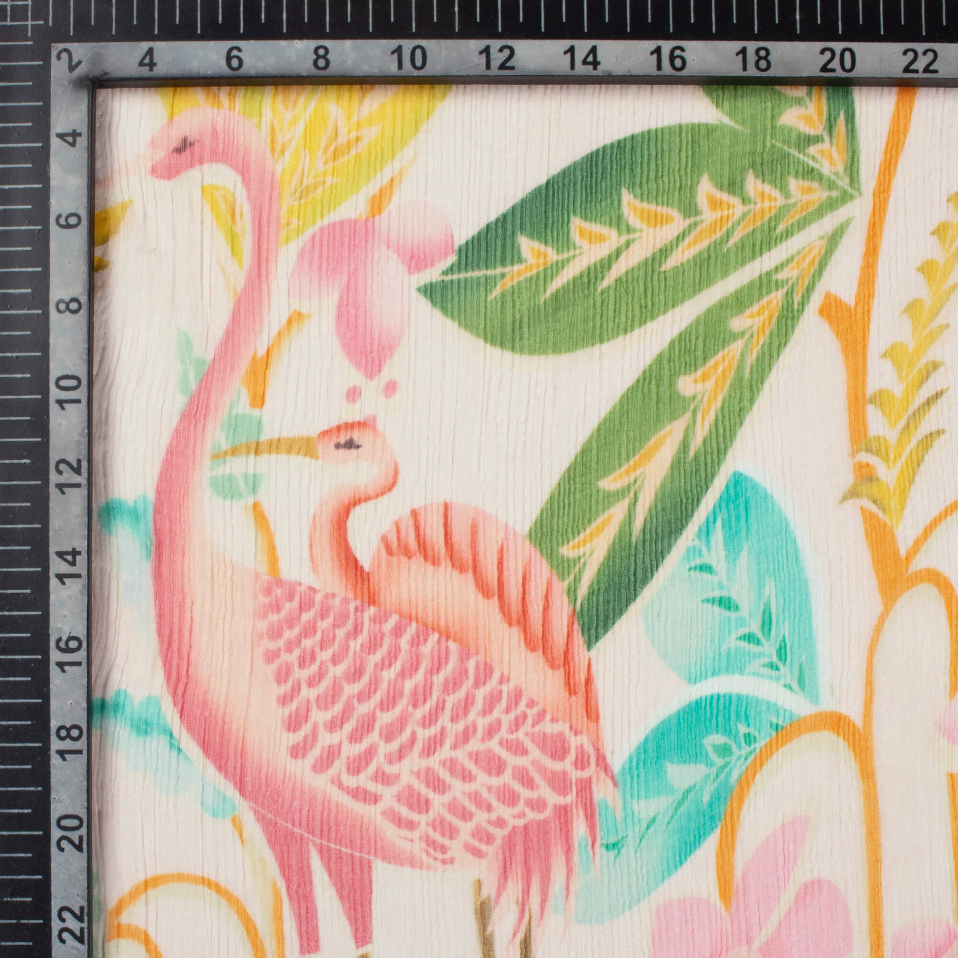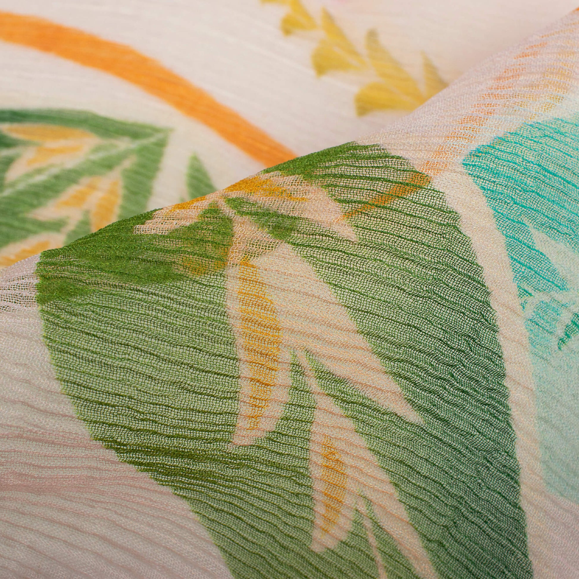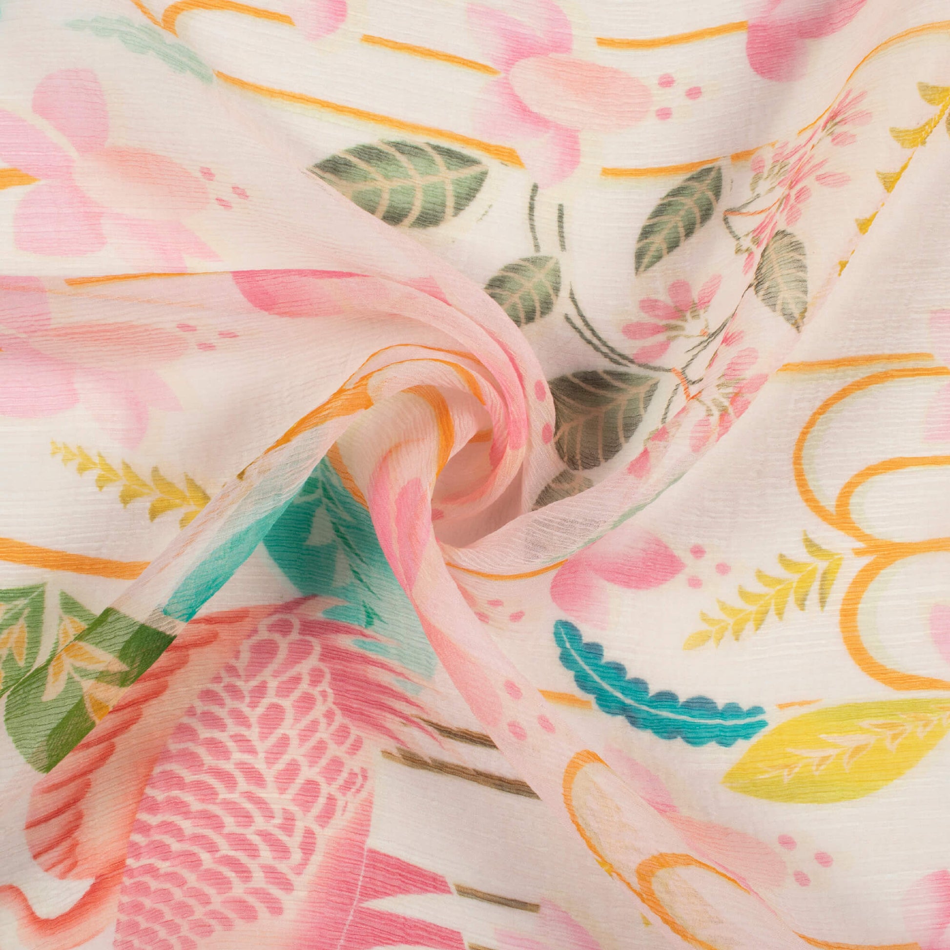 Carnation Pink And Green Floral Pattern Digital Print Bemberg Chiffon Fabric