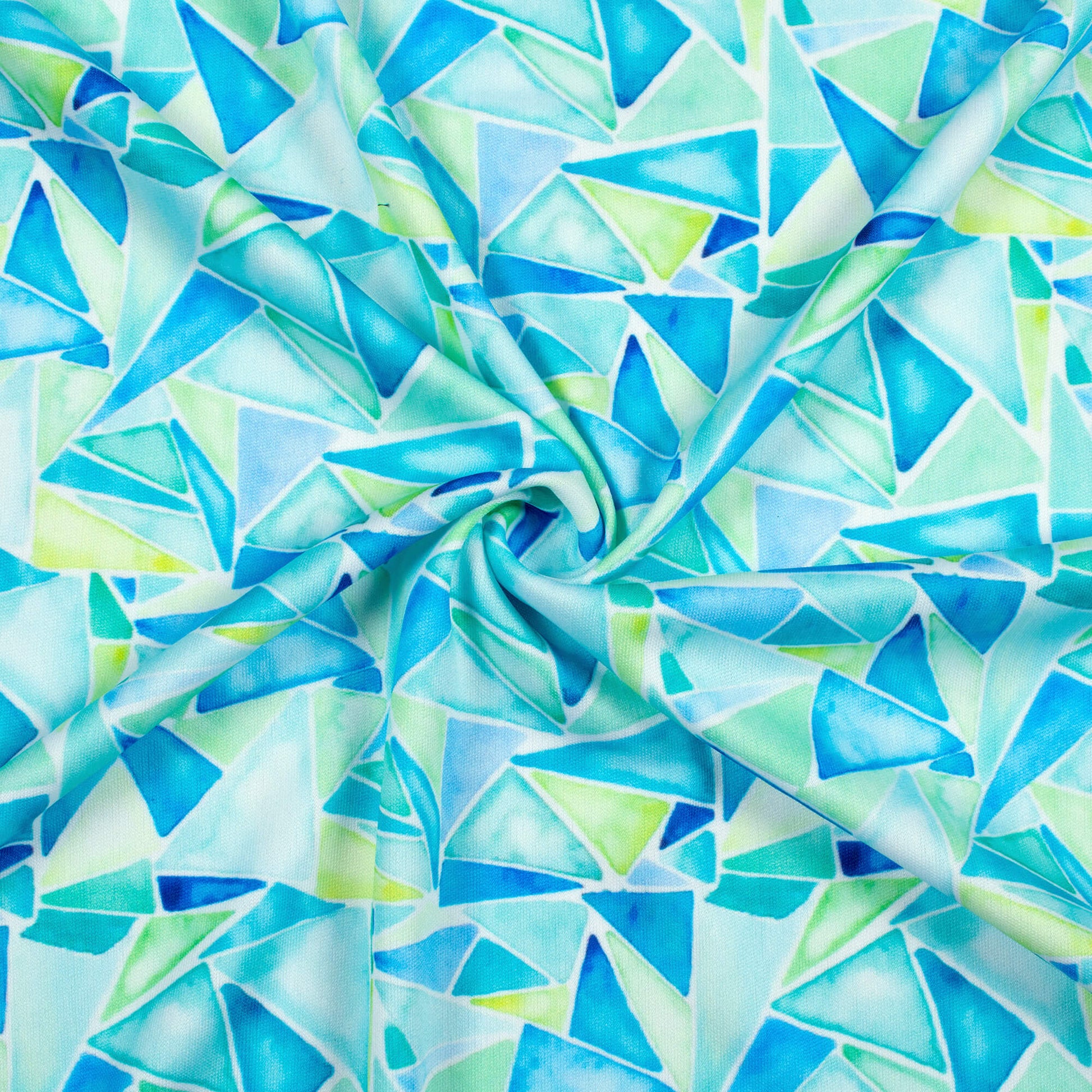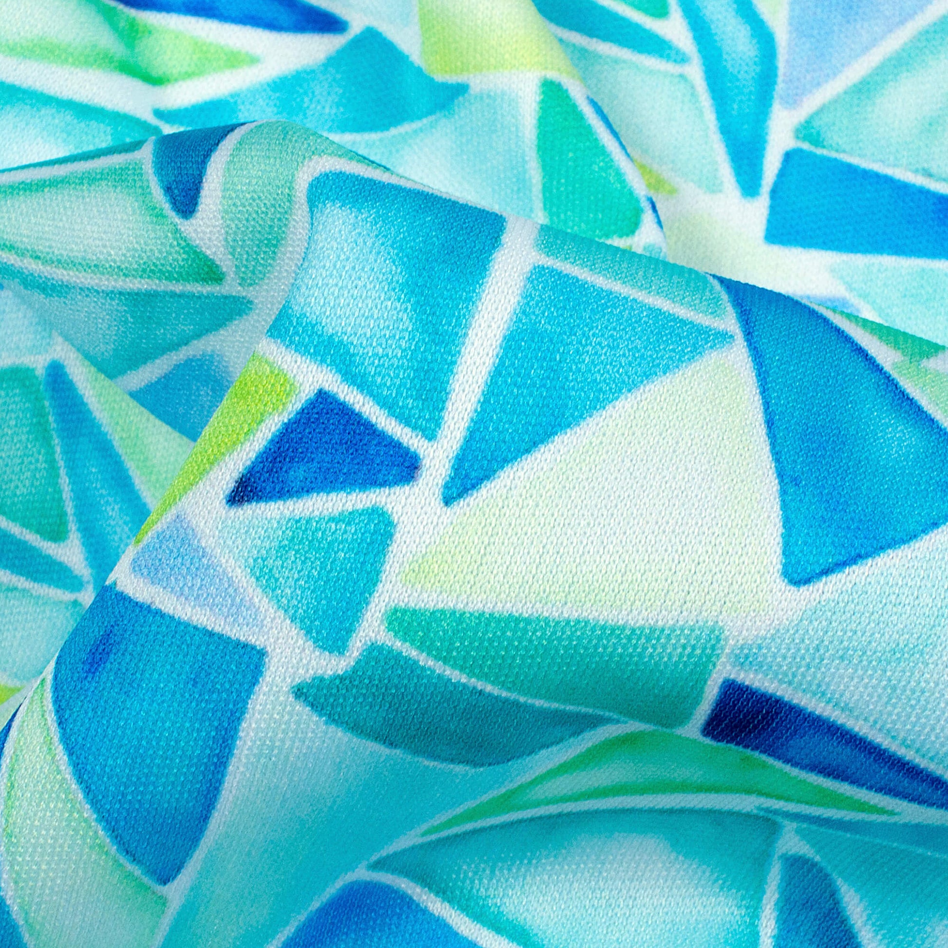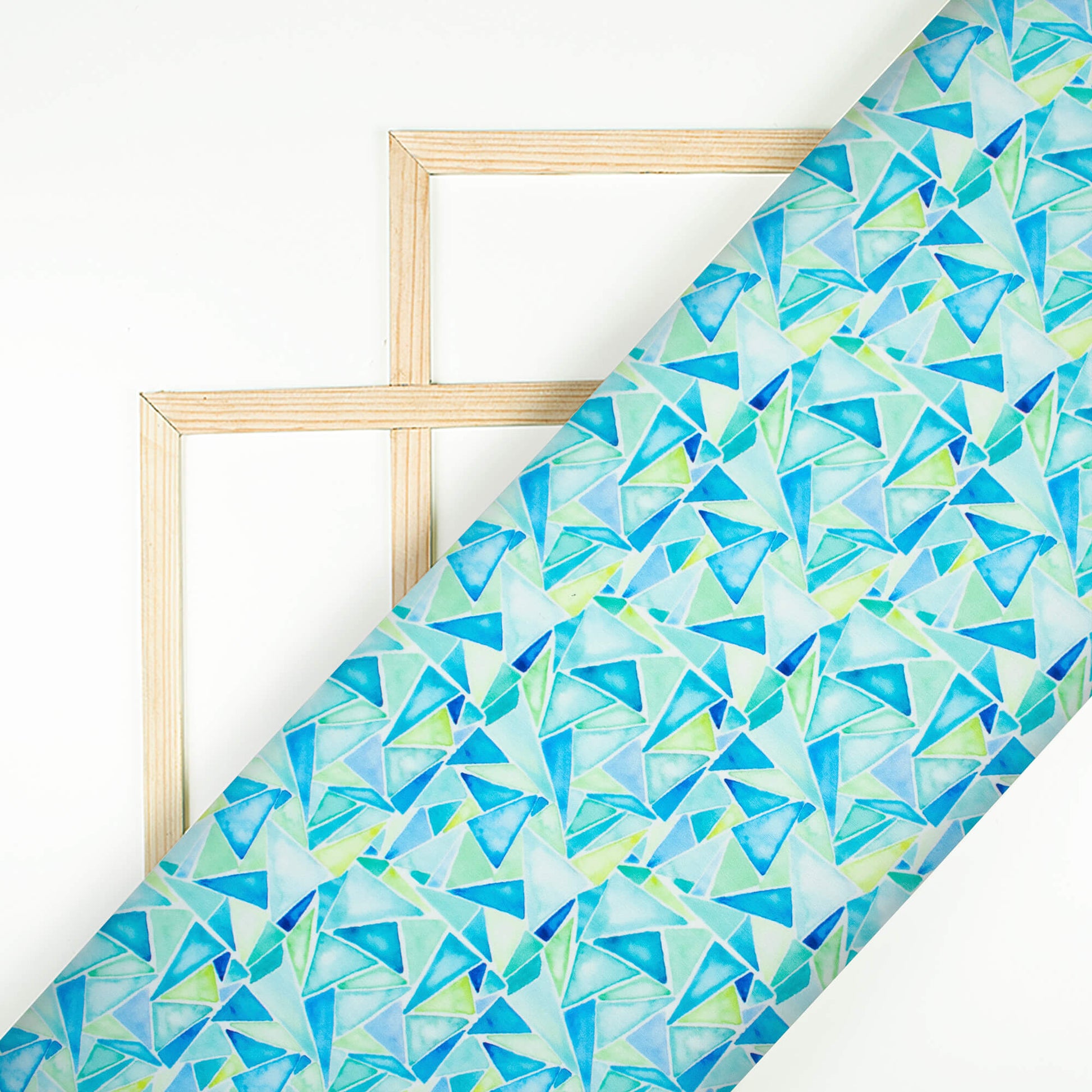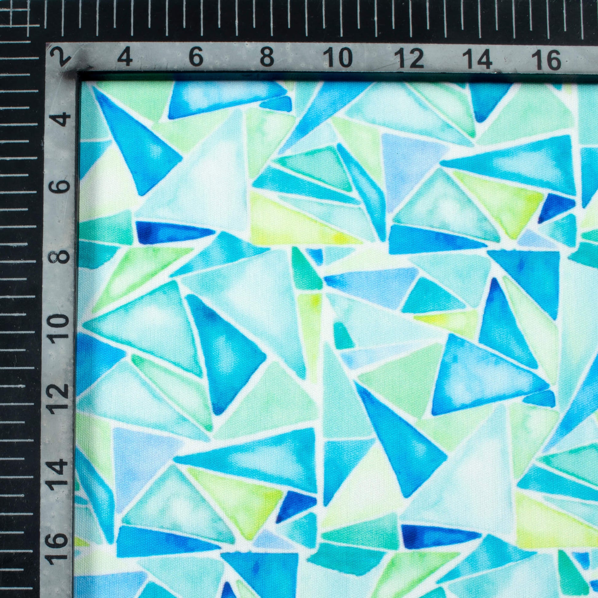 Carolina Blue And Pale Green Geometric Pattern Digital Print Lycra Fabric (Width 58 Inches)