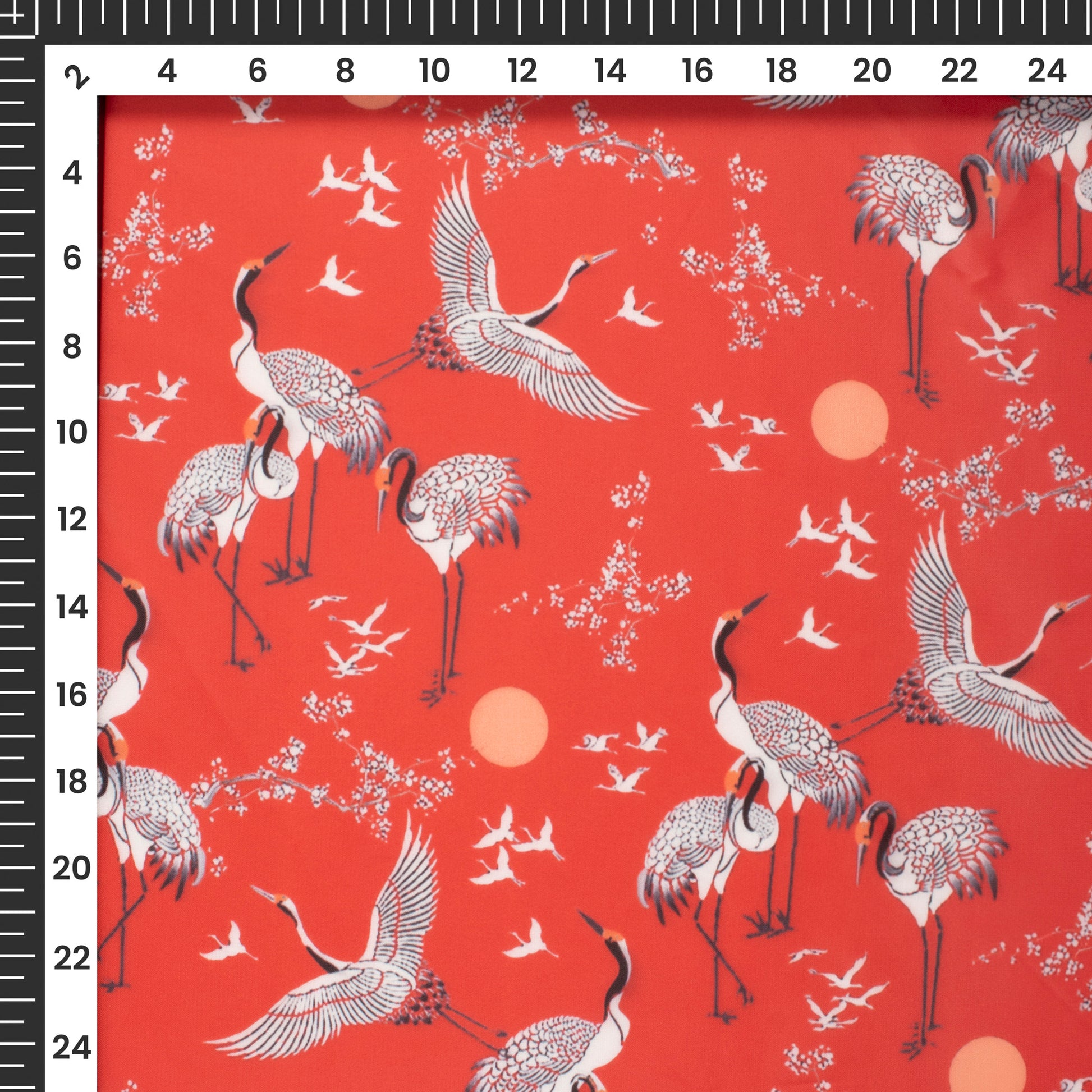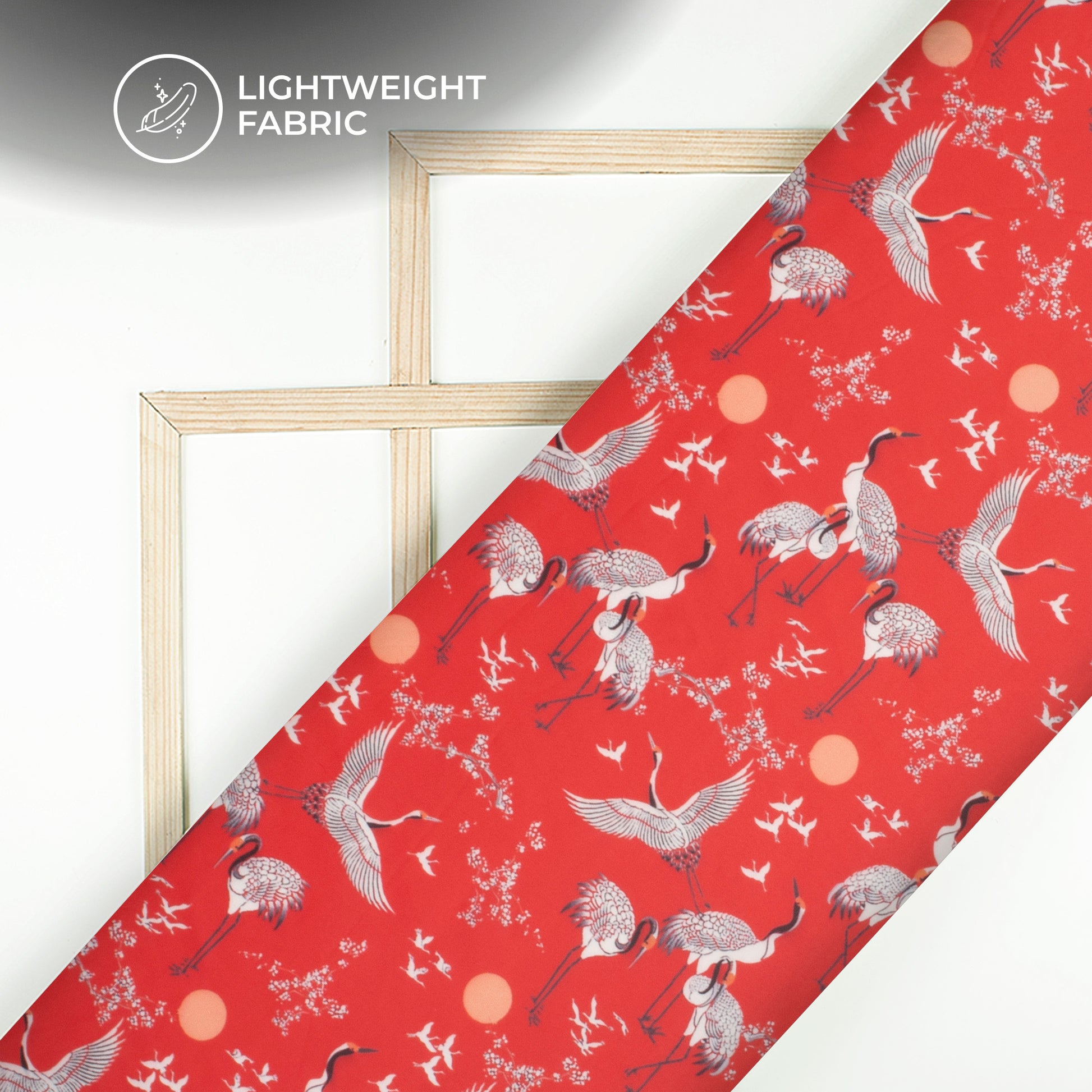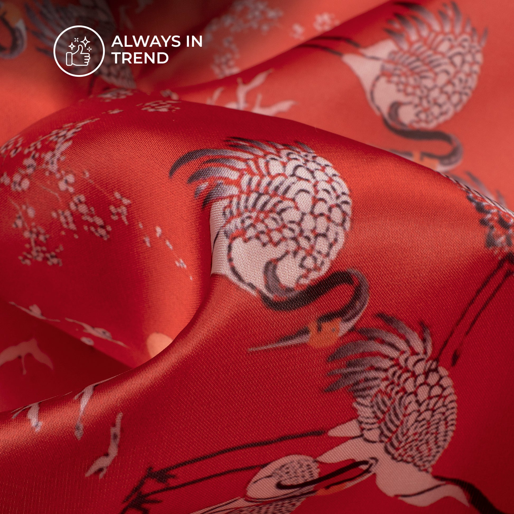 Cherry Red Bird Digital Print Organza Satin Fabric