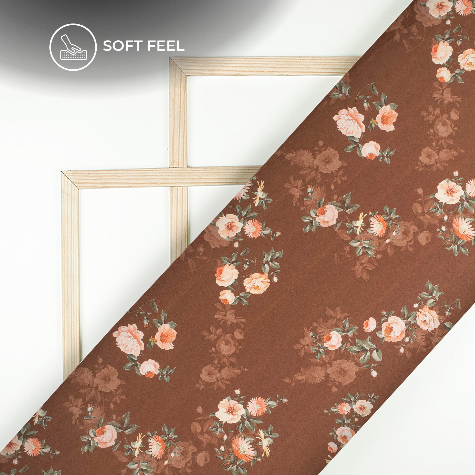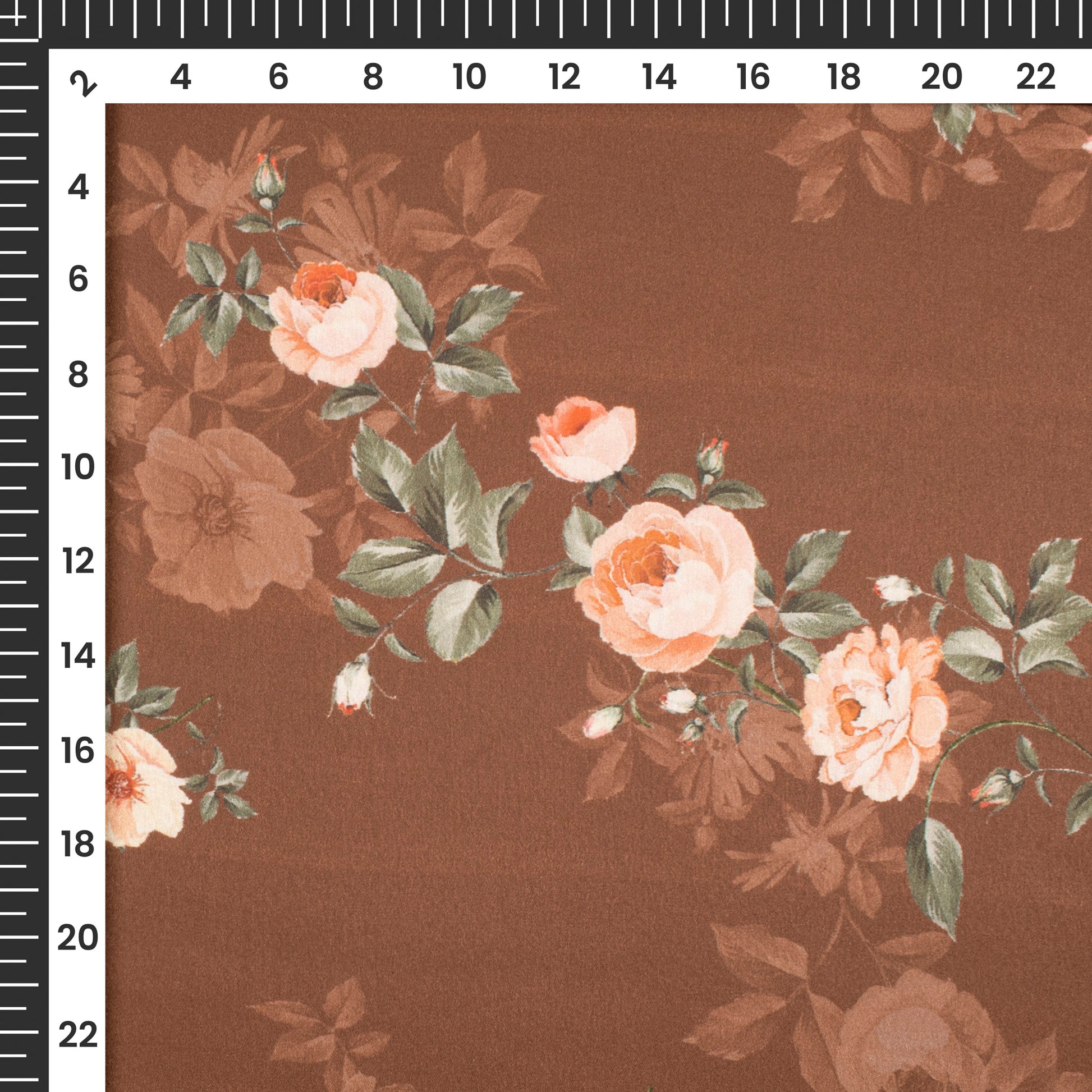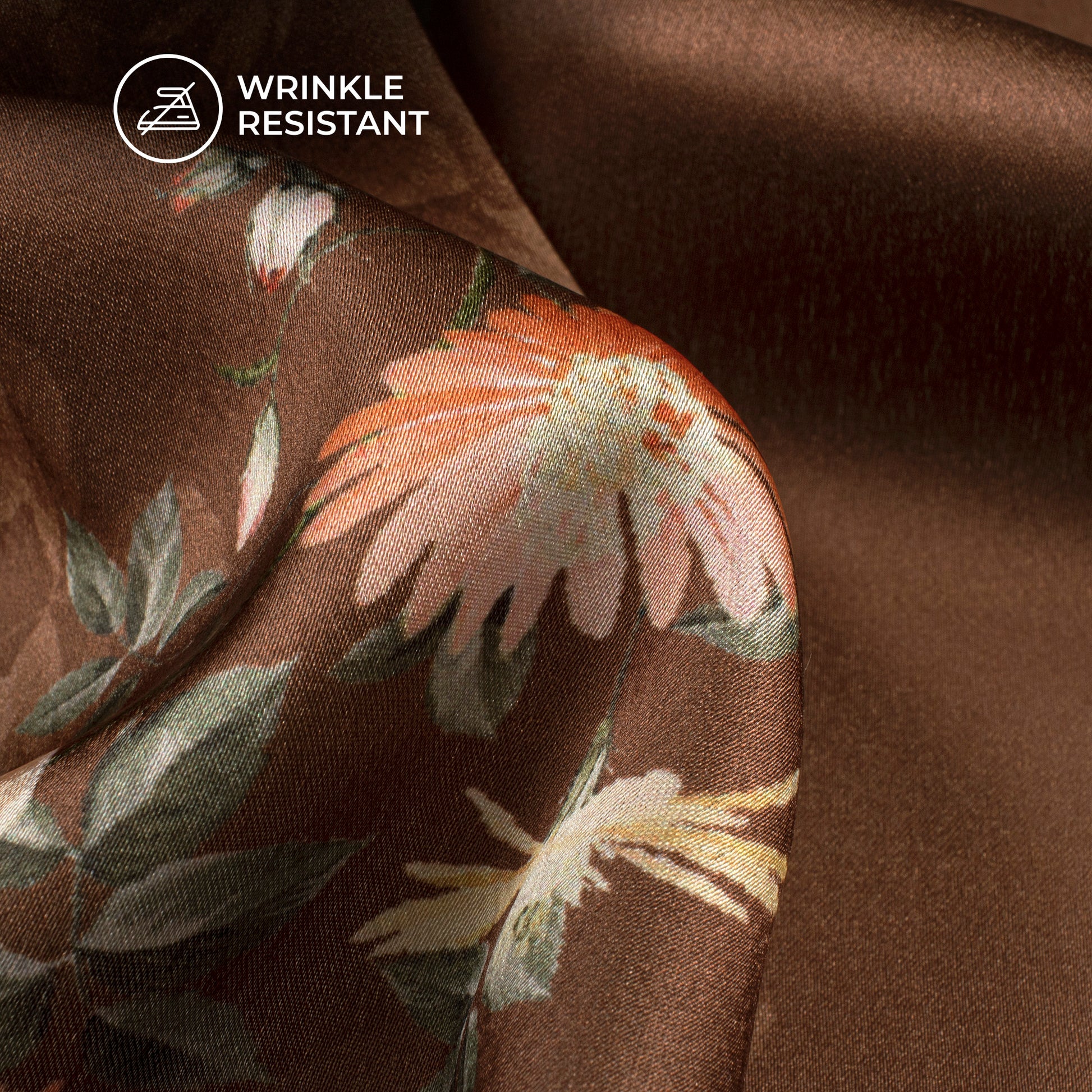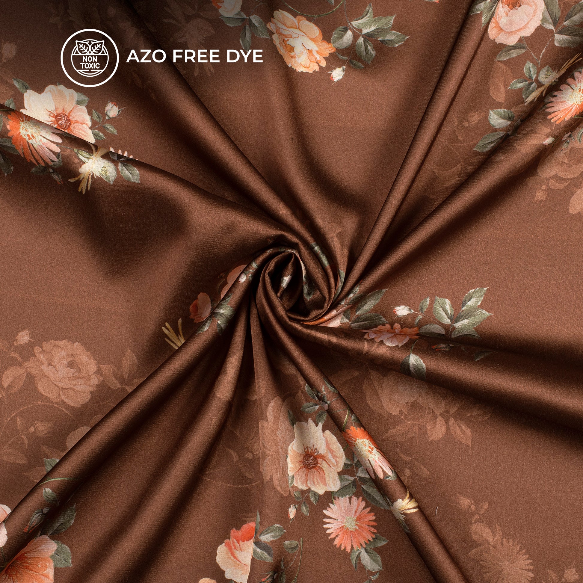 Chocolate Brown Floral Digital Print Japan Satin Fabric