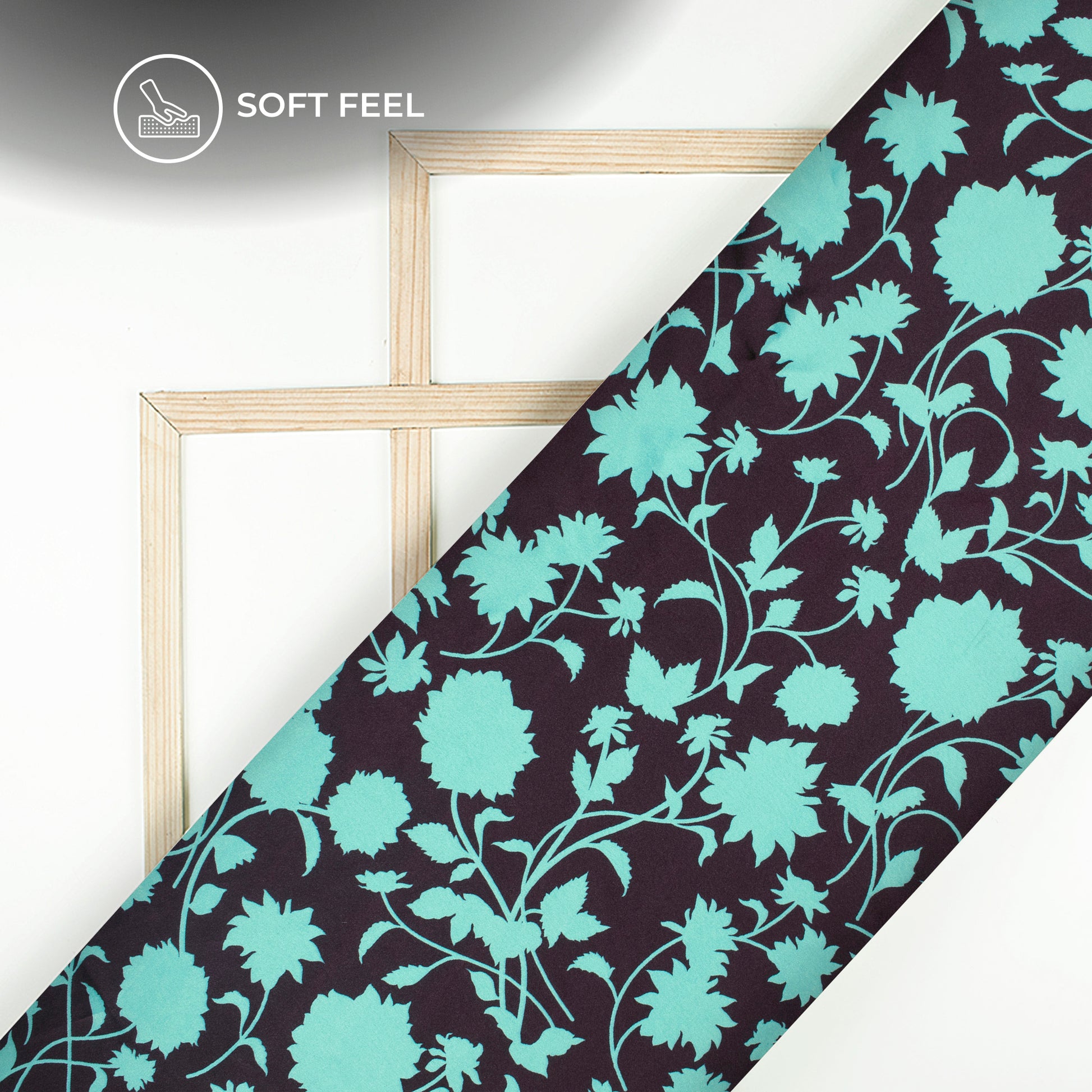 Classical Blue Floral Digital Print Japan Satin Fabric