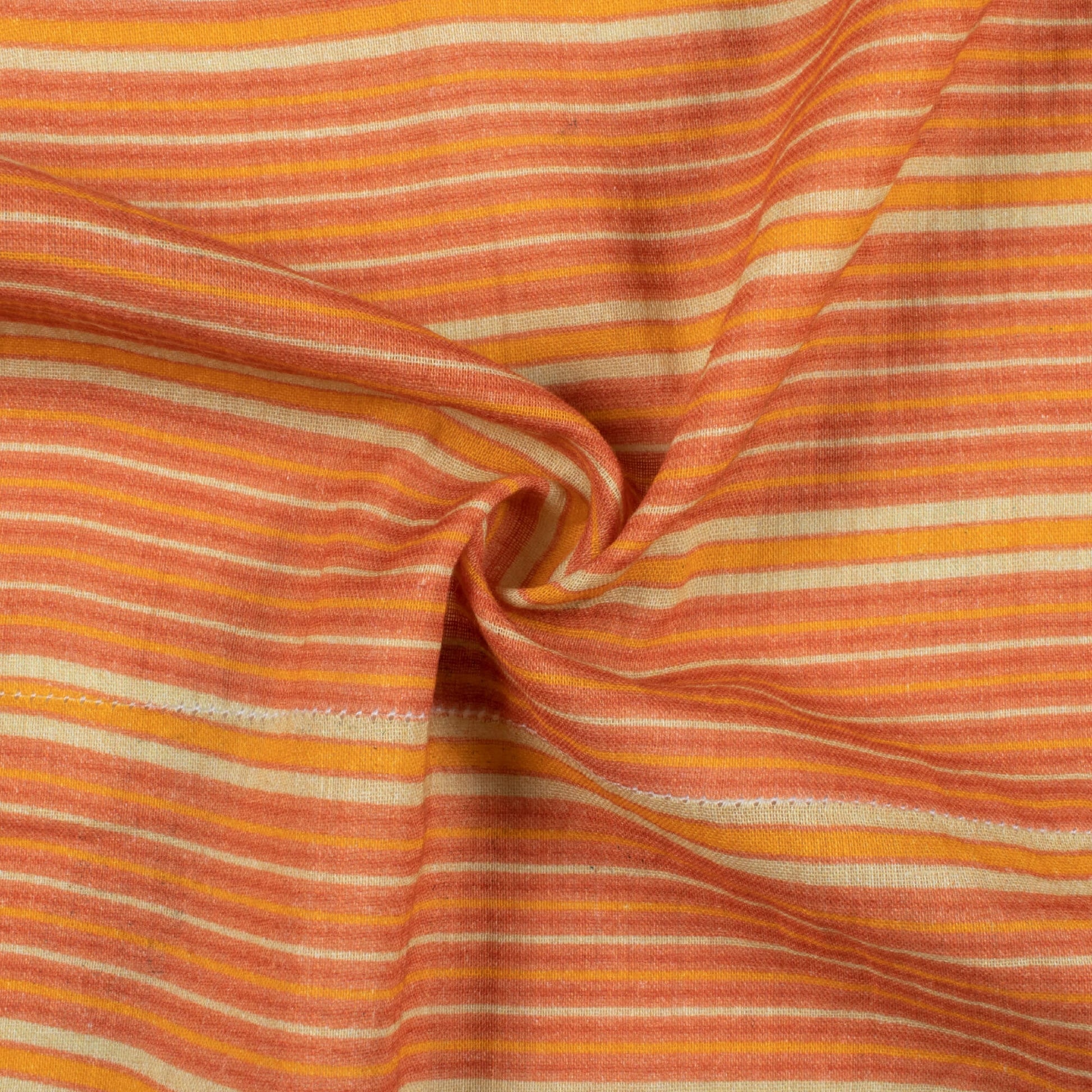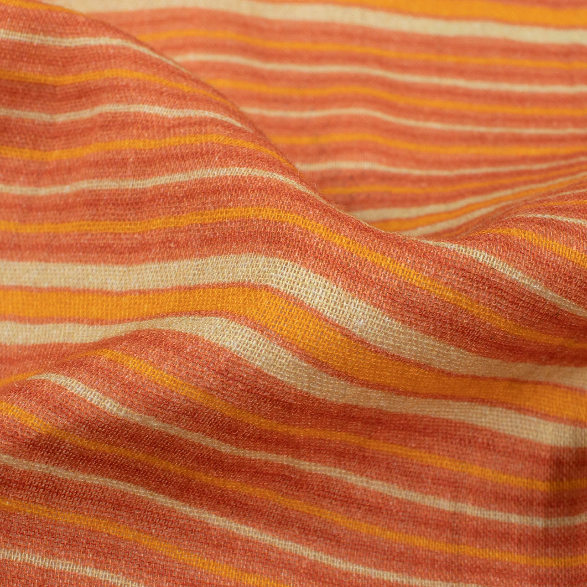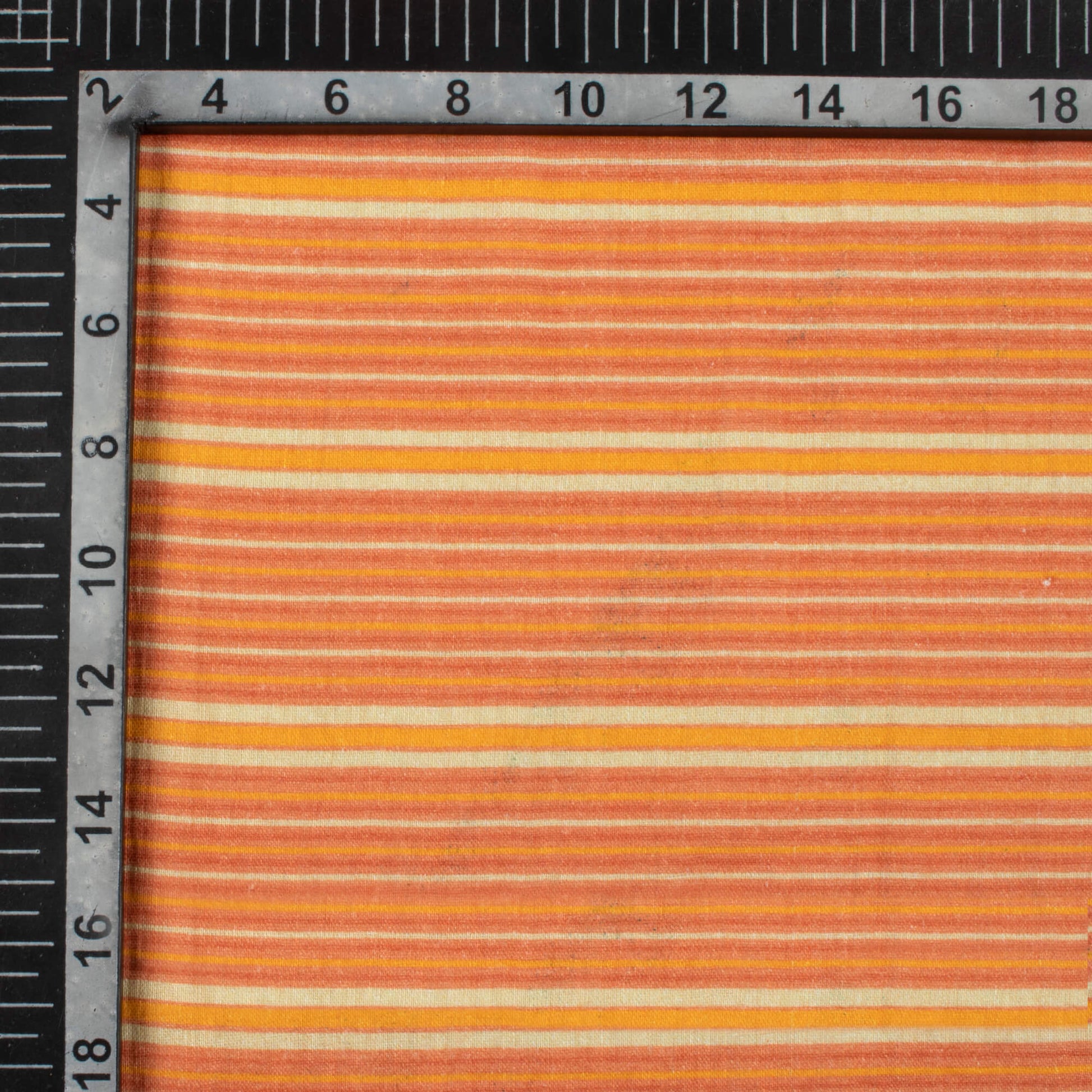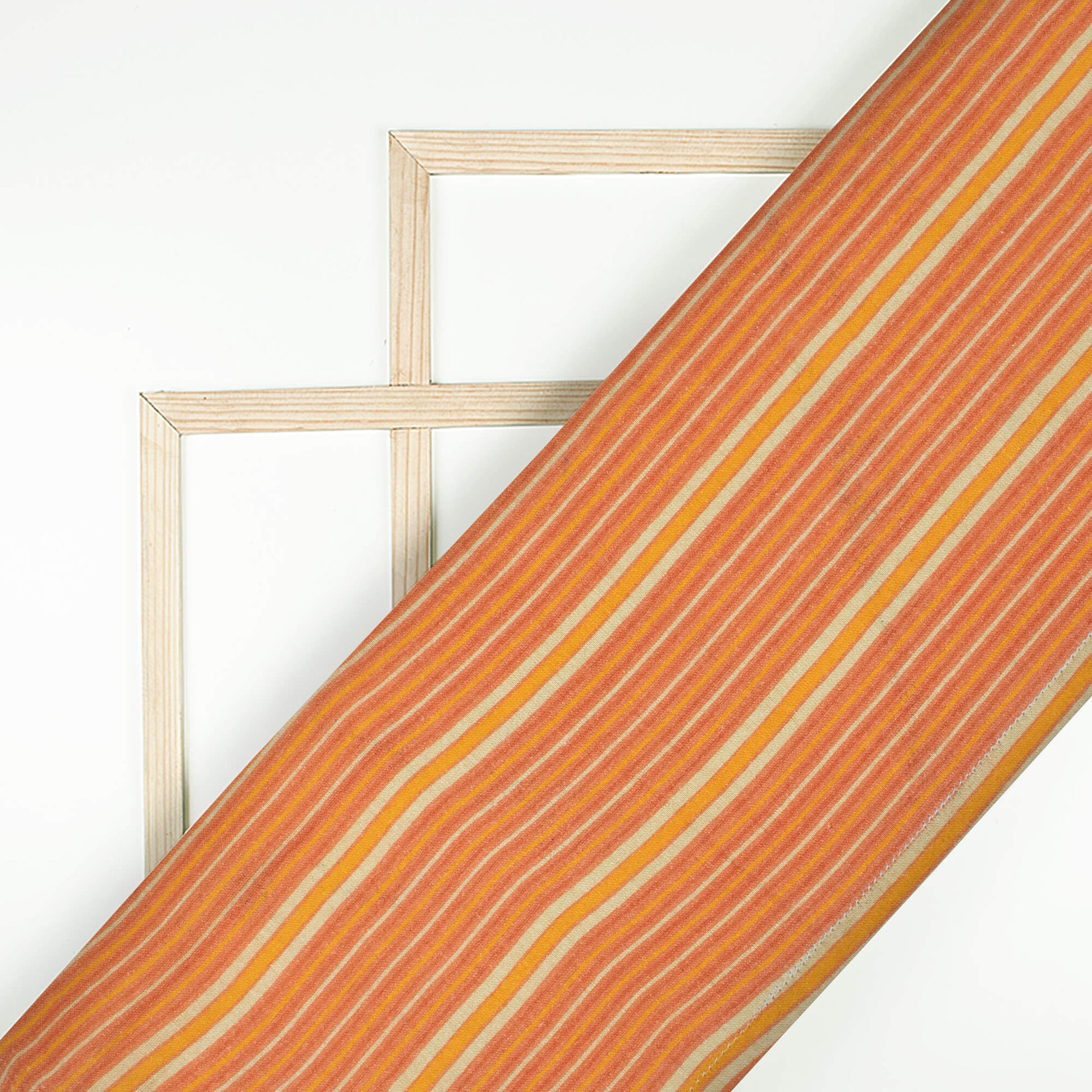 Clay Orange And Yellow Stripes Pattern Digital Print Pure Cotton Mulmul Fabric