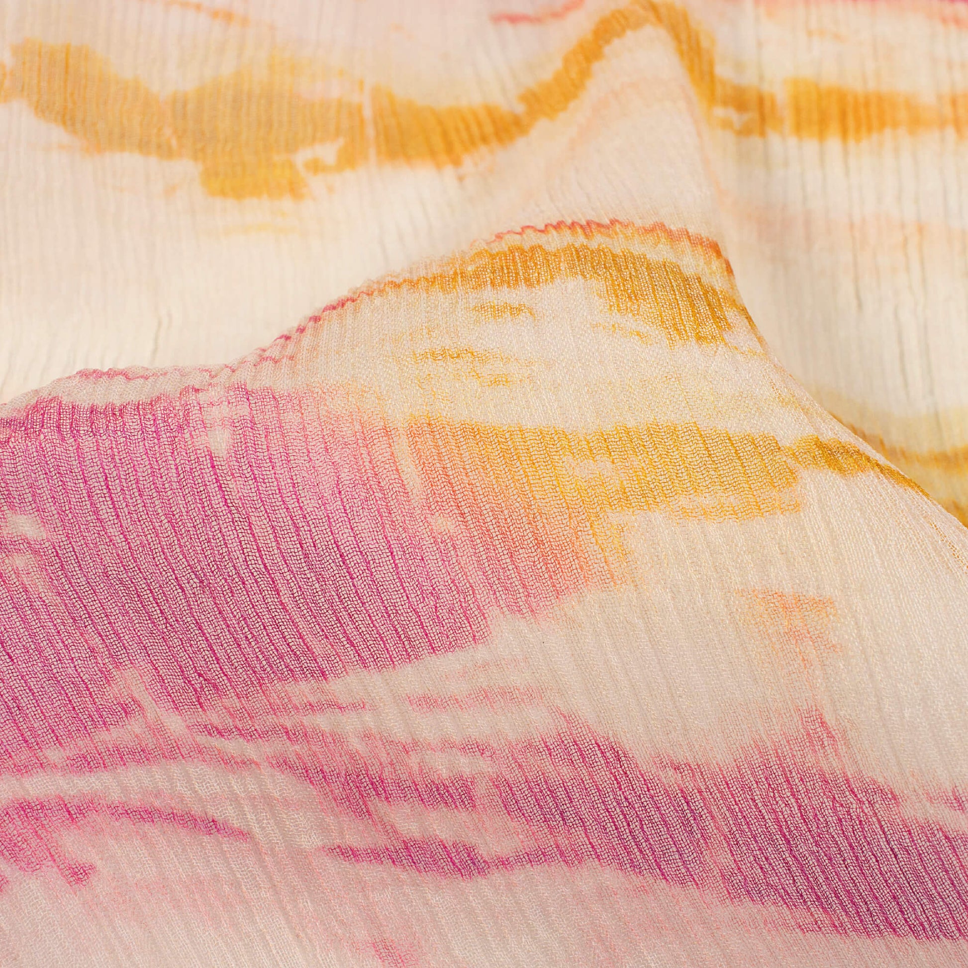 Cream And Magenta Pink Shiiborii Pattern Digital Print Bemberg Chiffon Fabric
