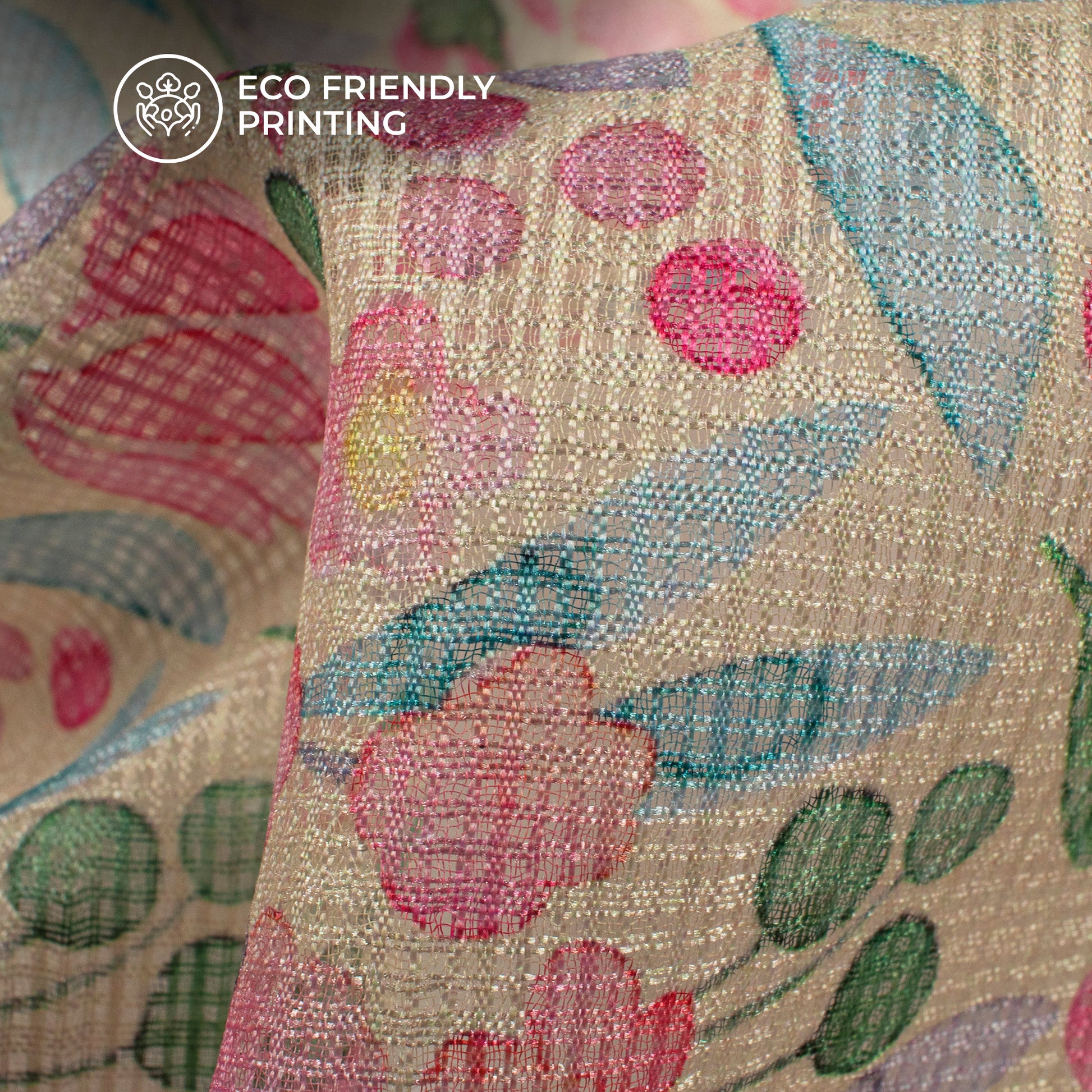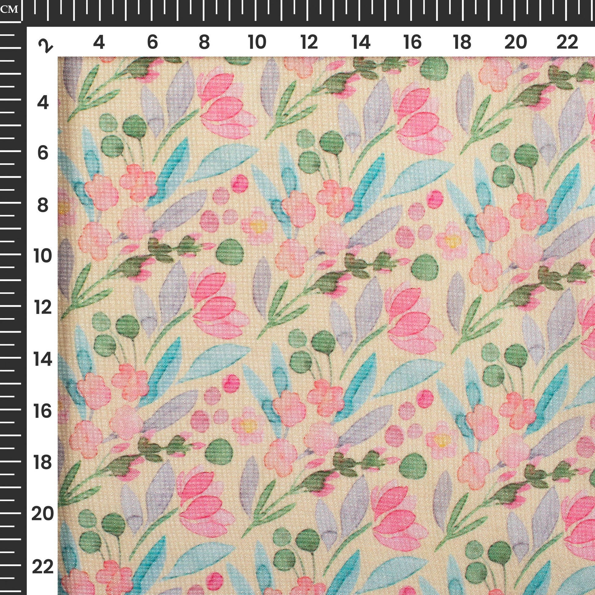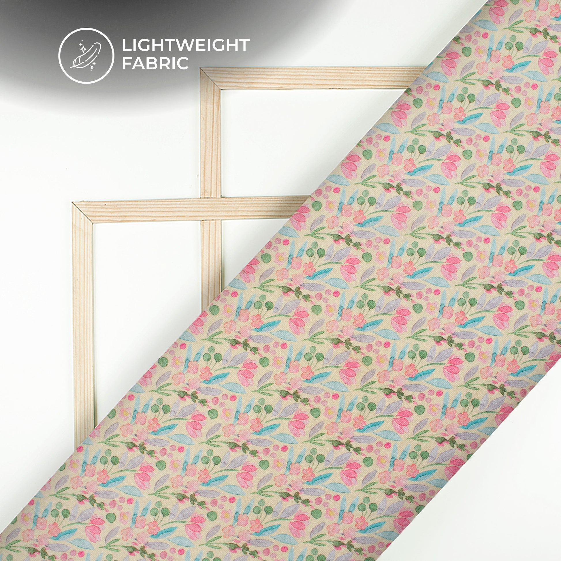Cream And Pink Floral Digital Print Kota Doria Fabric