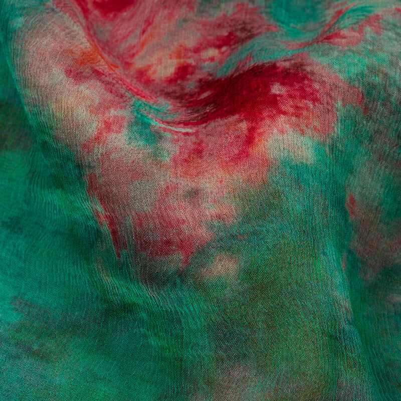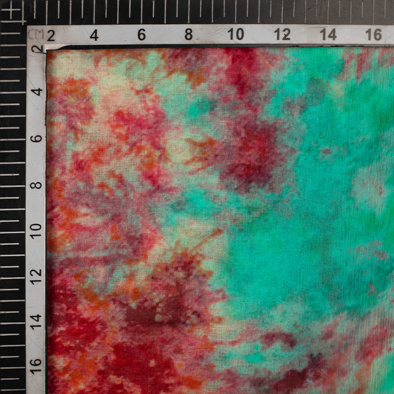 Cream And Red Tye And Dye Pattern Digital Print Bemberg Chiffon Fabric