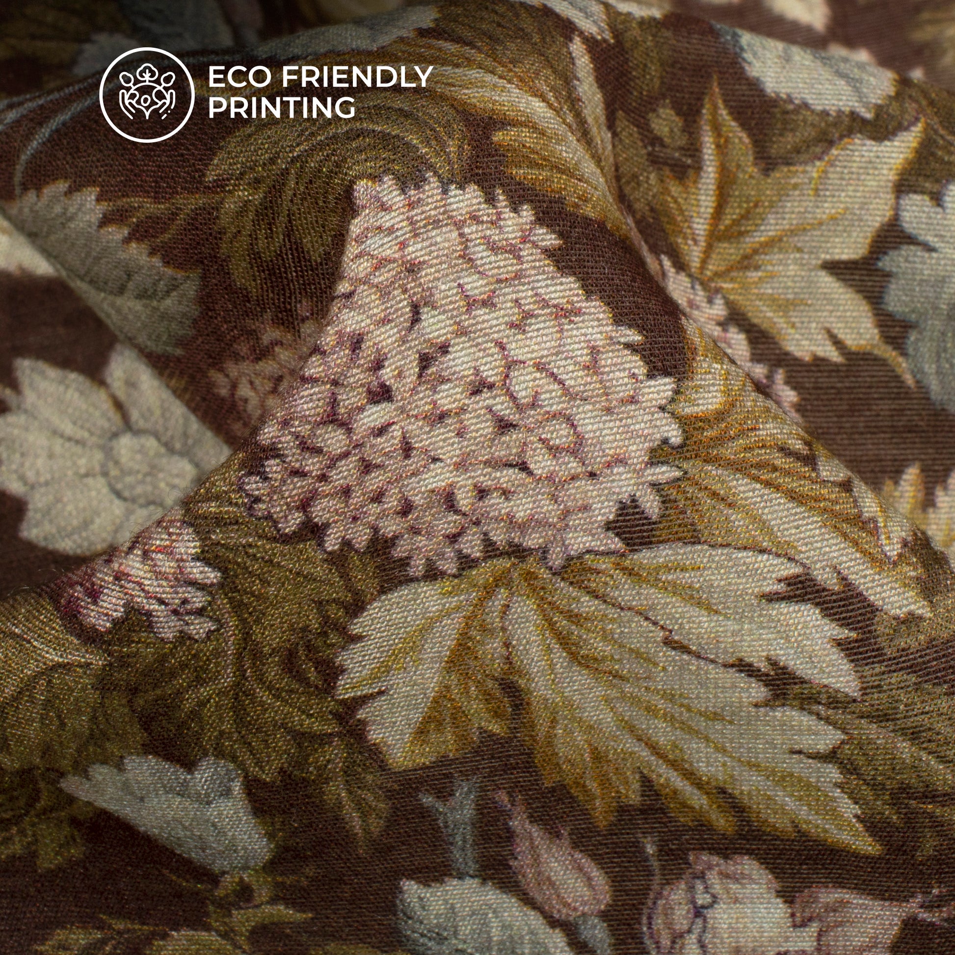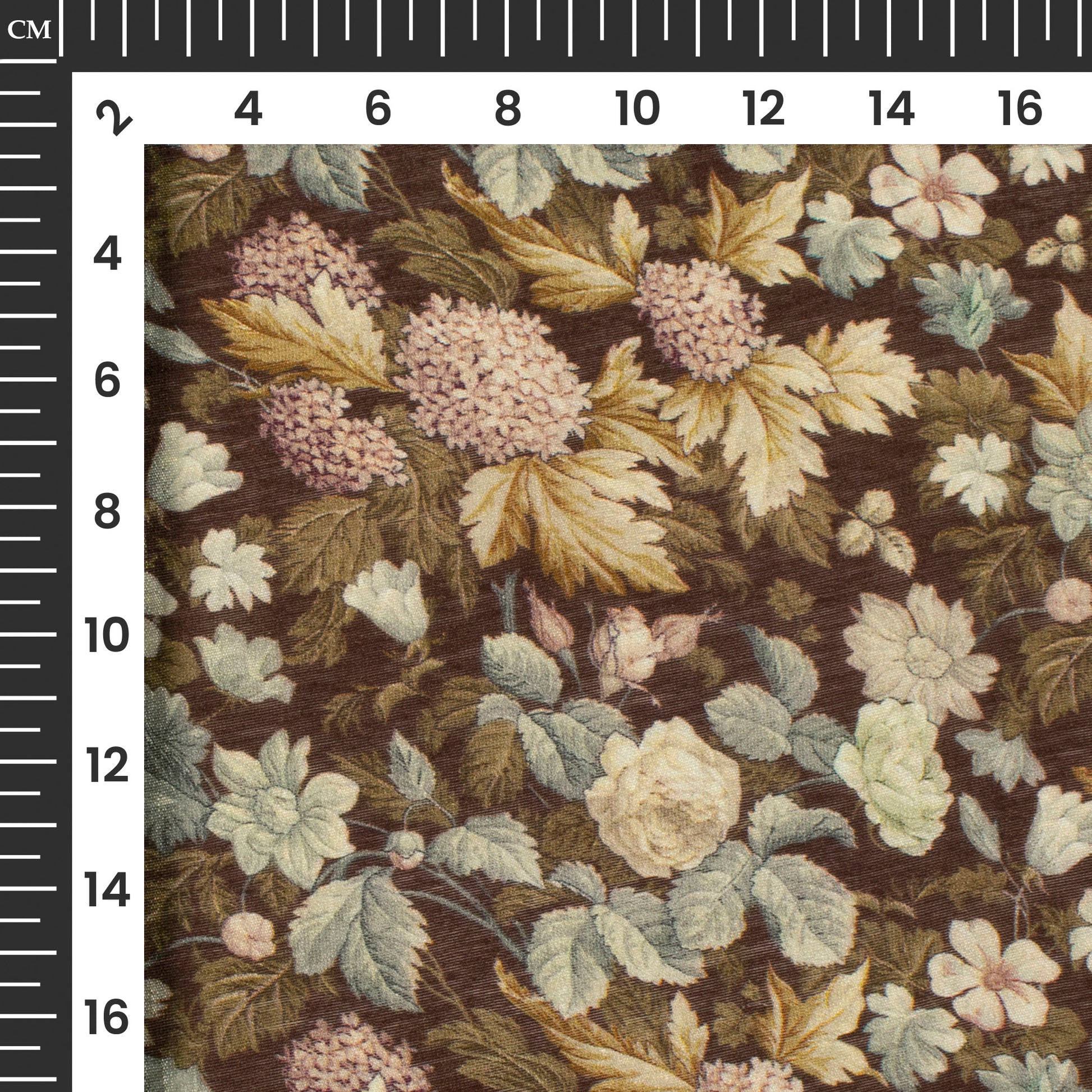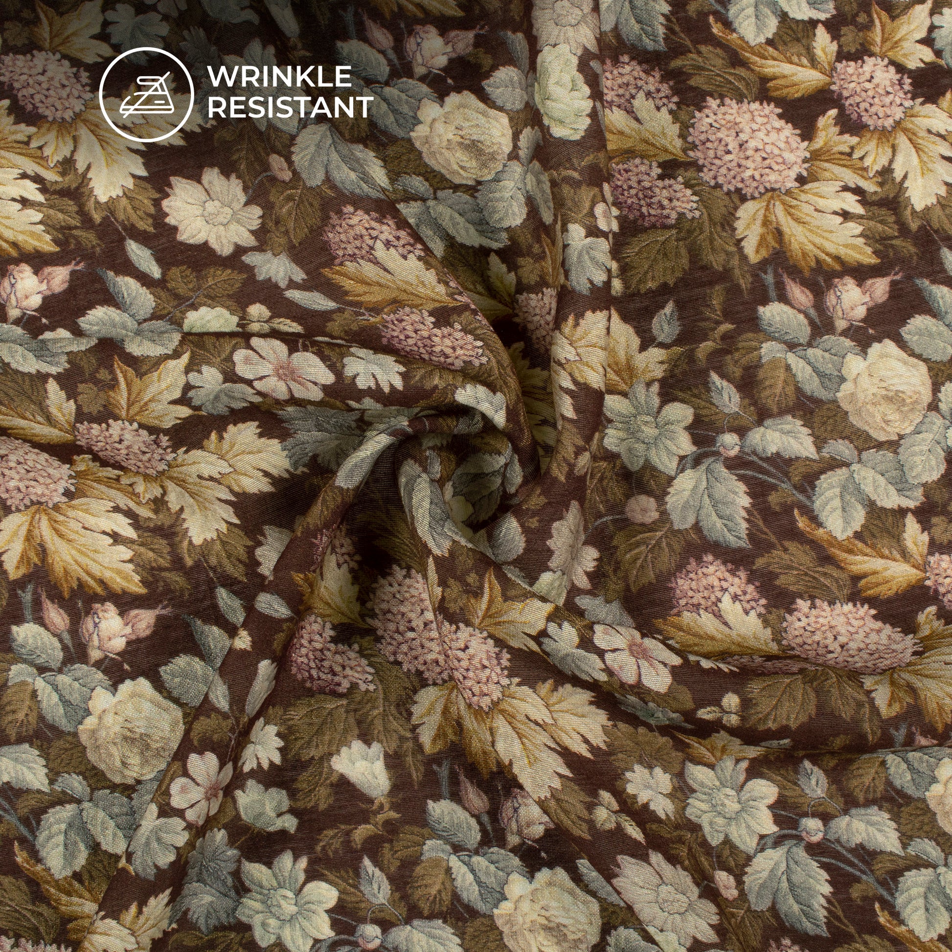 Dark Brown And Beige Floral Digital Print Viscose Chanderi Fabric