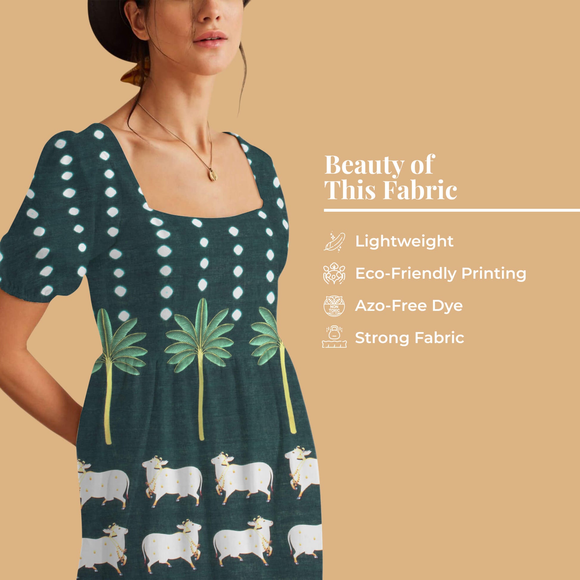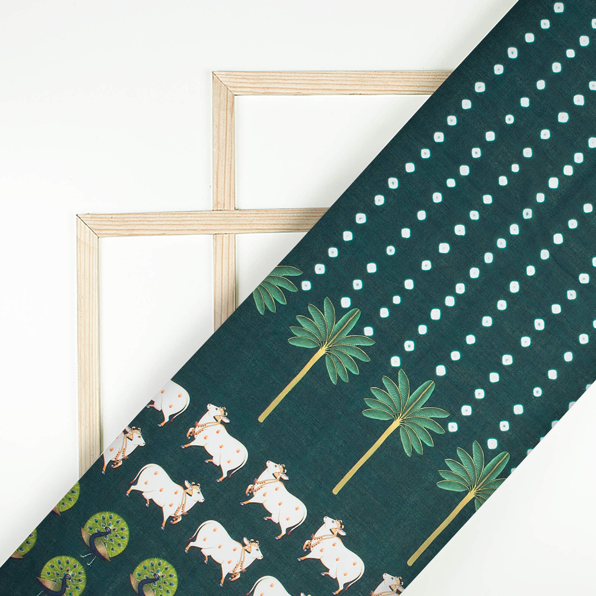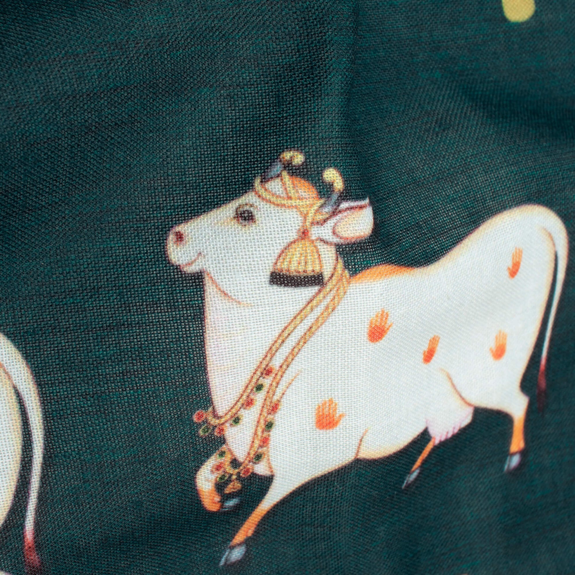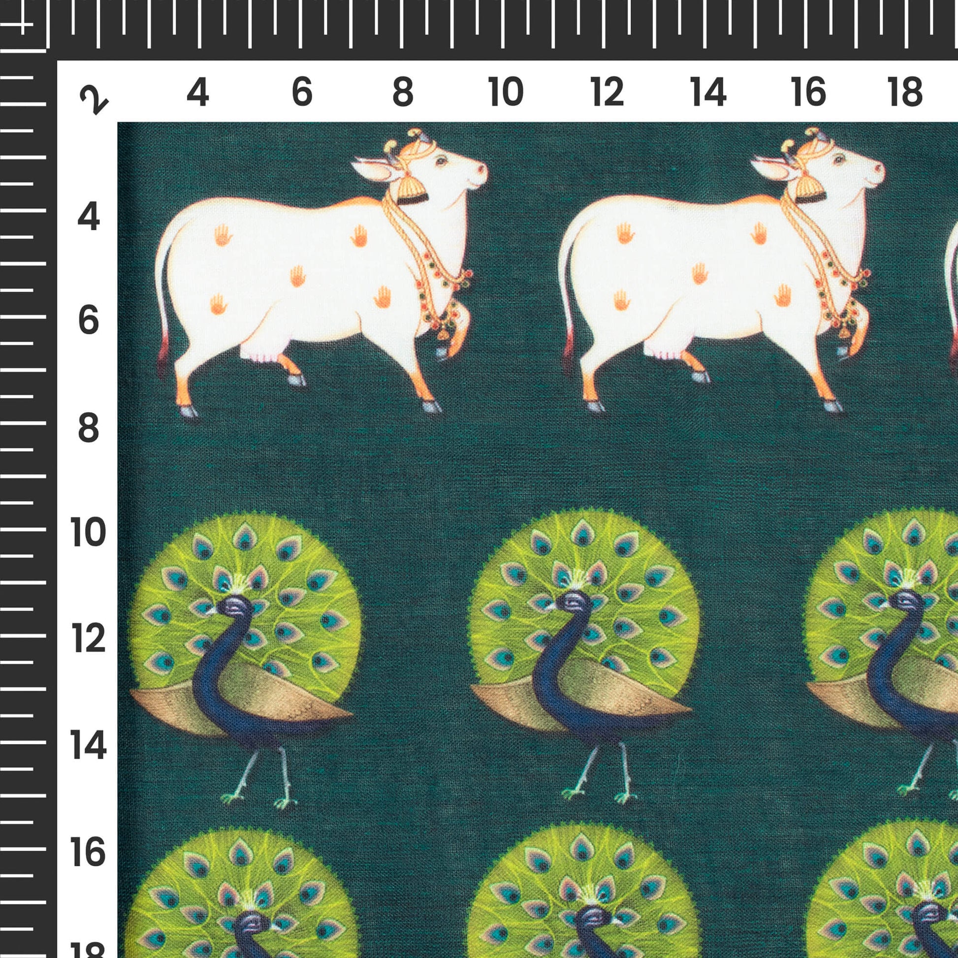 The Pichwai pattern collection from fabcurate is an adoption of the Pichwai painting that depicts the historical events of Lord Krishna's life. Motifs of leaves, trees, and scenic beauty on the fabric will surely mesmerize you at a glance. Digitally printed Pichwai patterns are something unique that tell a lot about our culture and one can display them in style. You can wear these fabrics during festive days and special occasions. One can make dresses, sarees, tops, and much more using this fabric.