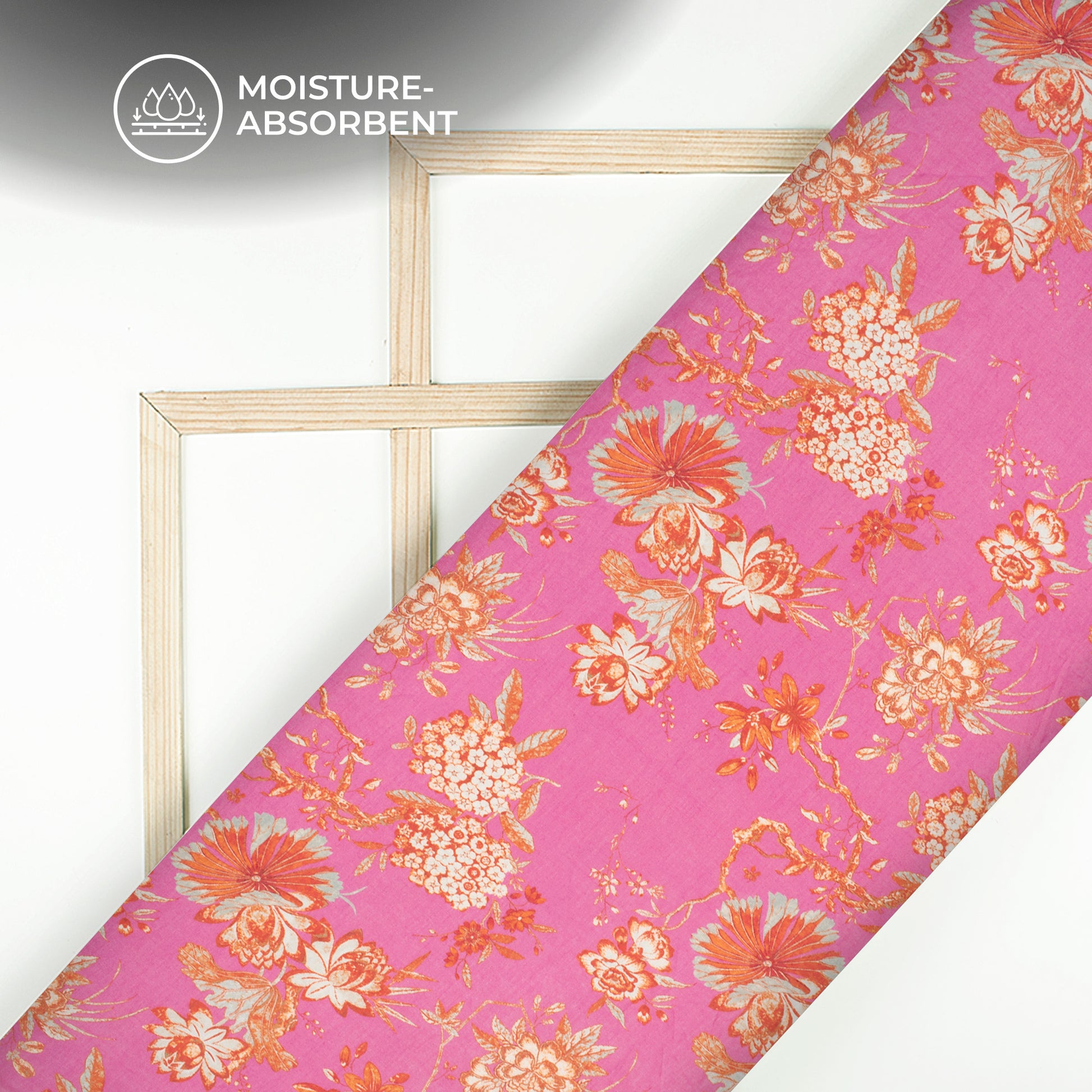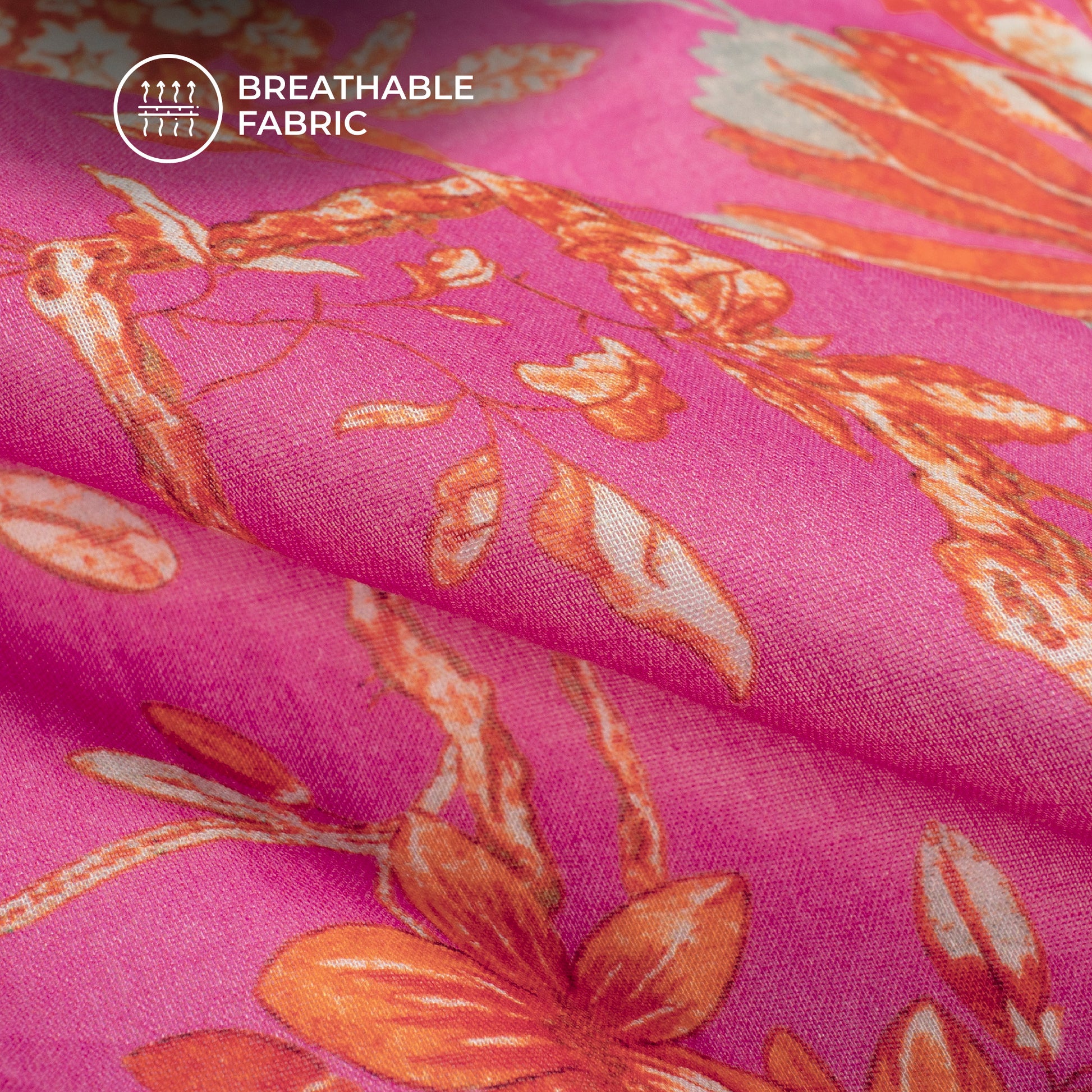 Deep Pink Floral Digital Print Pure Cotton Mulmul Fabric