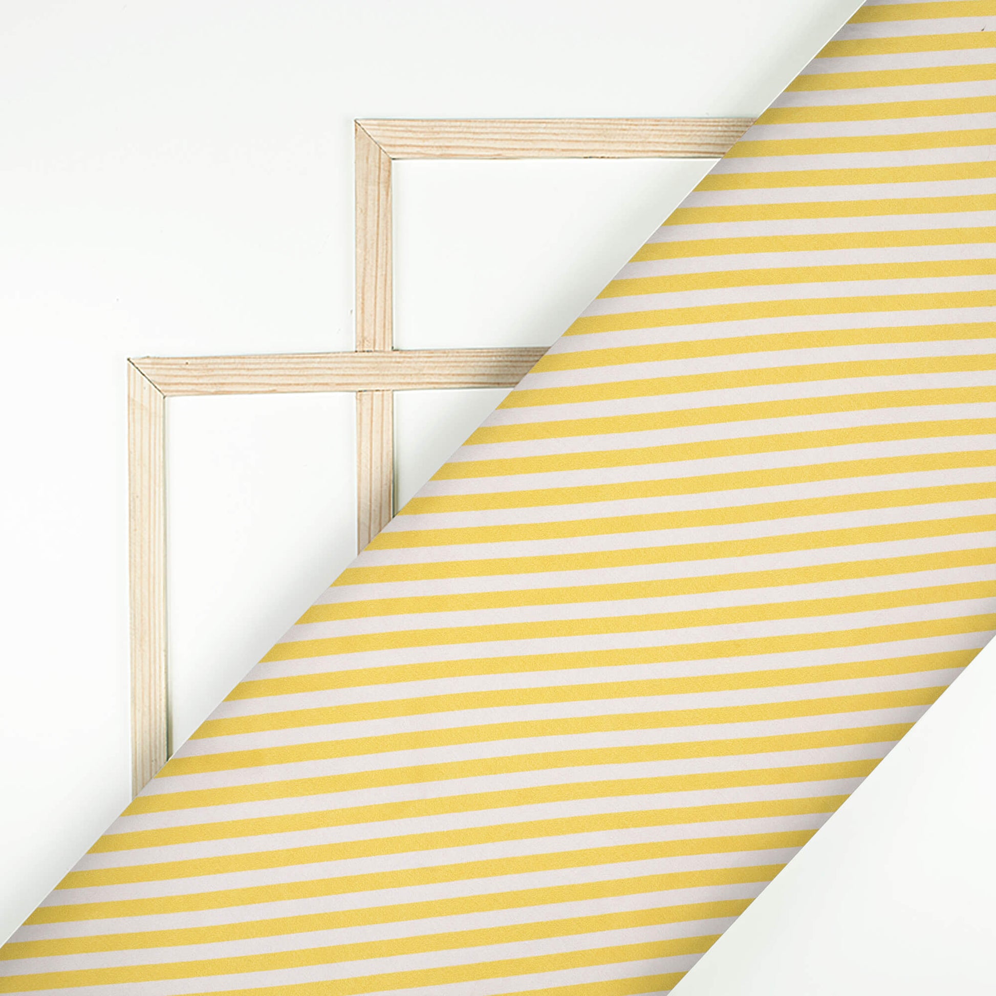 Dijon Yellow And White Stripes Pattern Digital Print Japan Satin Fabric