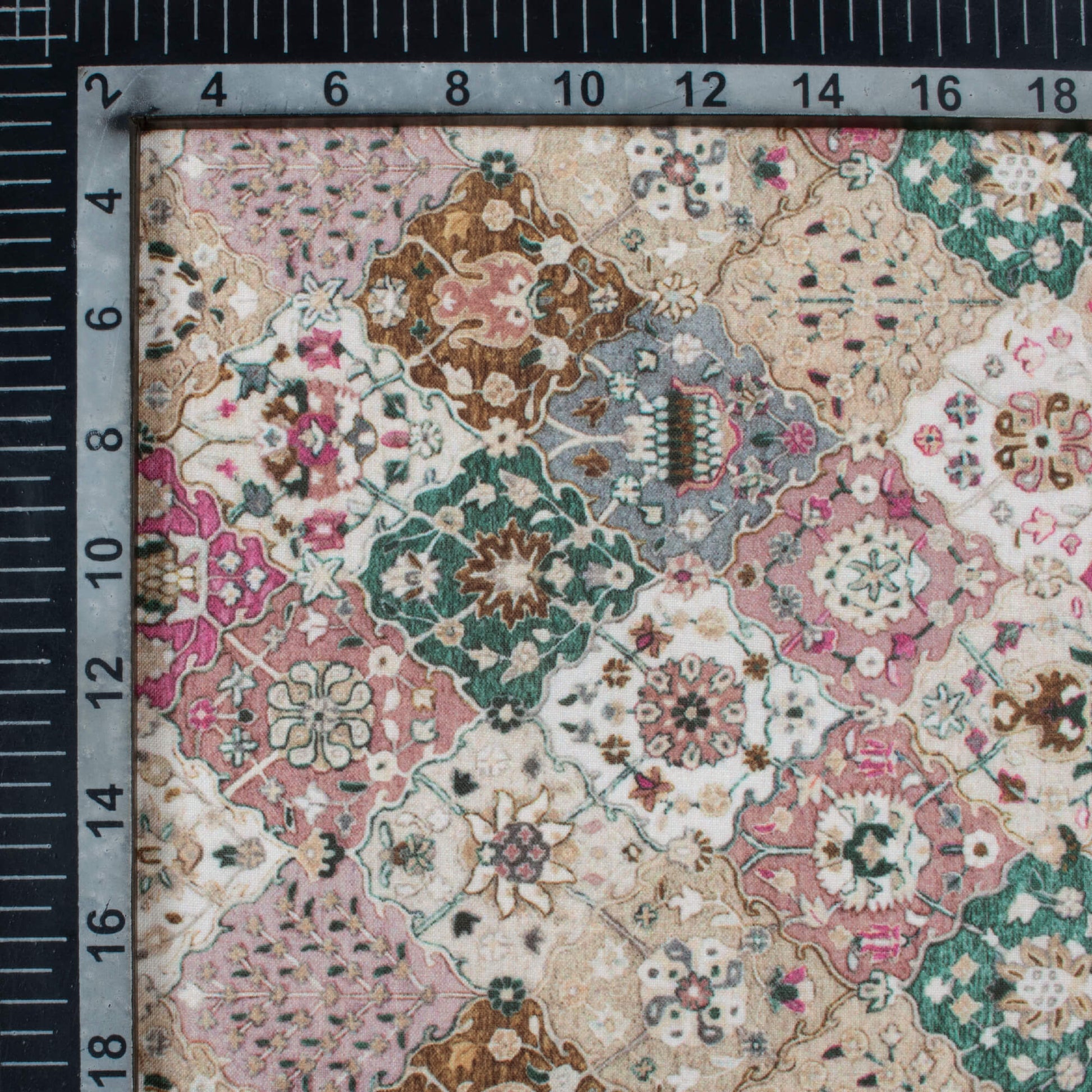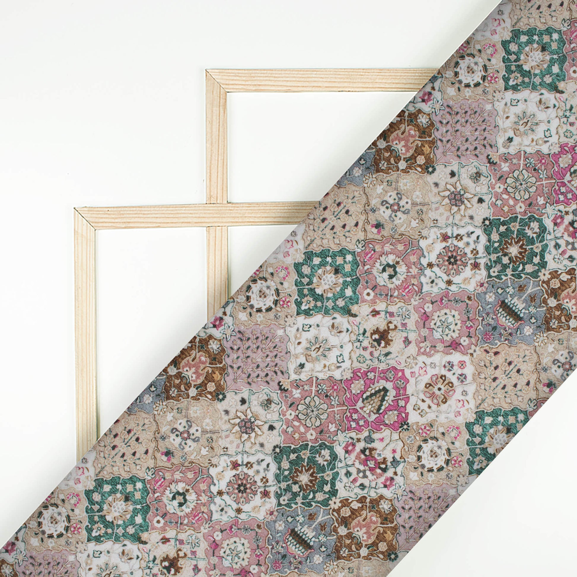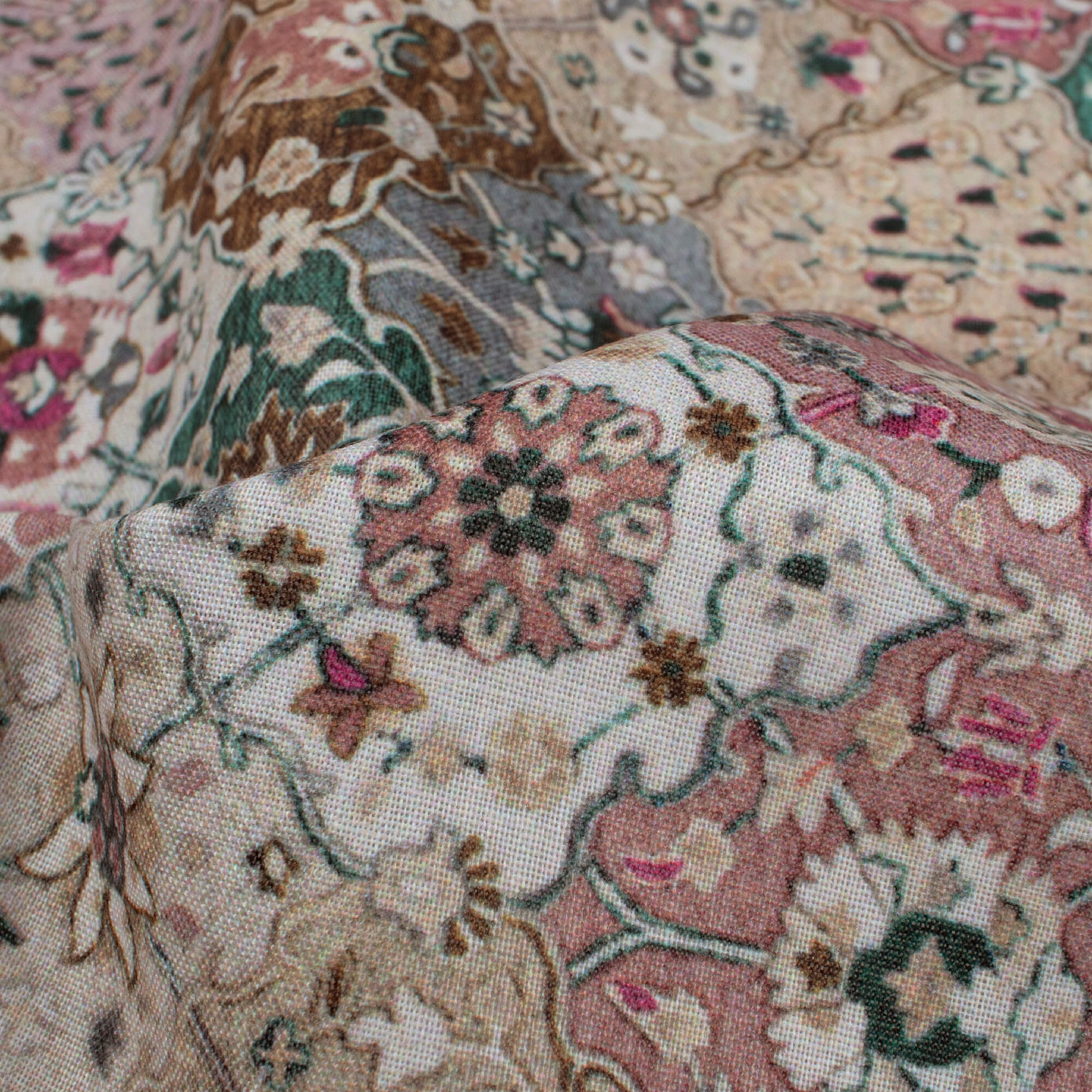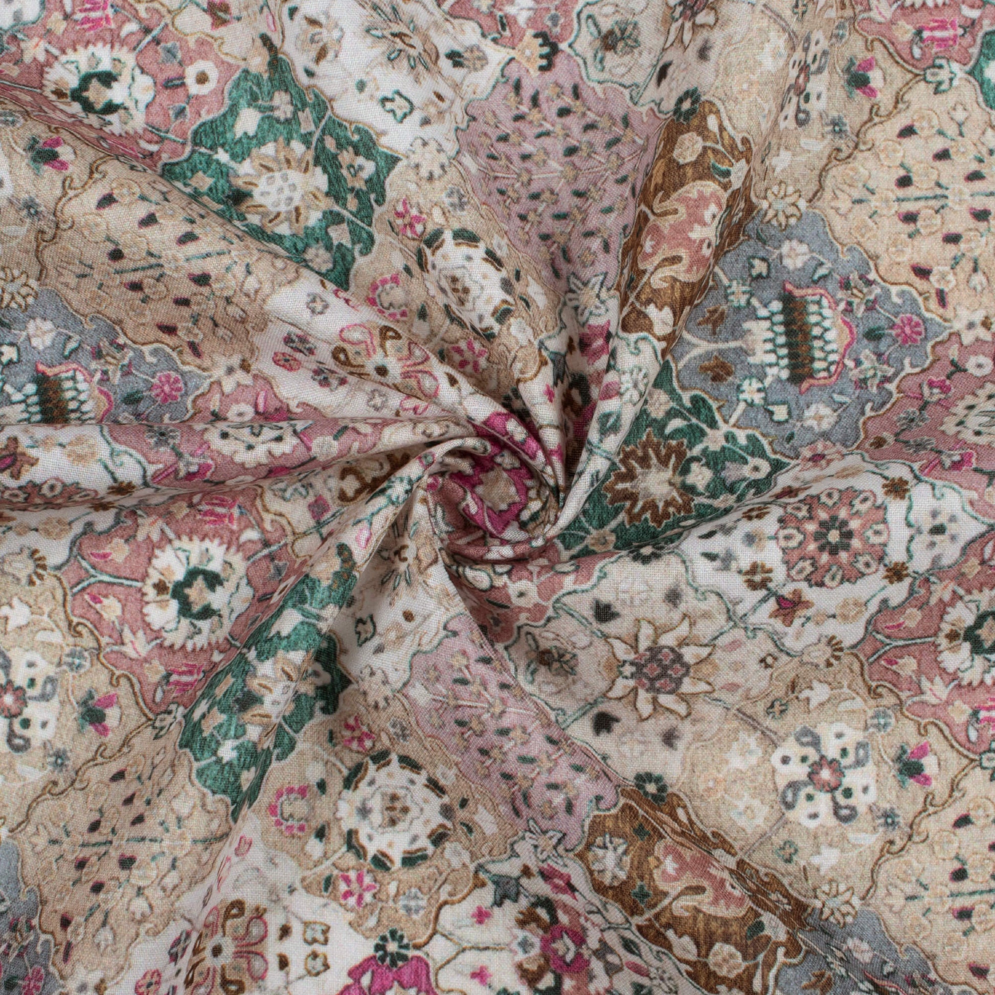 Dusty Rose Pink And Green Ethnic Pattern Digital Print Poly Cambric Fabric