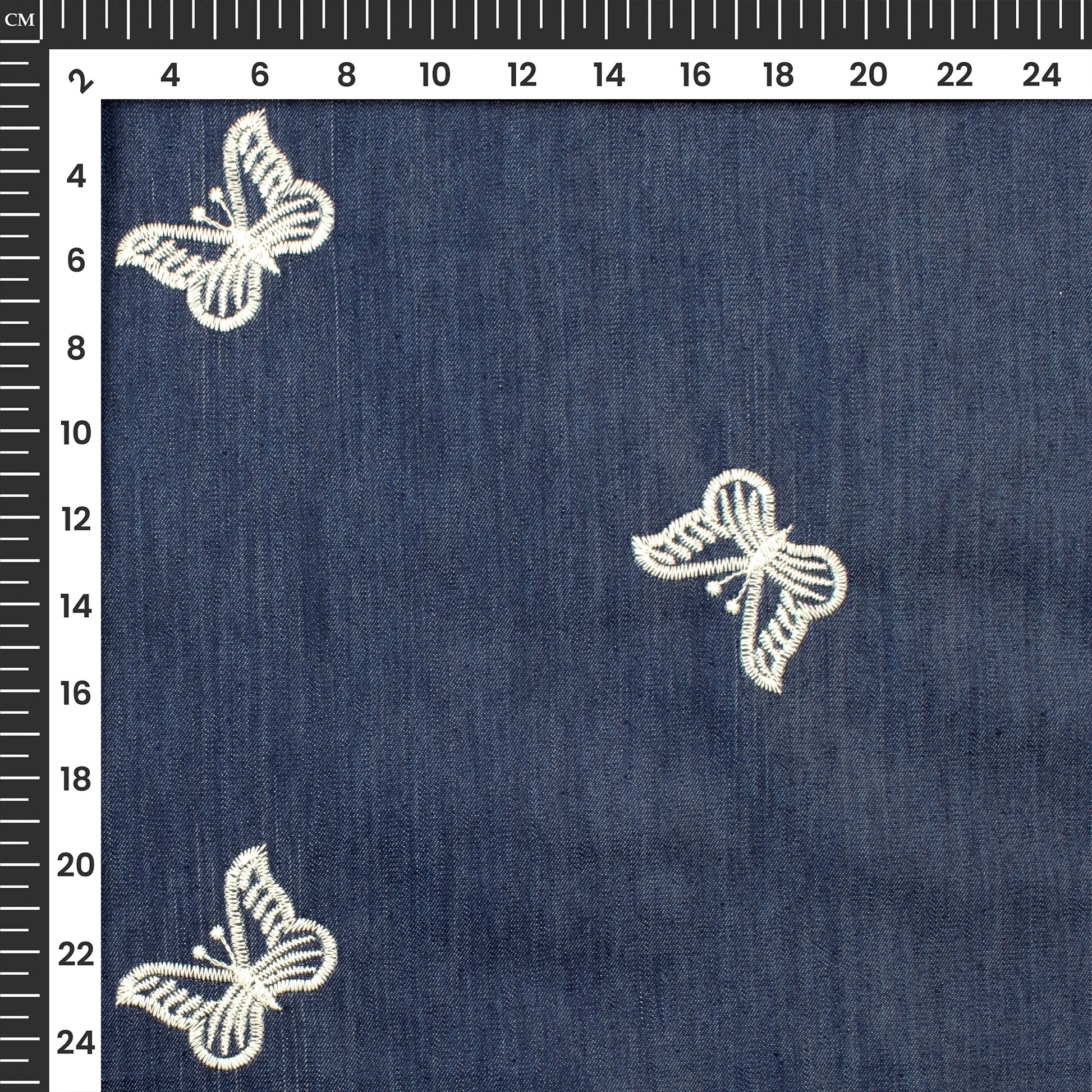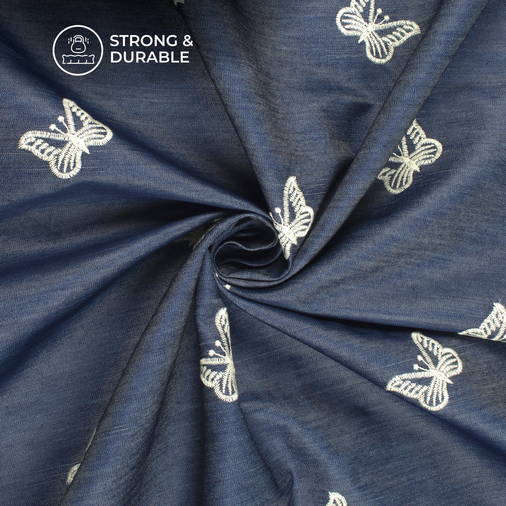 Exclusive Butterfly Embroidery Work Denim Fabric