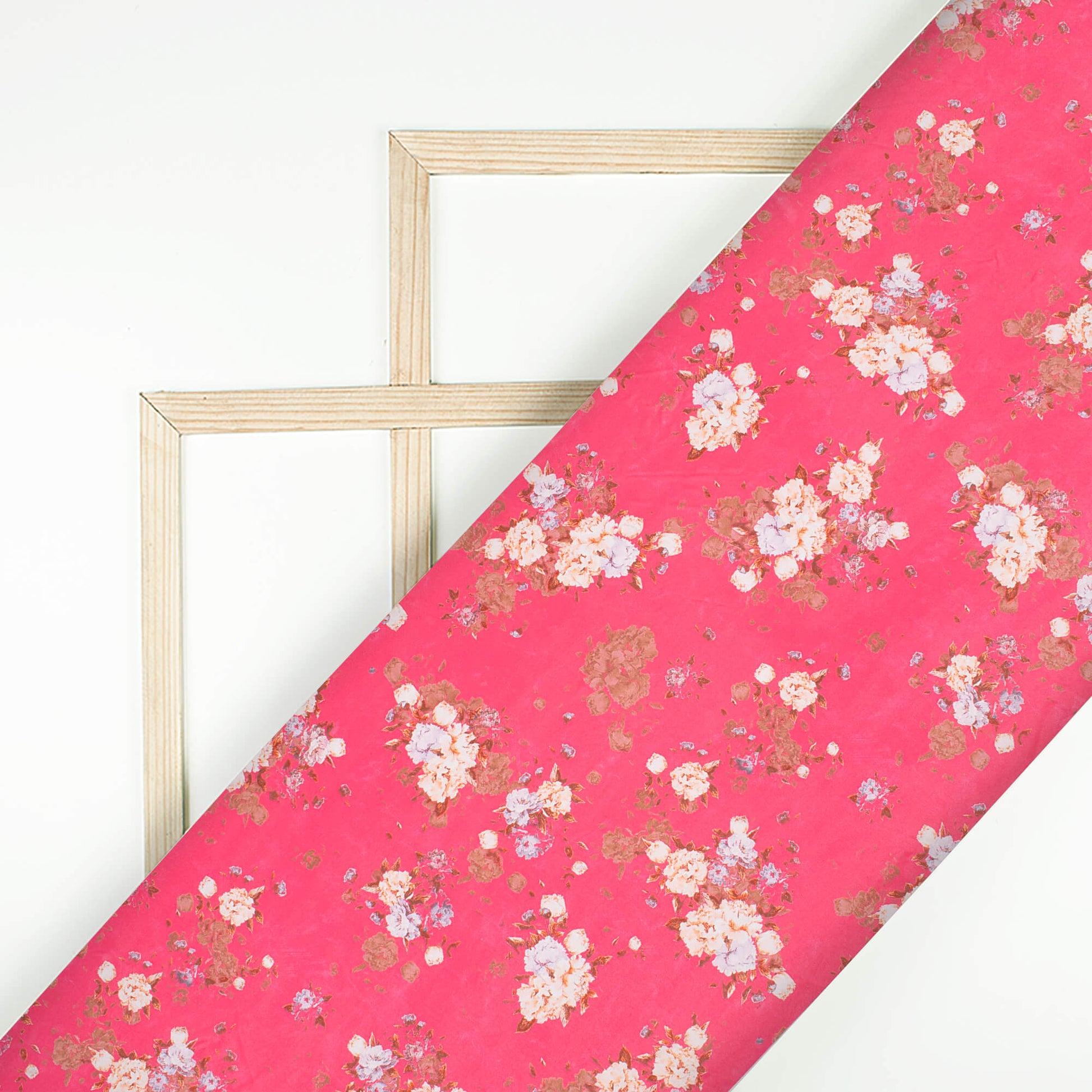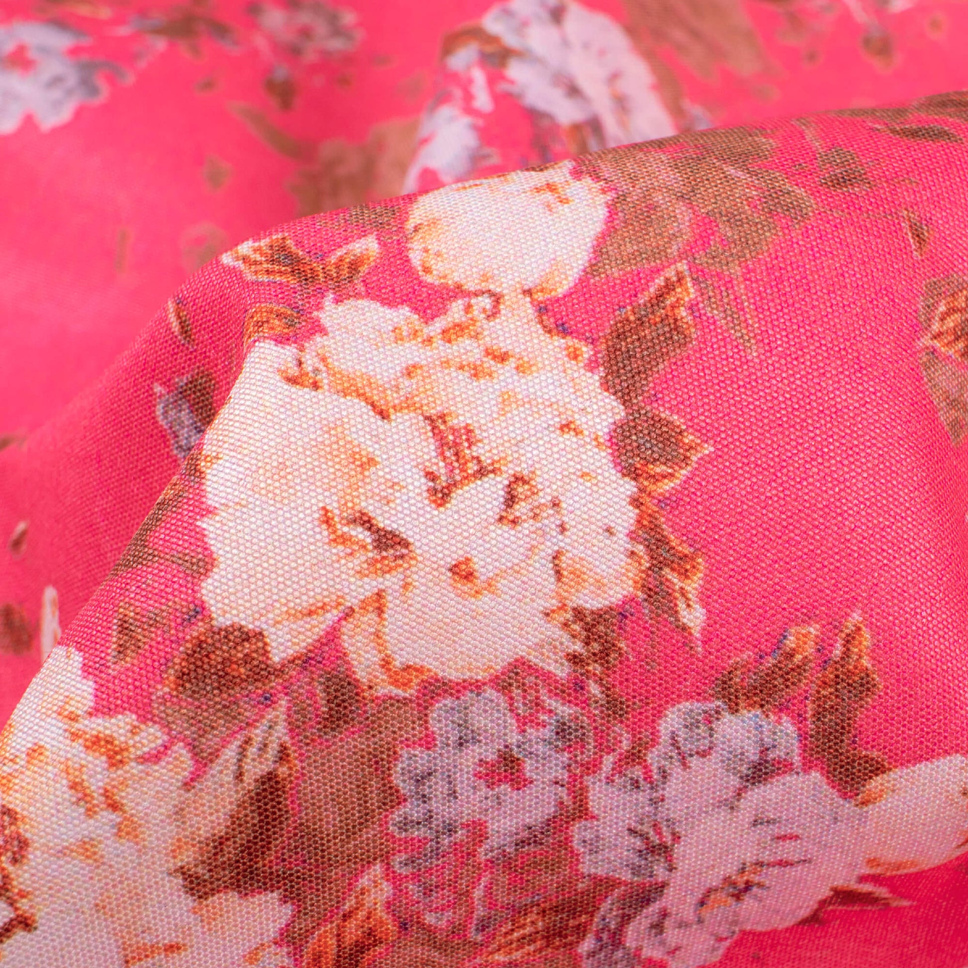 Fandango Pink And Peach Floral Pattern Digital Print Poly Micro Crepe Fabric
