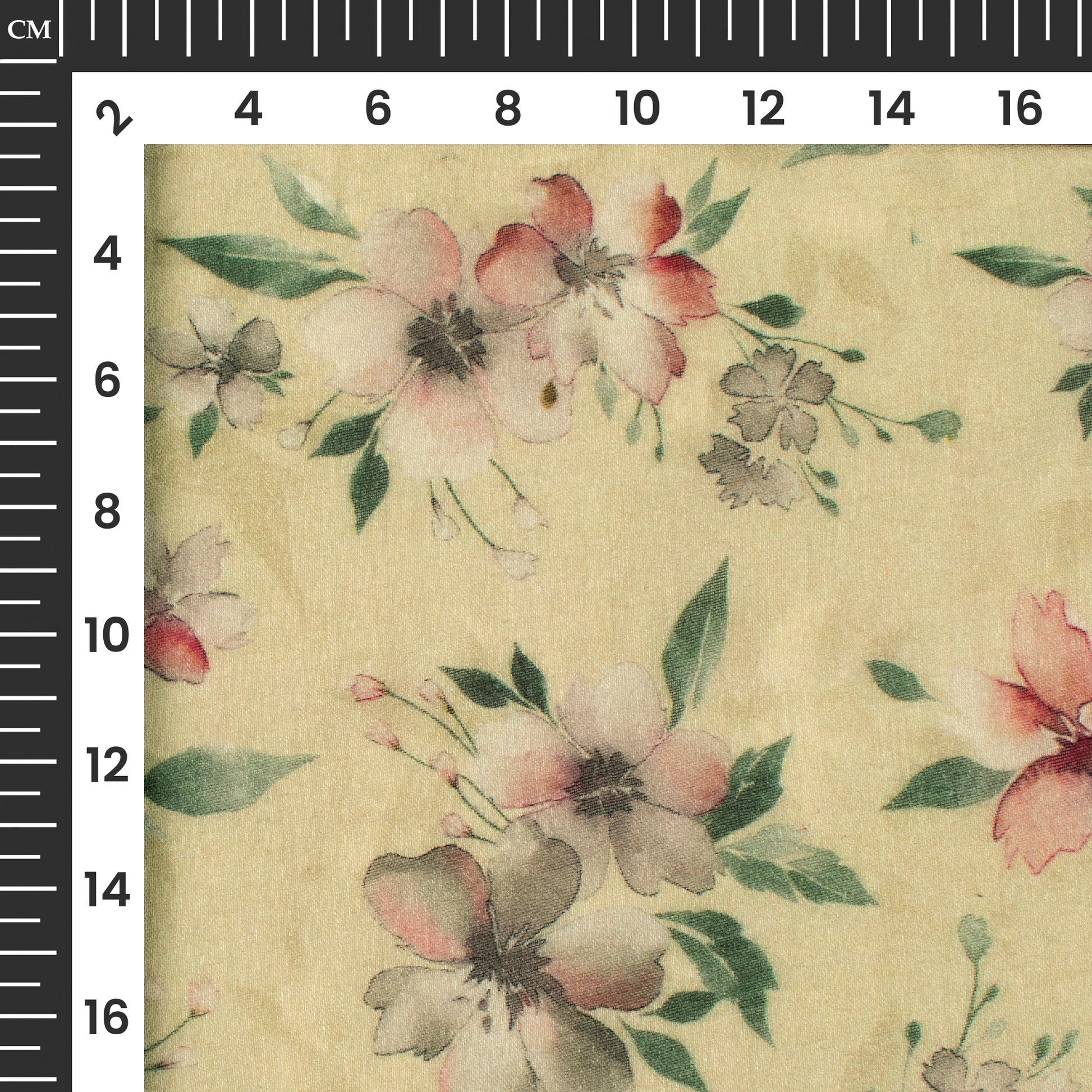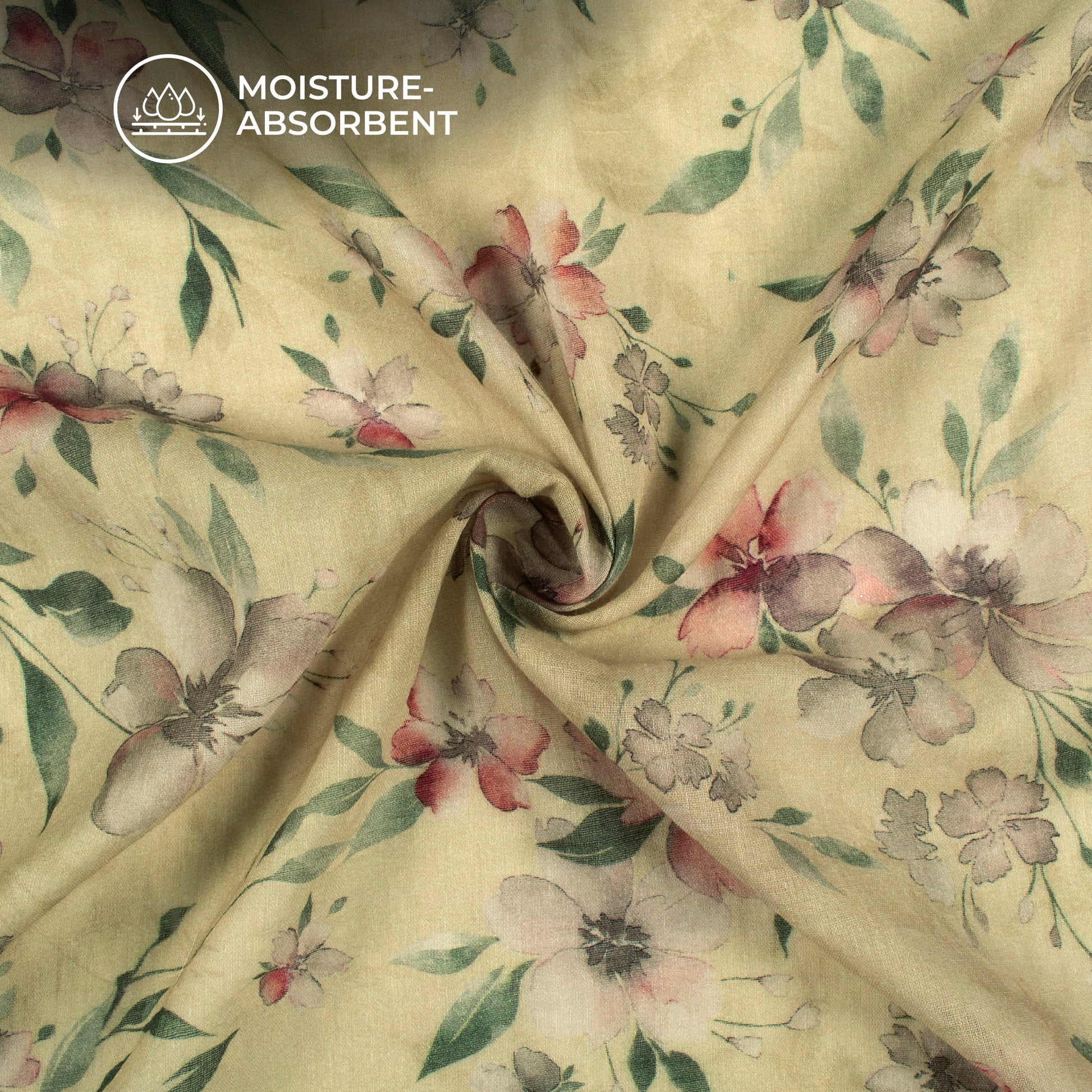 Flaxen Yellow And Brown Floral Digital Print Pure Cotton Mulmul Fabric