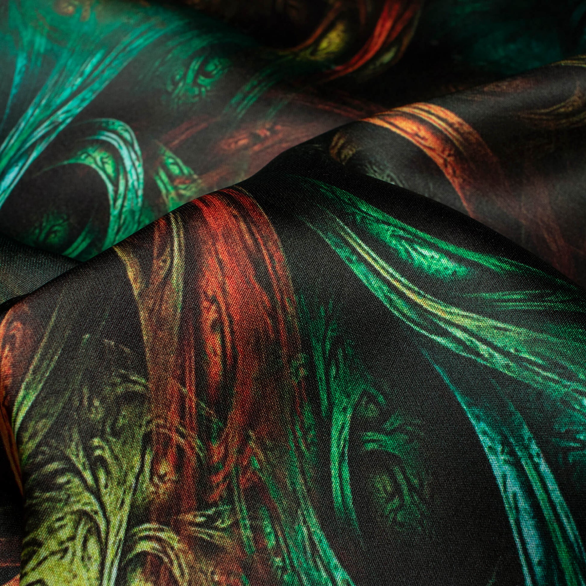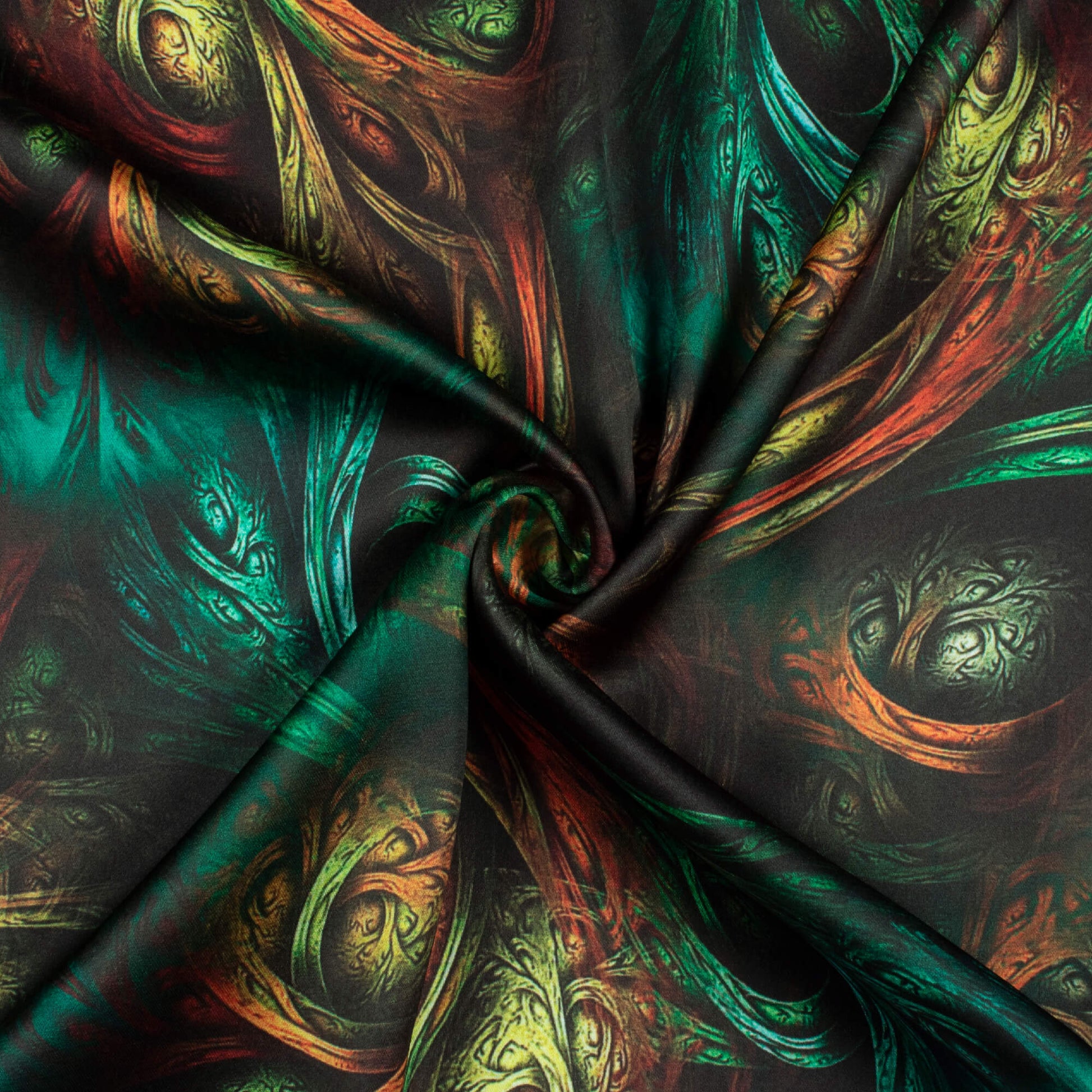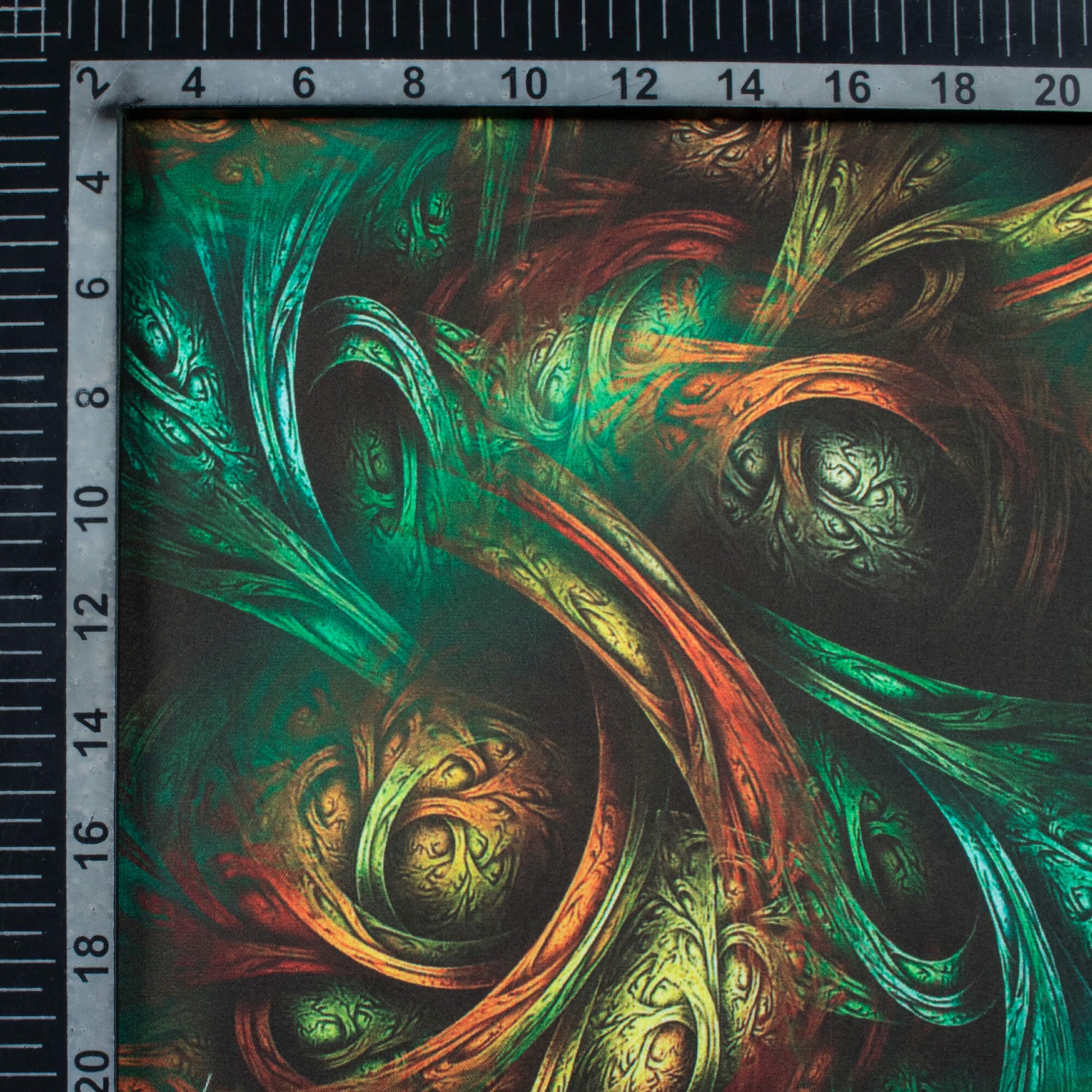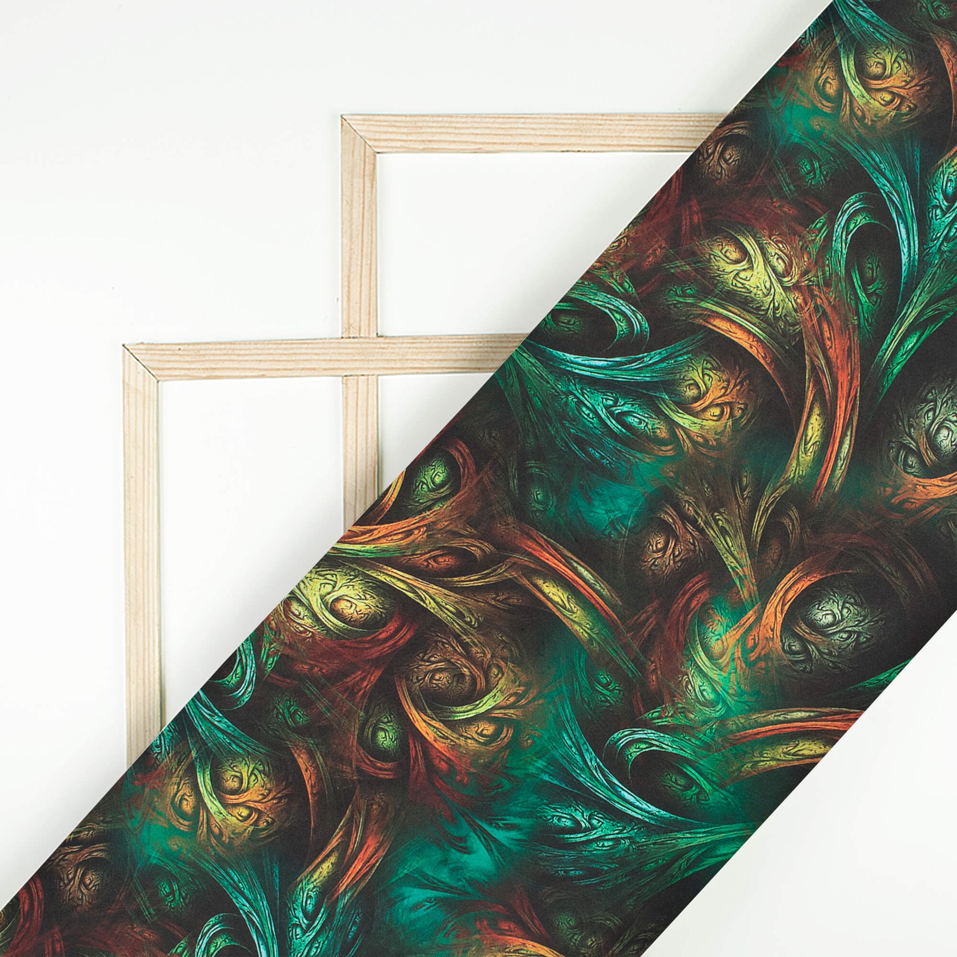 Forest Green And Burnt Orange Abstract Pattern Digital Print Japan Satin Fabric