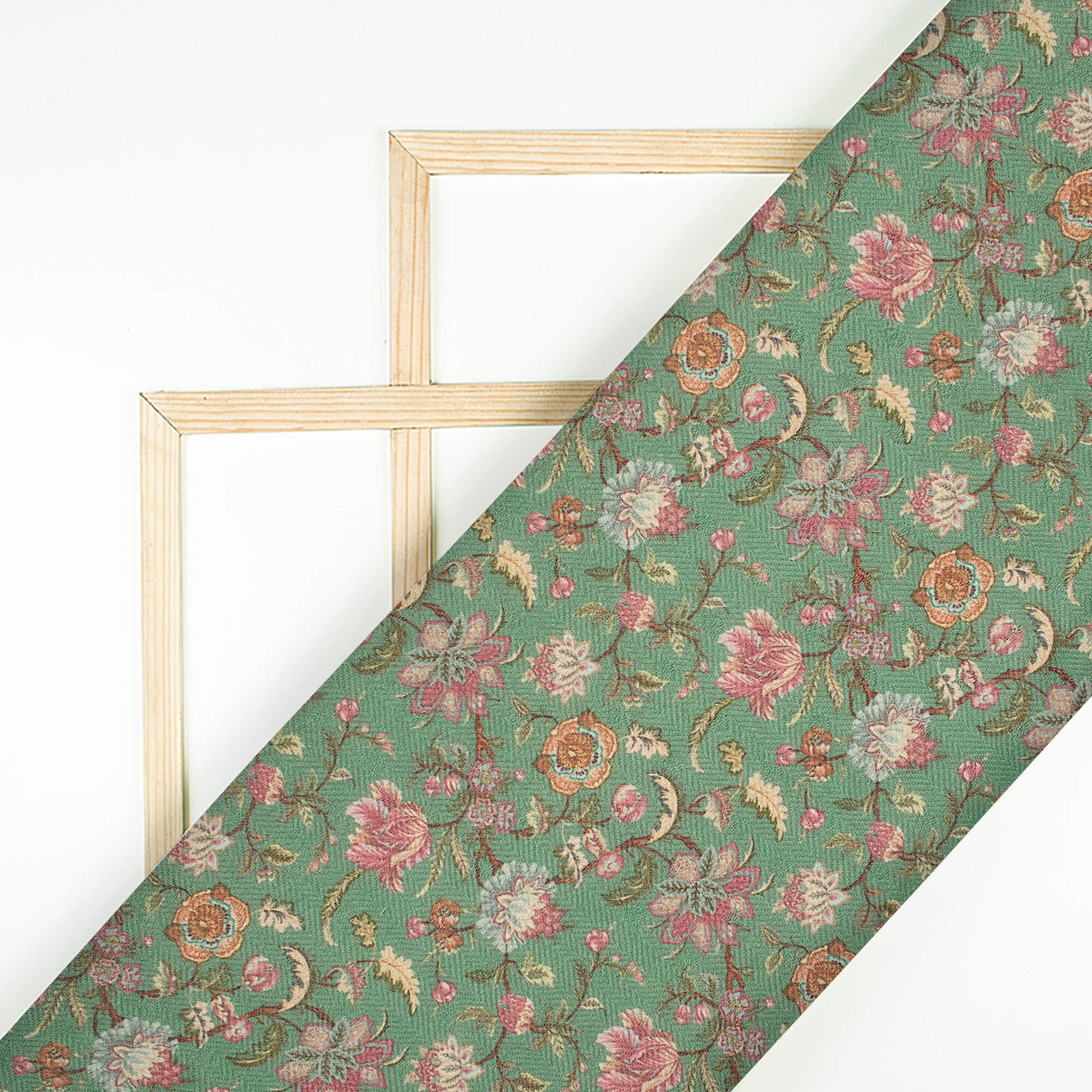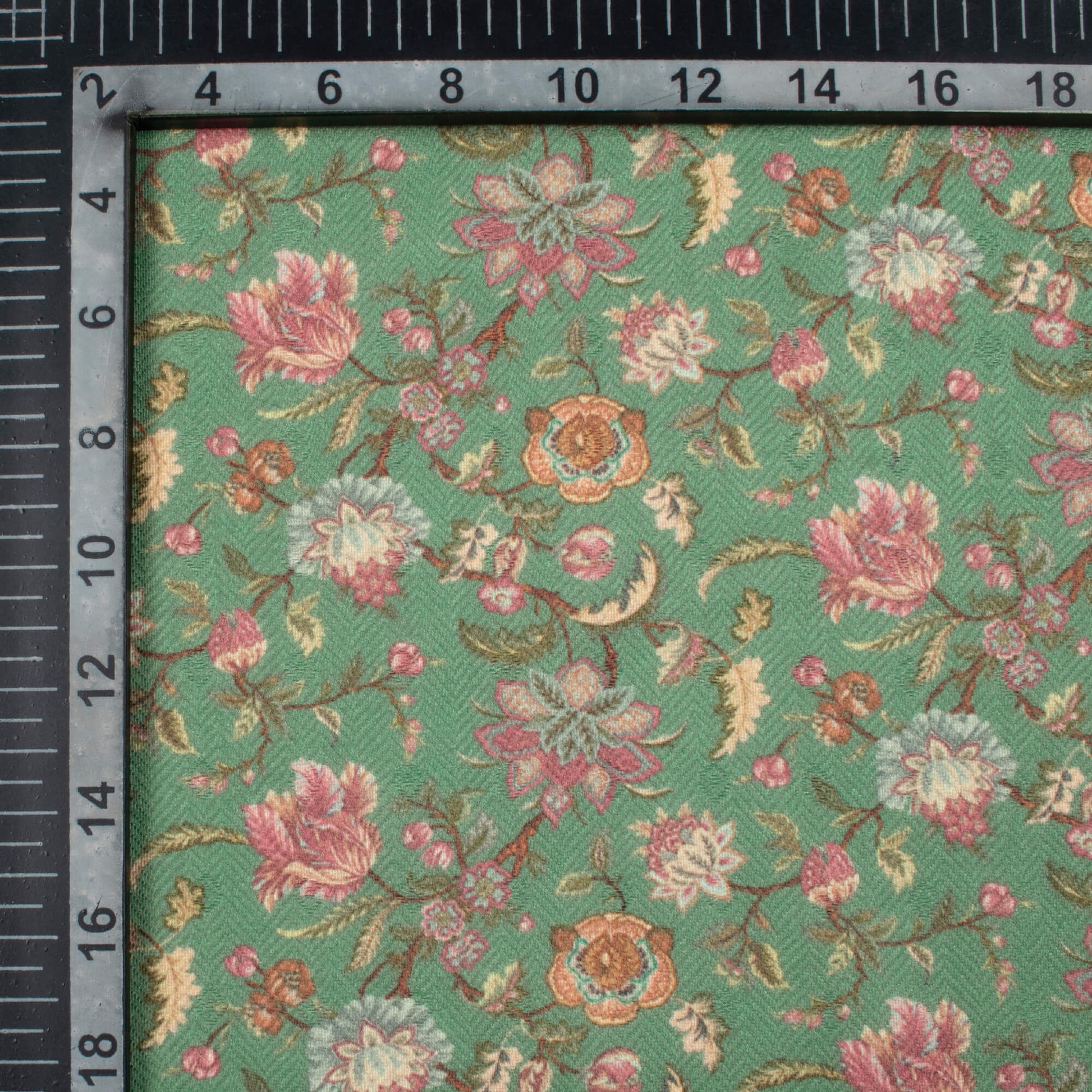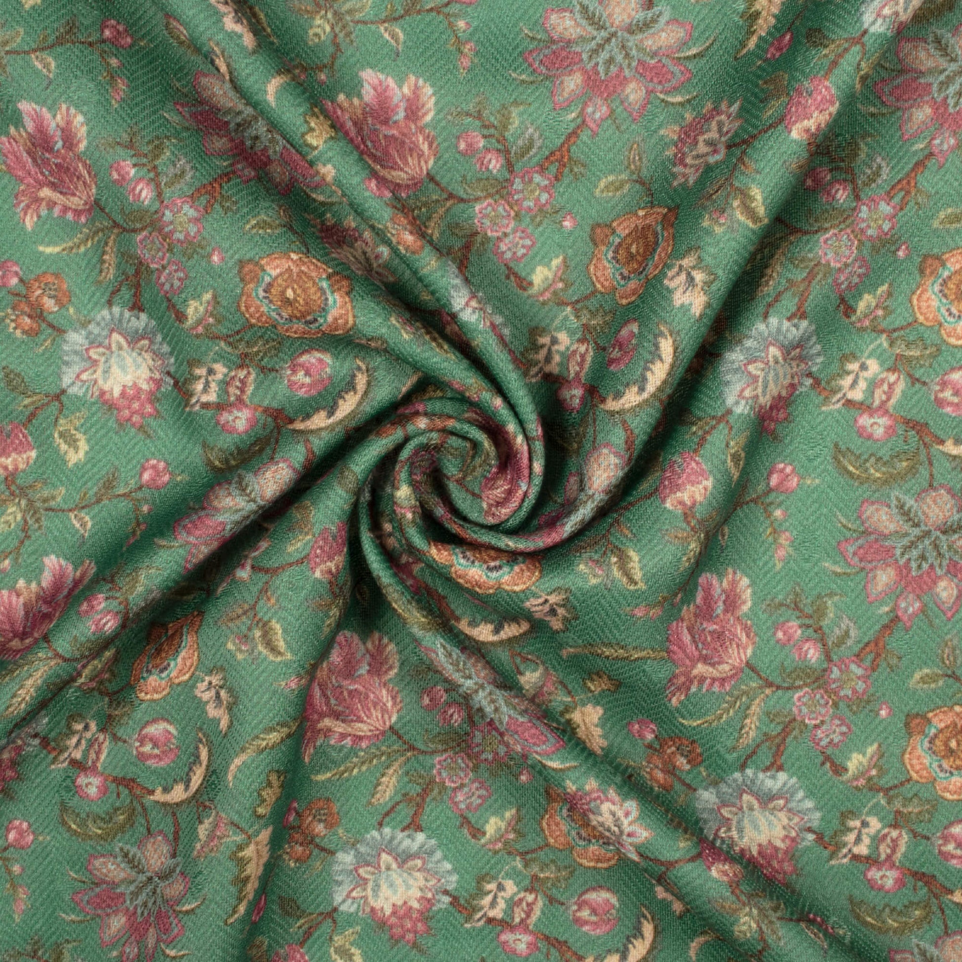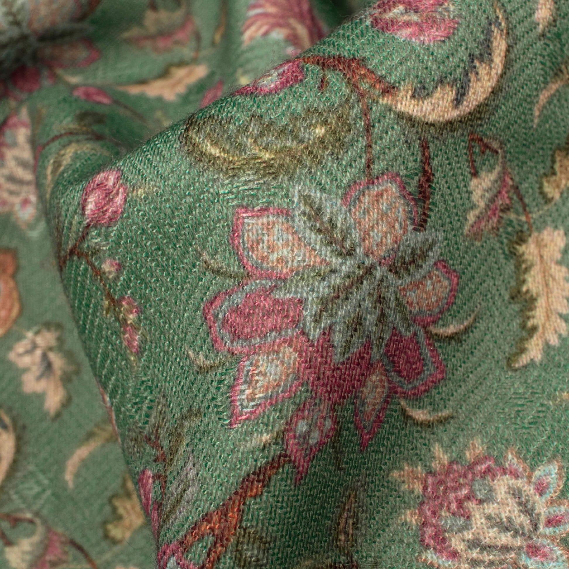 Forest Green And Red Floral Pattern Digital Print Elegant Blend Pashmina Fabric