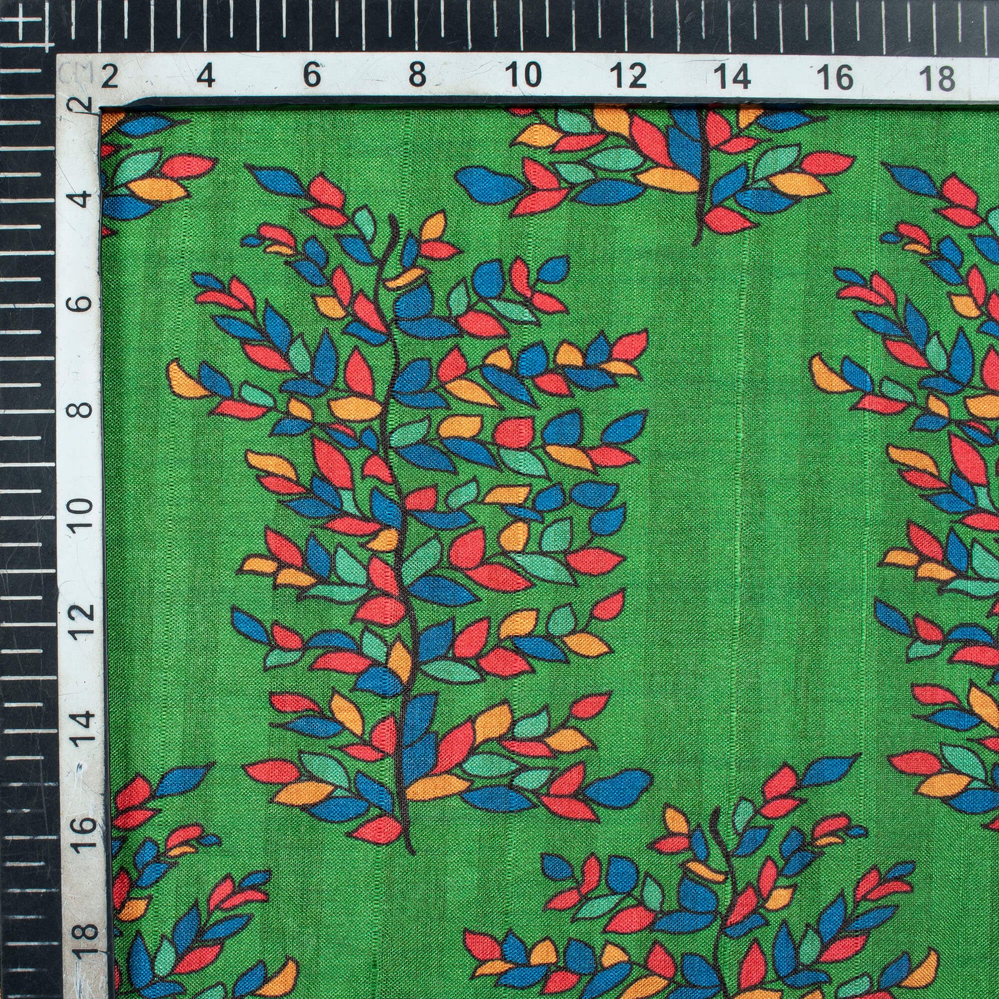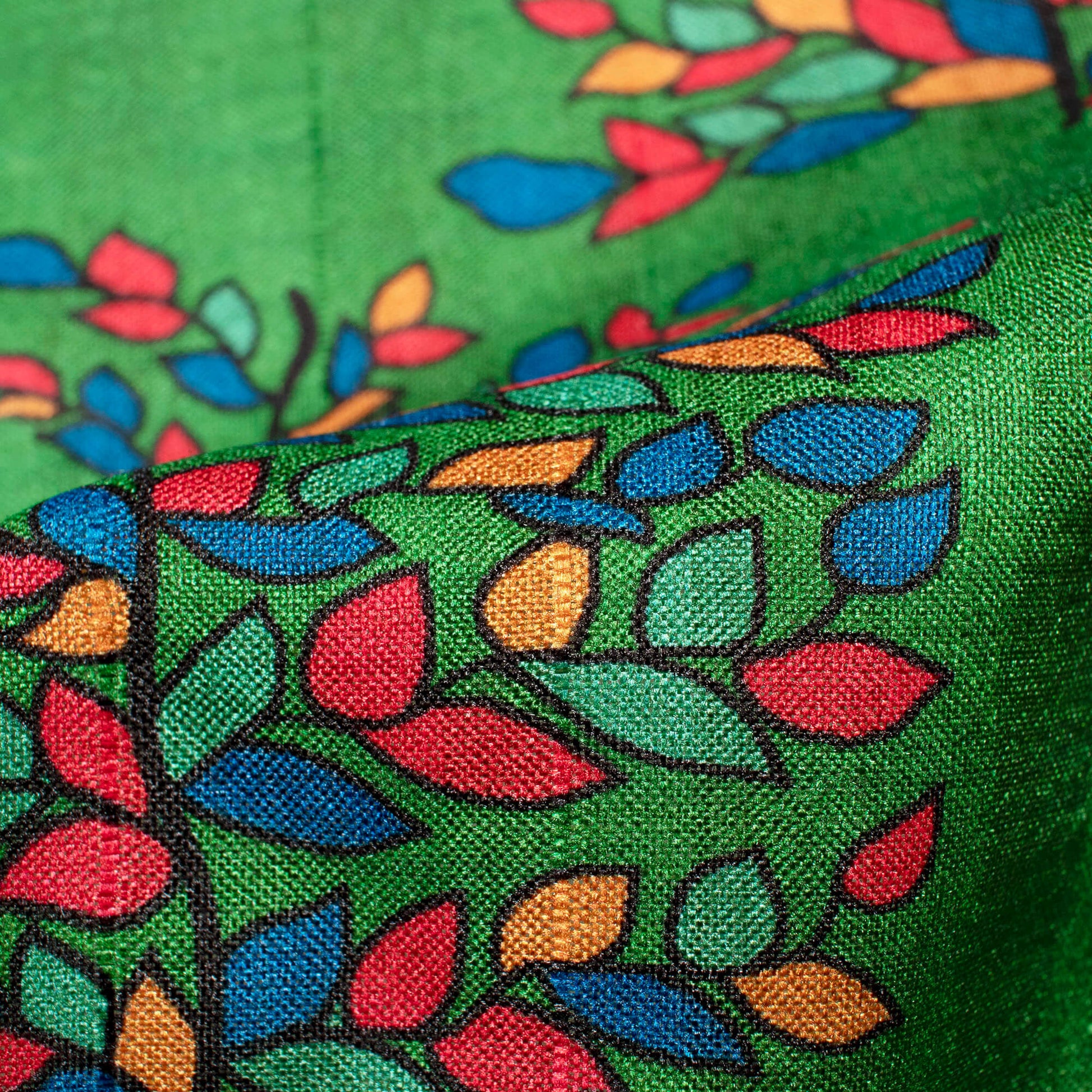 Forest Green And Royal Blue Madhuvanii Pattern Digital Print Art Tusser Silk Fabric