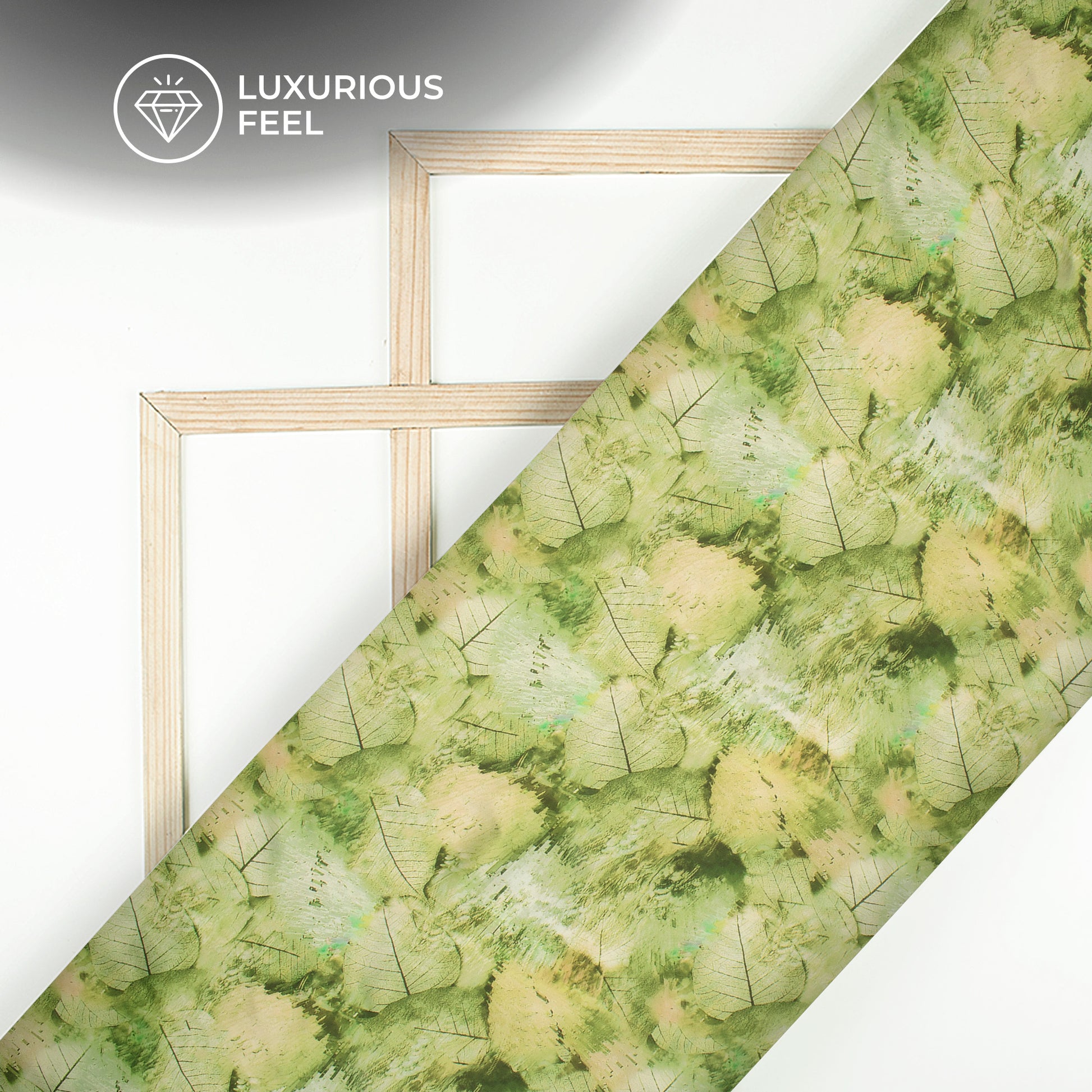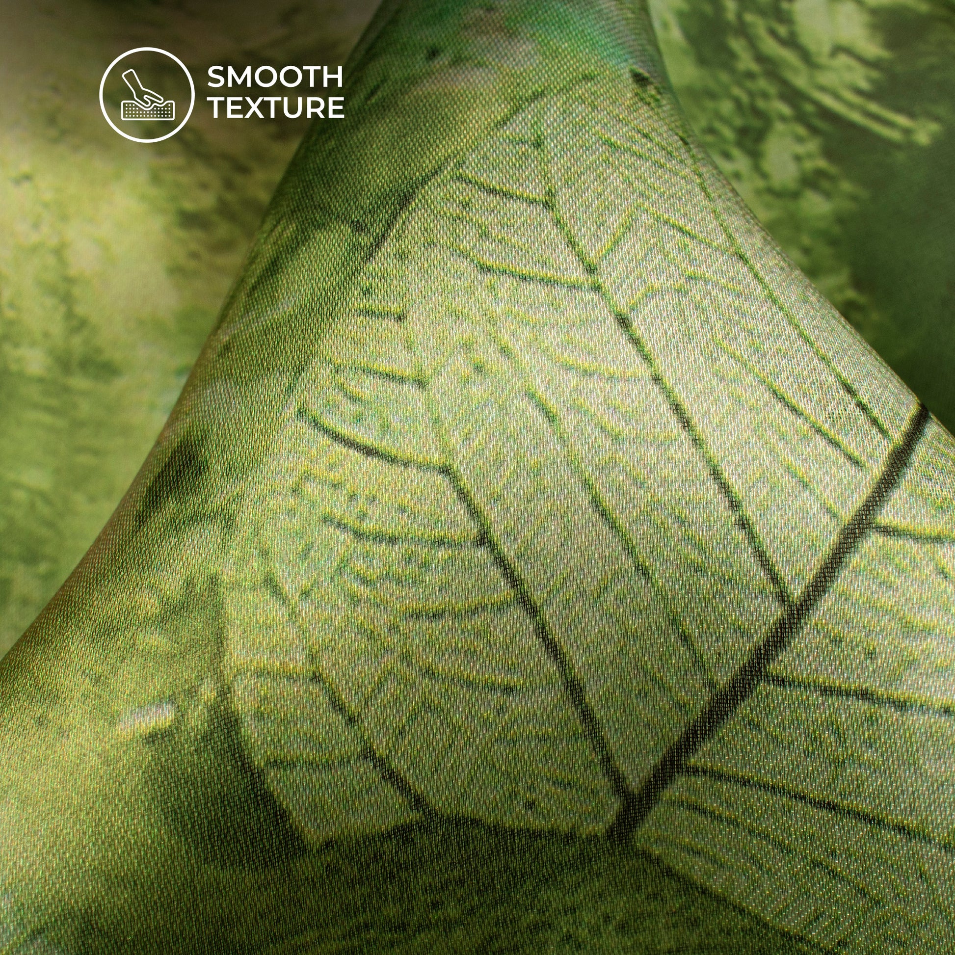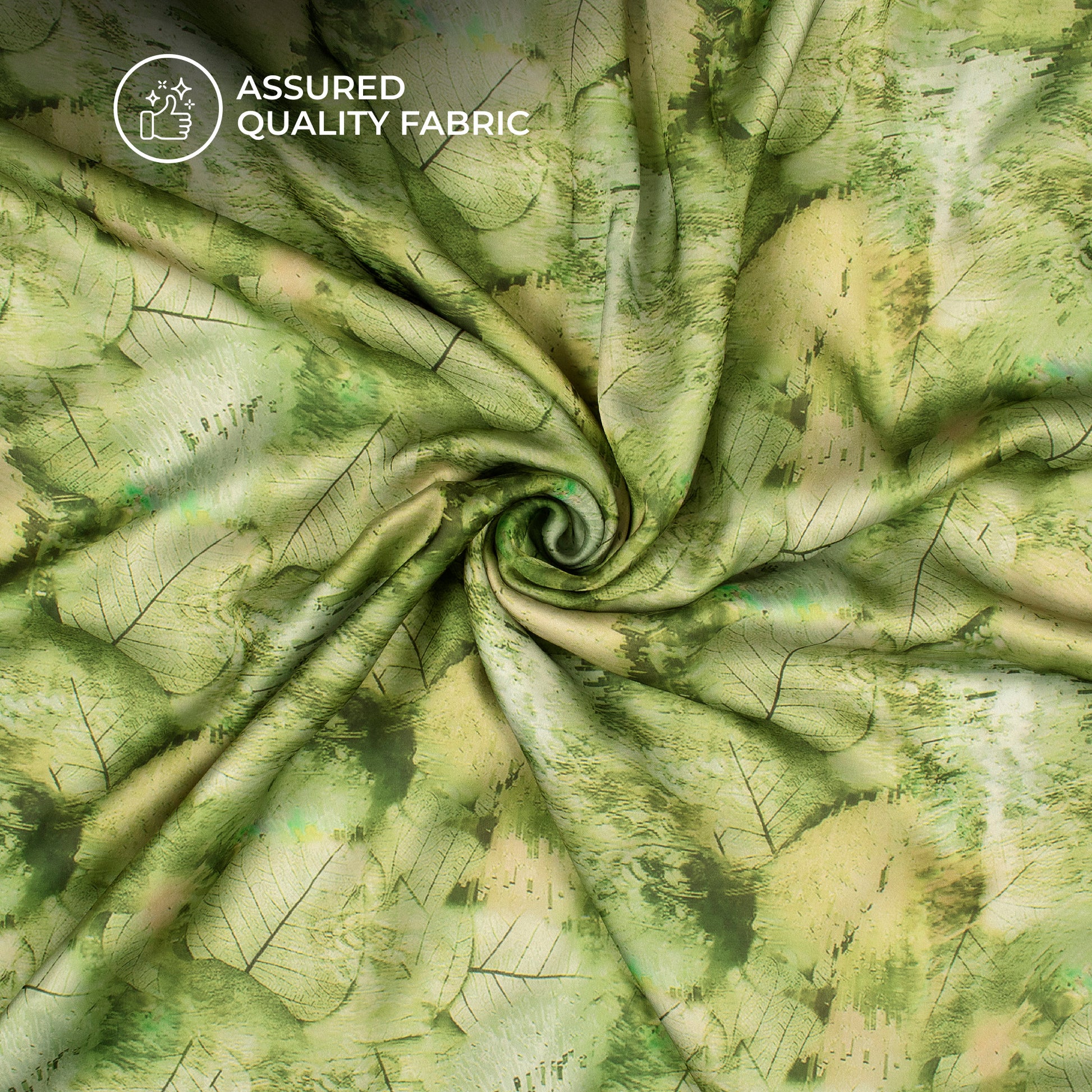 Olive Green Leaf Digital Print Georgette Satin Fabric