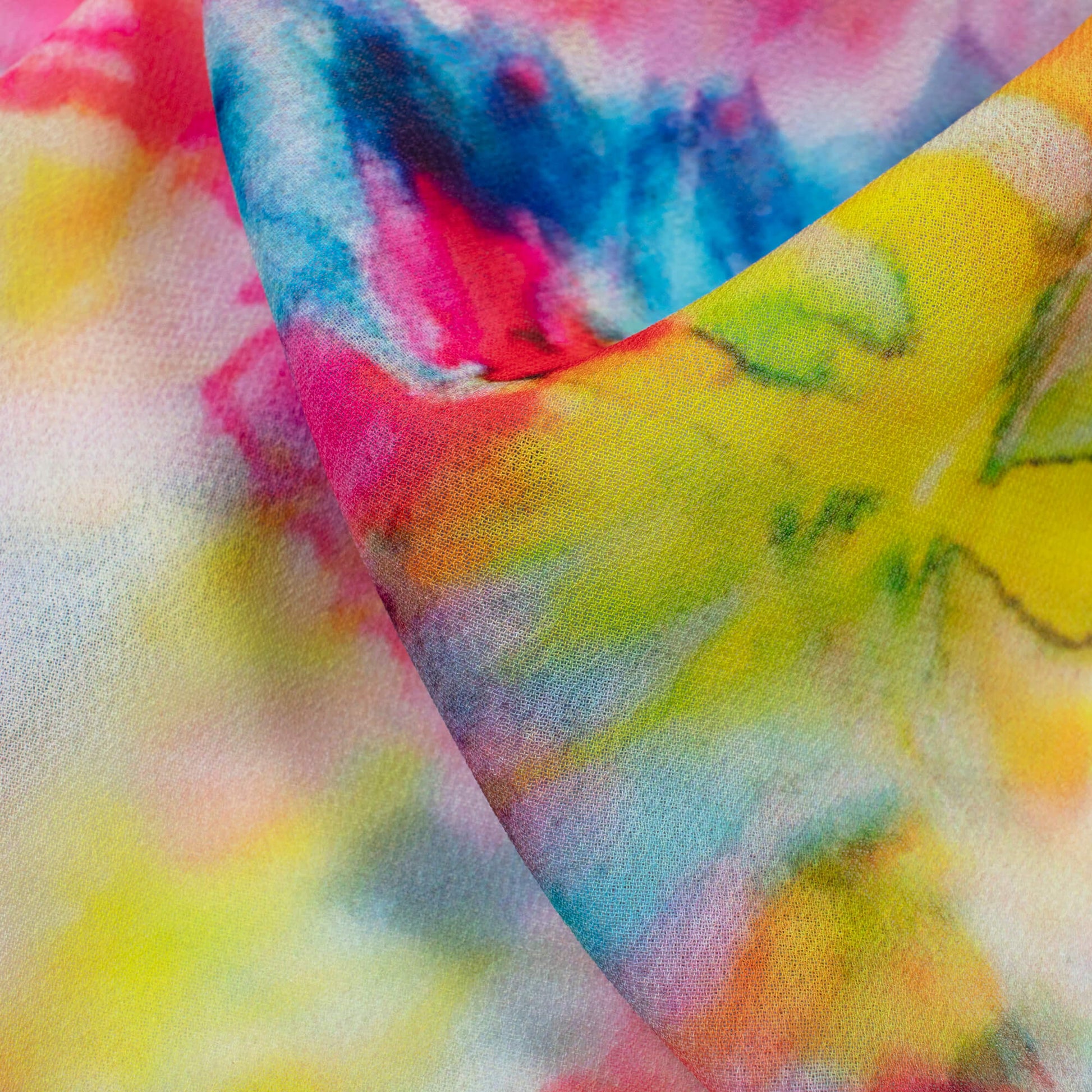 Fuchsia And Yellow Rainbow Pattern Digital Print Georgette Fabric