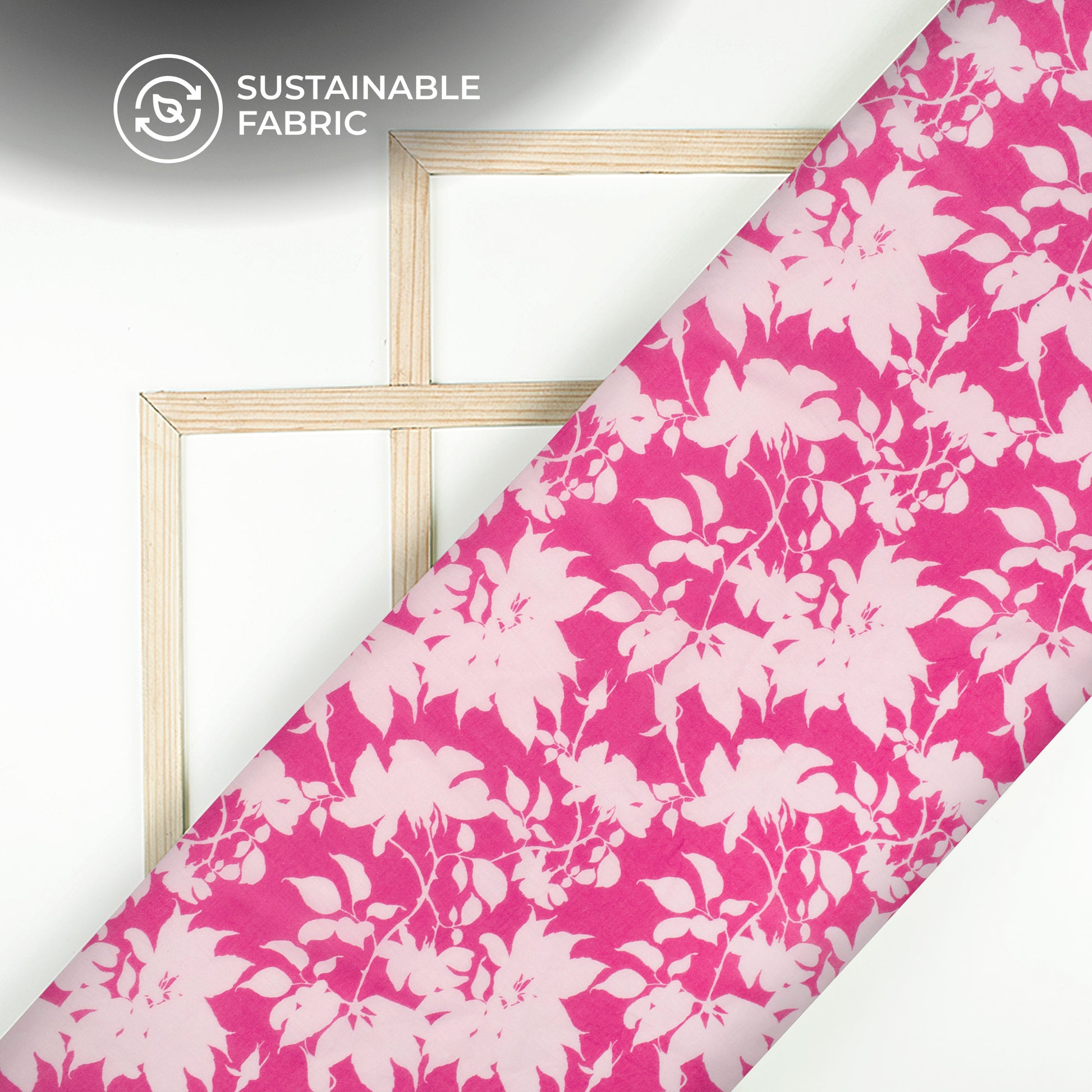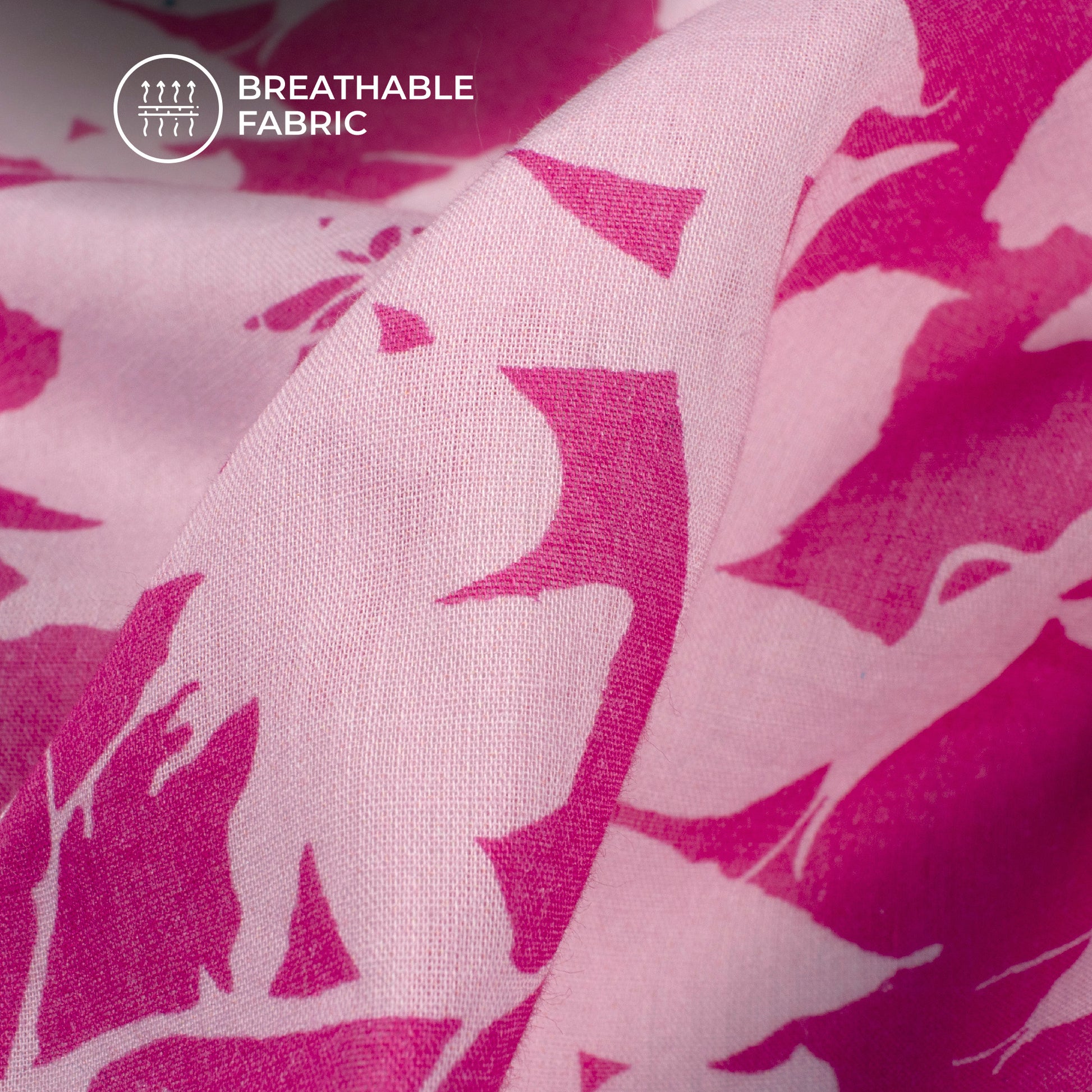 Fuscia Pink Floral Digital Print Pure Cotton Mulmul Fabric