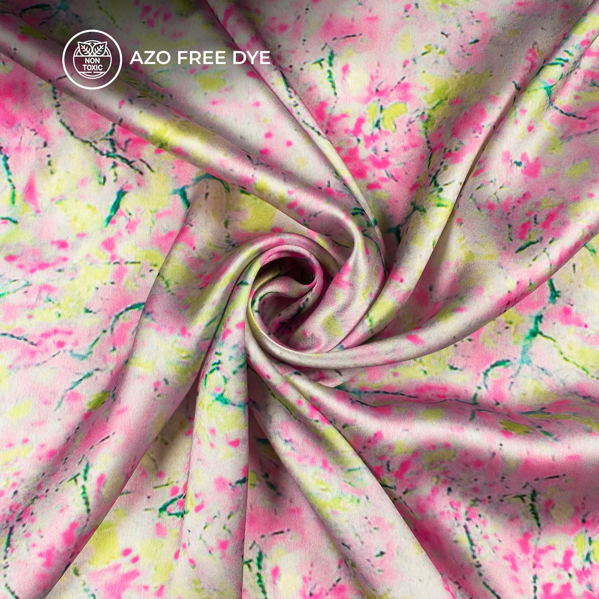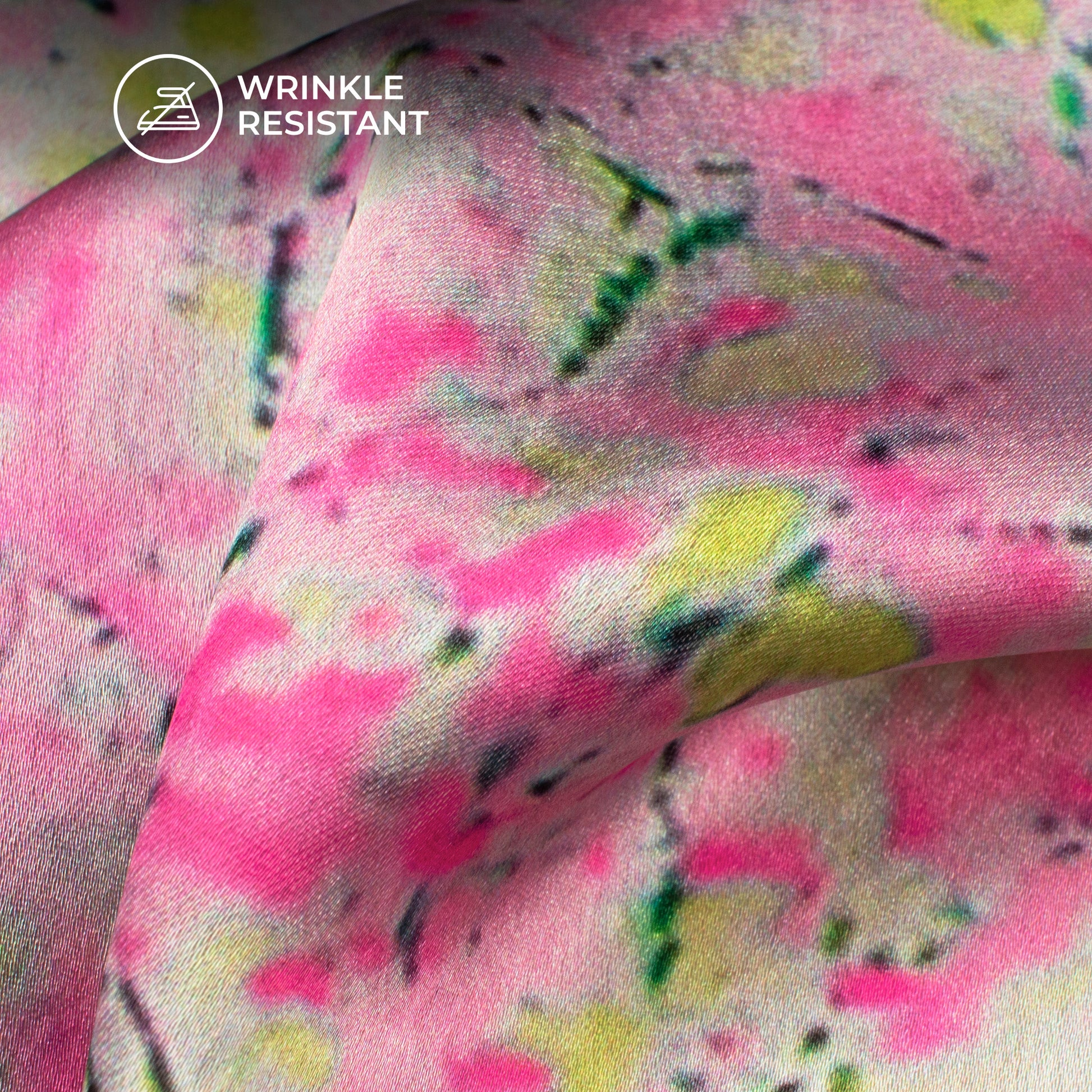 Fuscia Pink Tye And Dye Digital Print Japan Satin Fabric