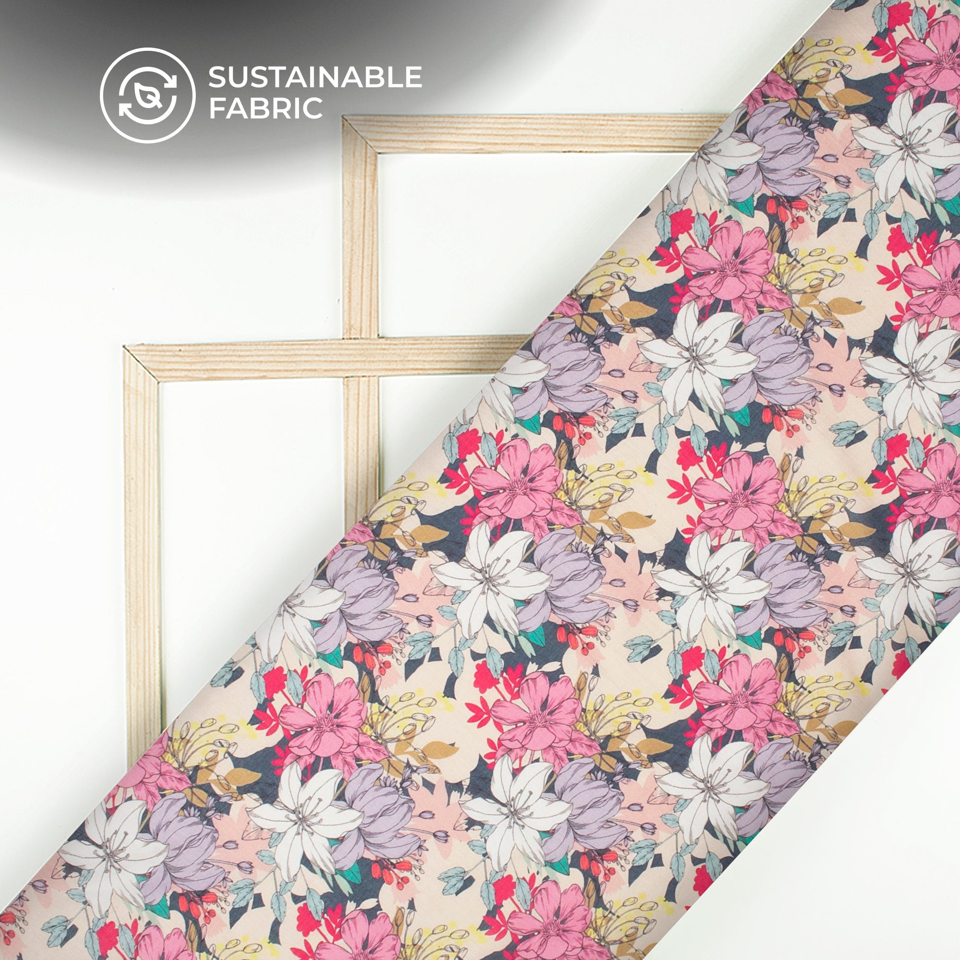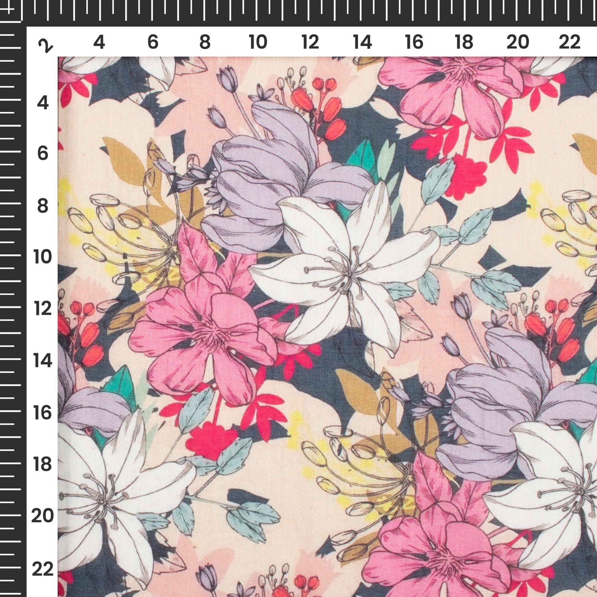 Garden of Dreams: Floral Digital Print Pure Cotton Mulmul Fabric