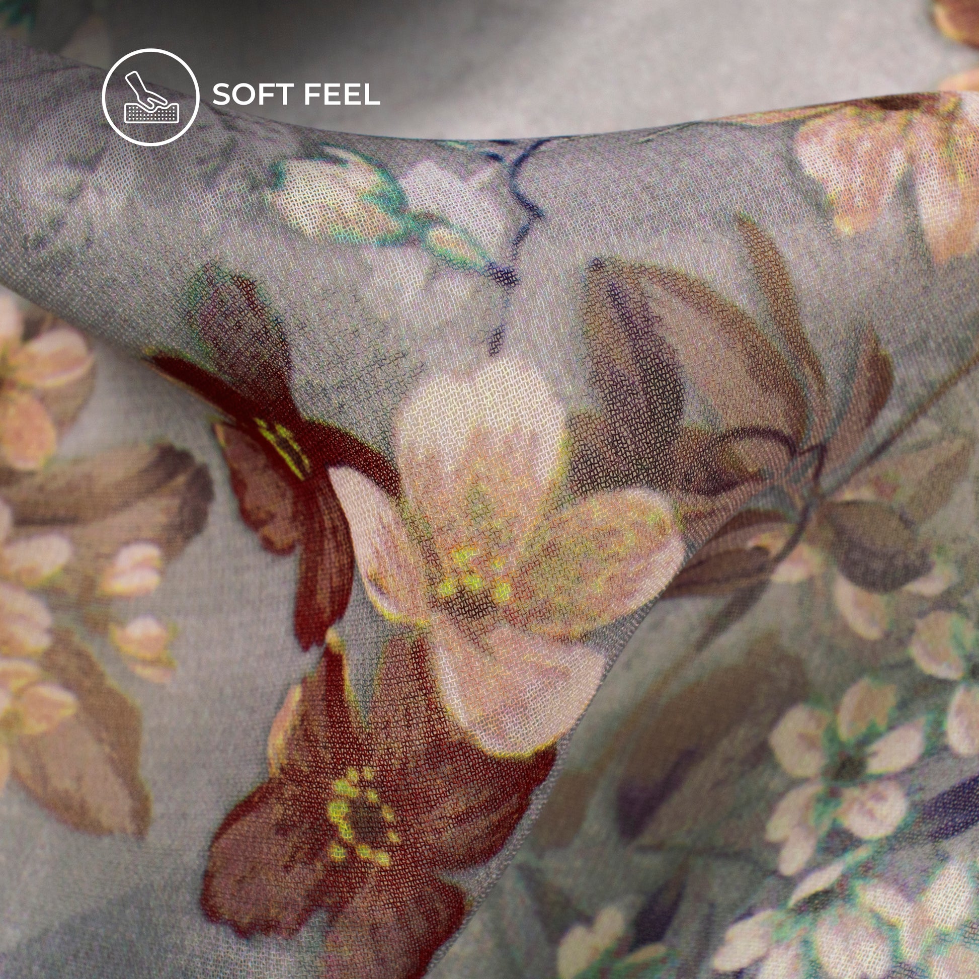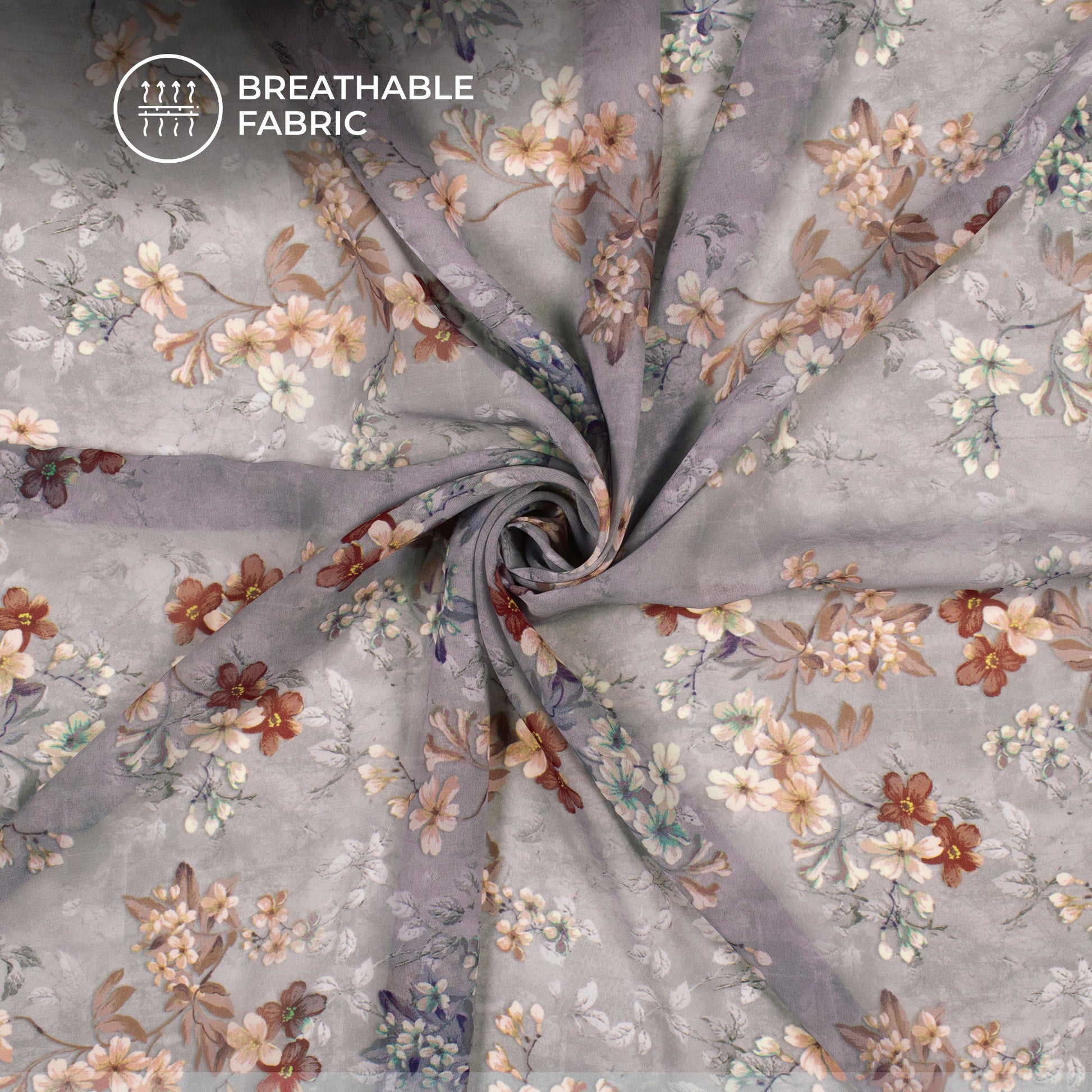 Refined Grey Floral Digital Print Lightweight Georgette Fabric