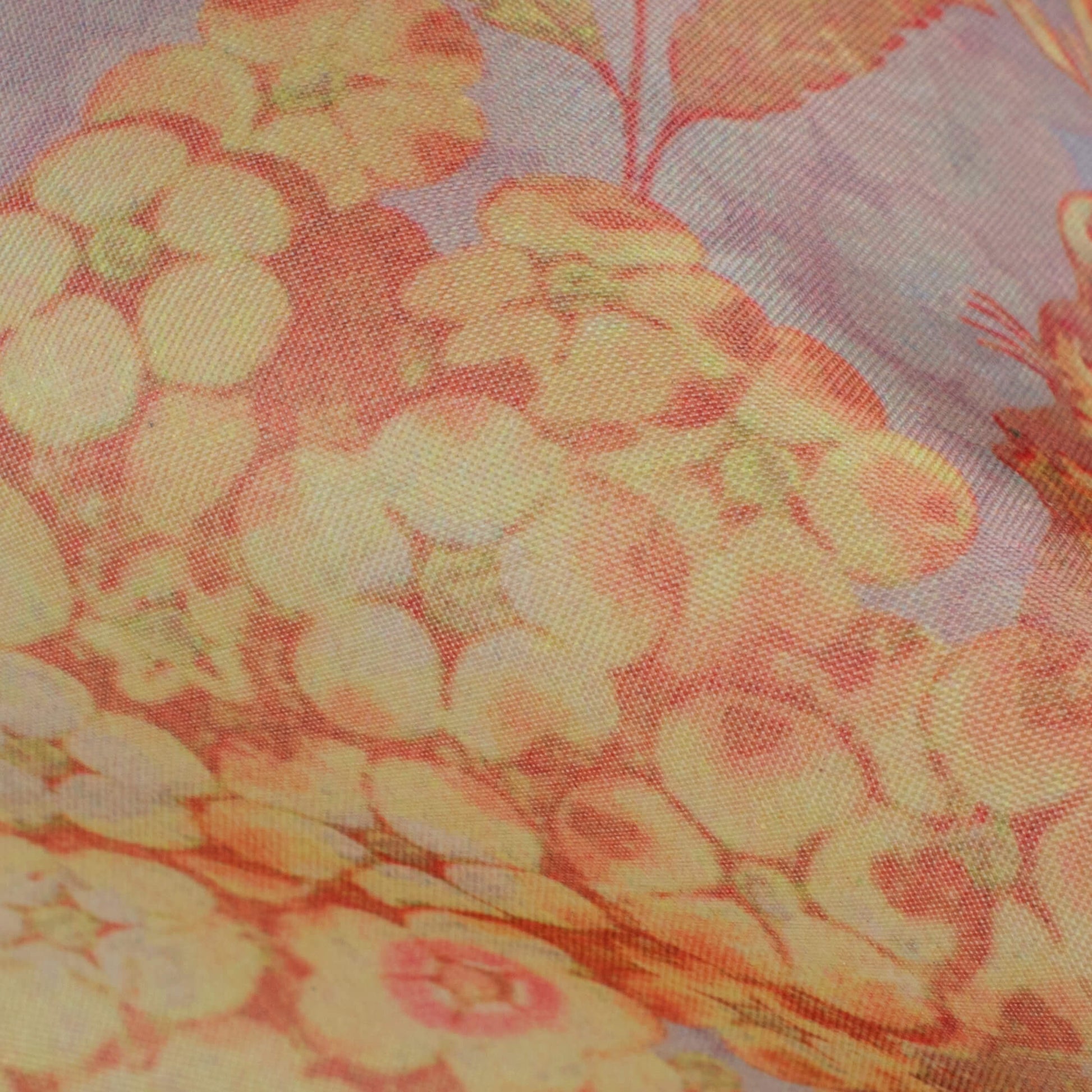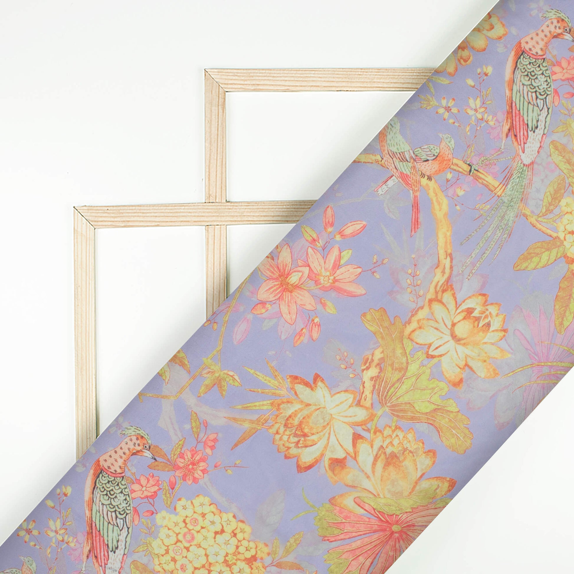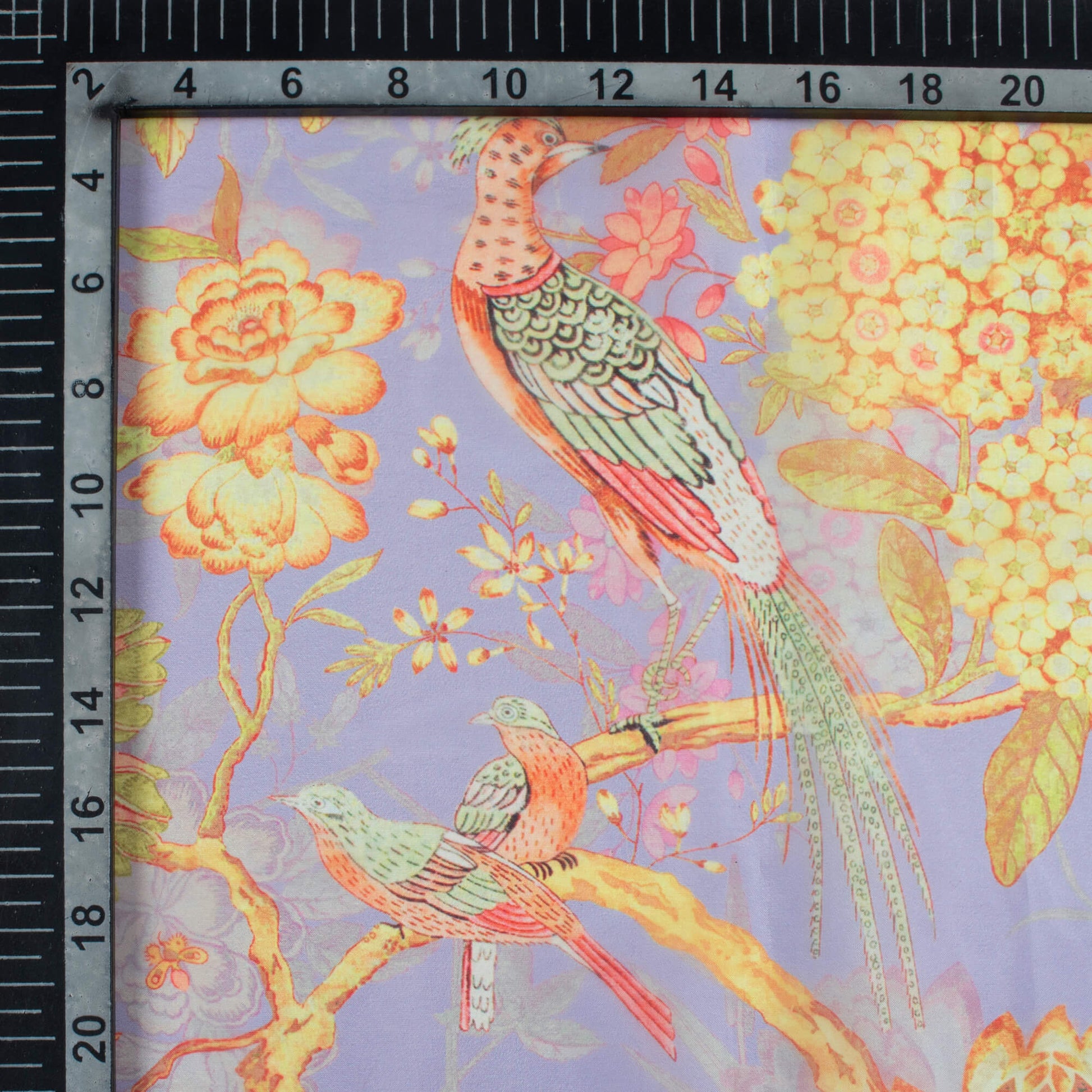 Heather Purple And Corn Yellow Floral Pattern Digital Print Organza Satin Fabric