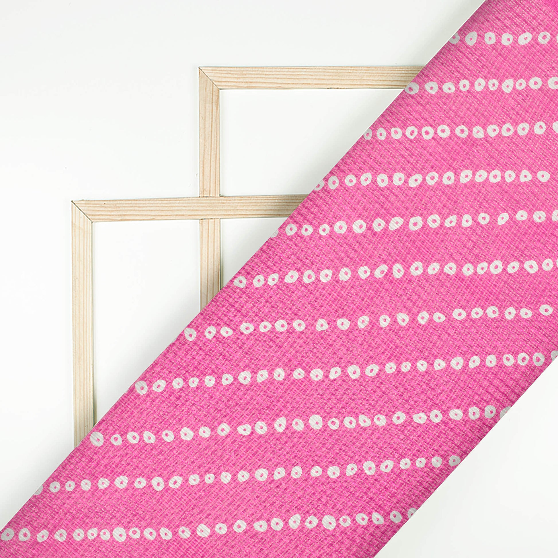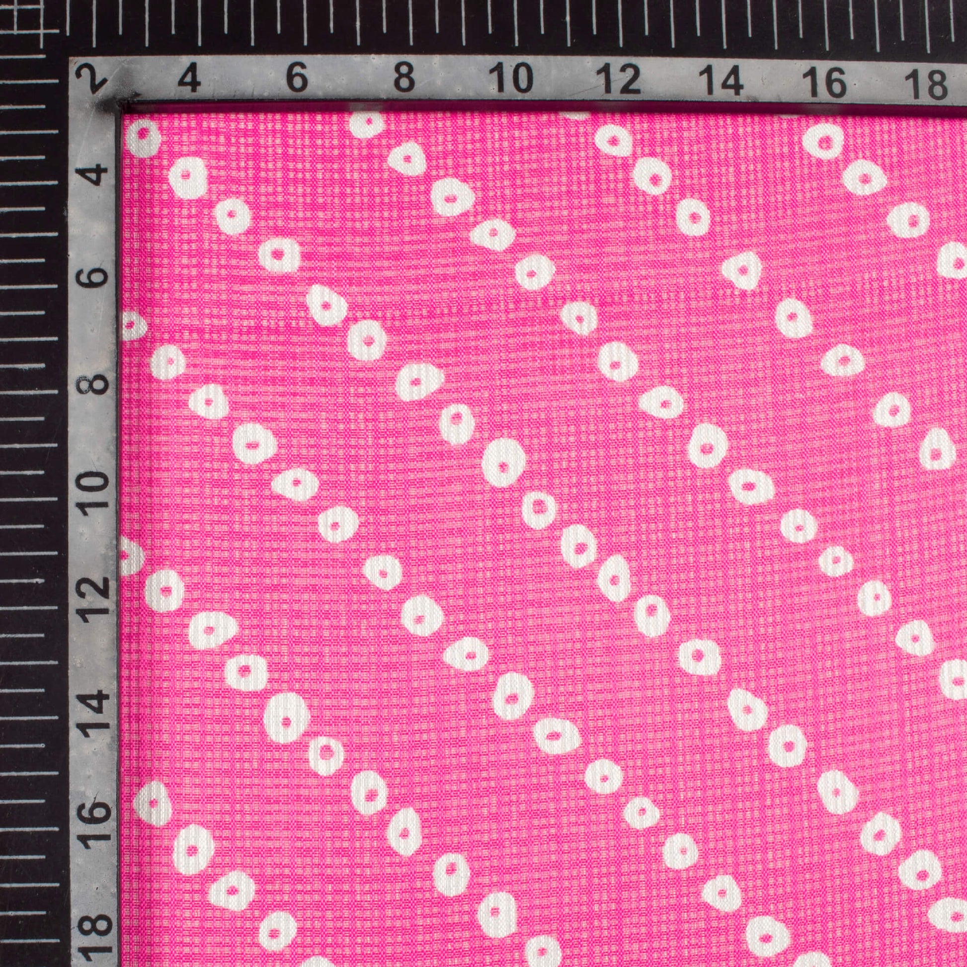 Hot Pink And White Bandhanii Pattern Digital Print Kota Doria Fabric