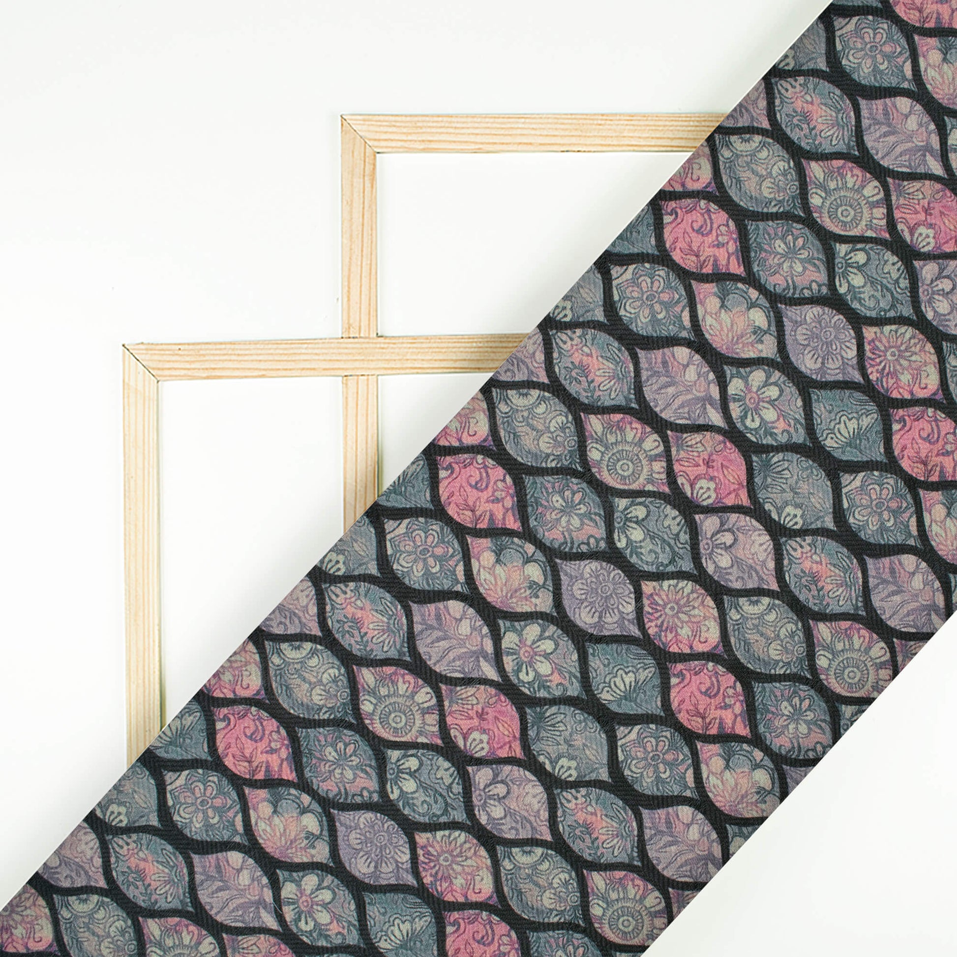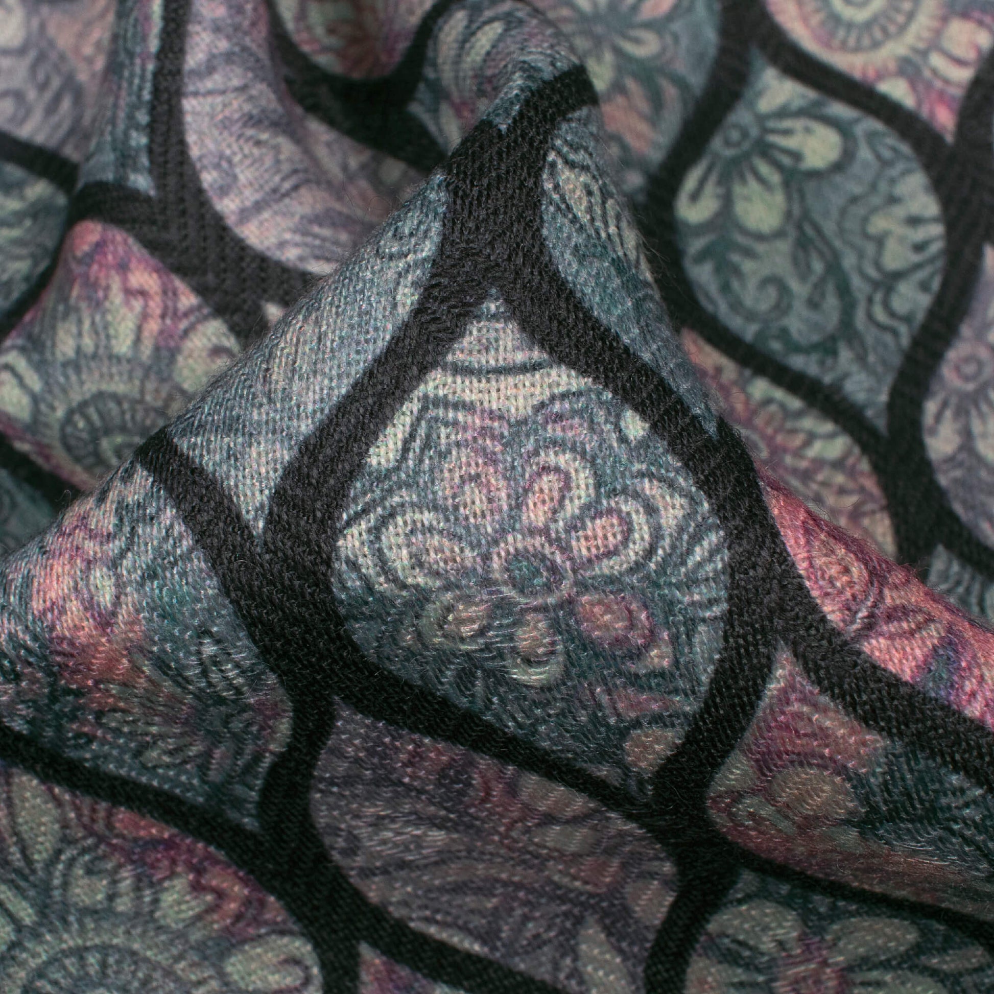 Hunter Green And Pink Floral Pattern Digital Print Elegant Blend Pashmina Fabric