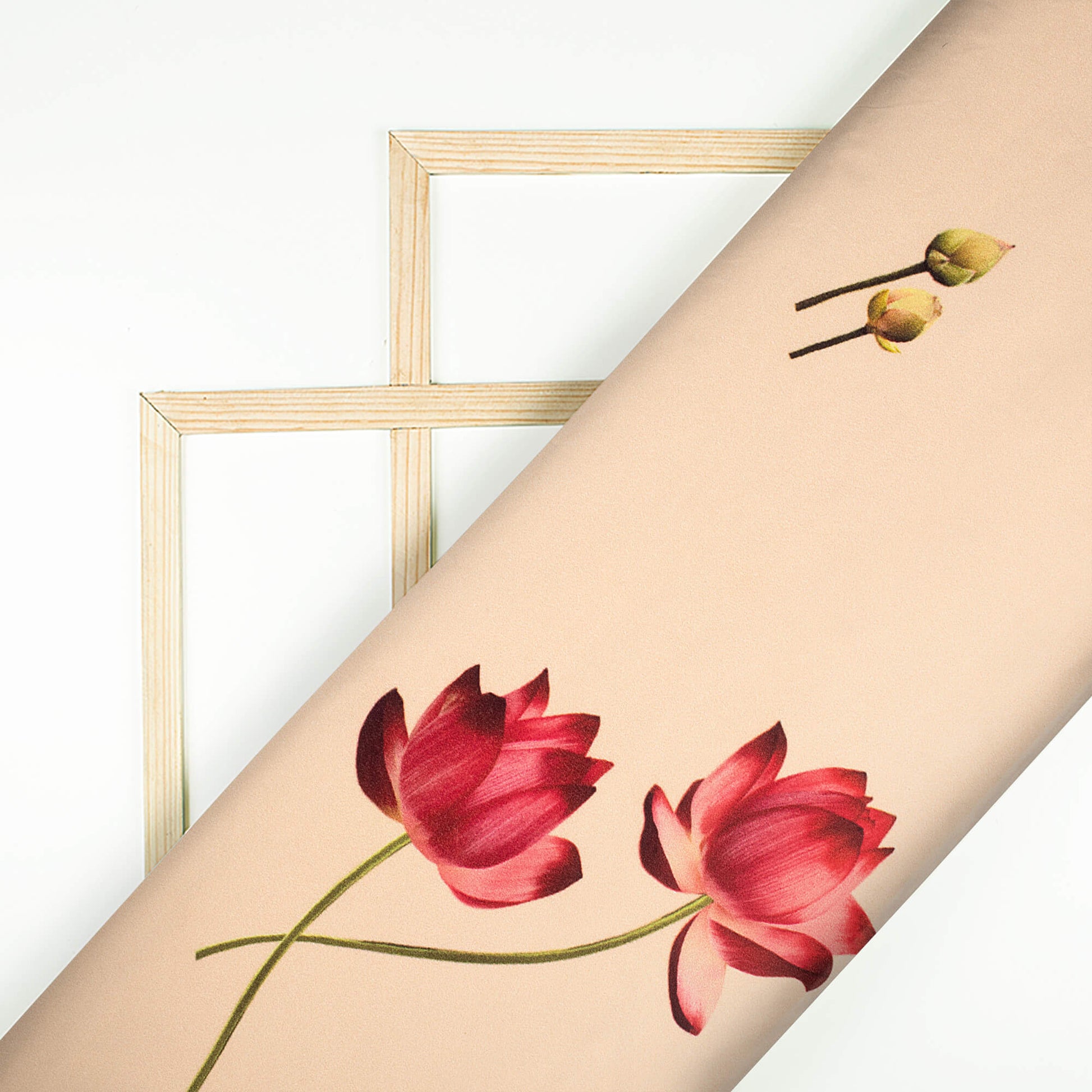 Ivory Cream And Lotus Pink Floral Pattern Digital Print Lush Satin Fabric