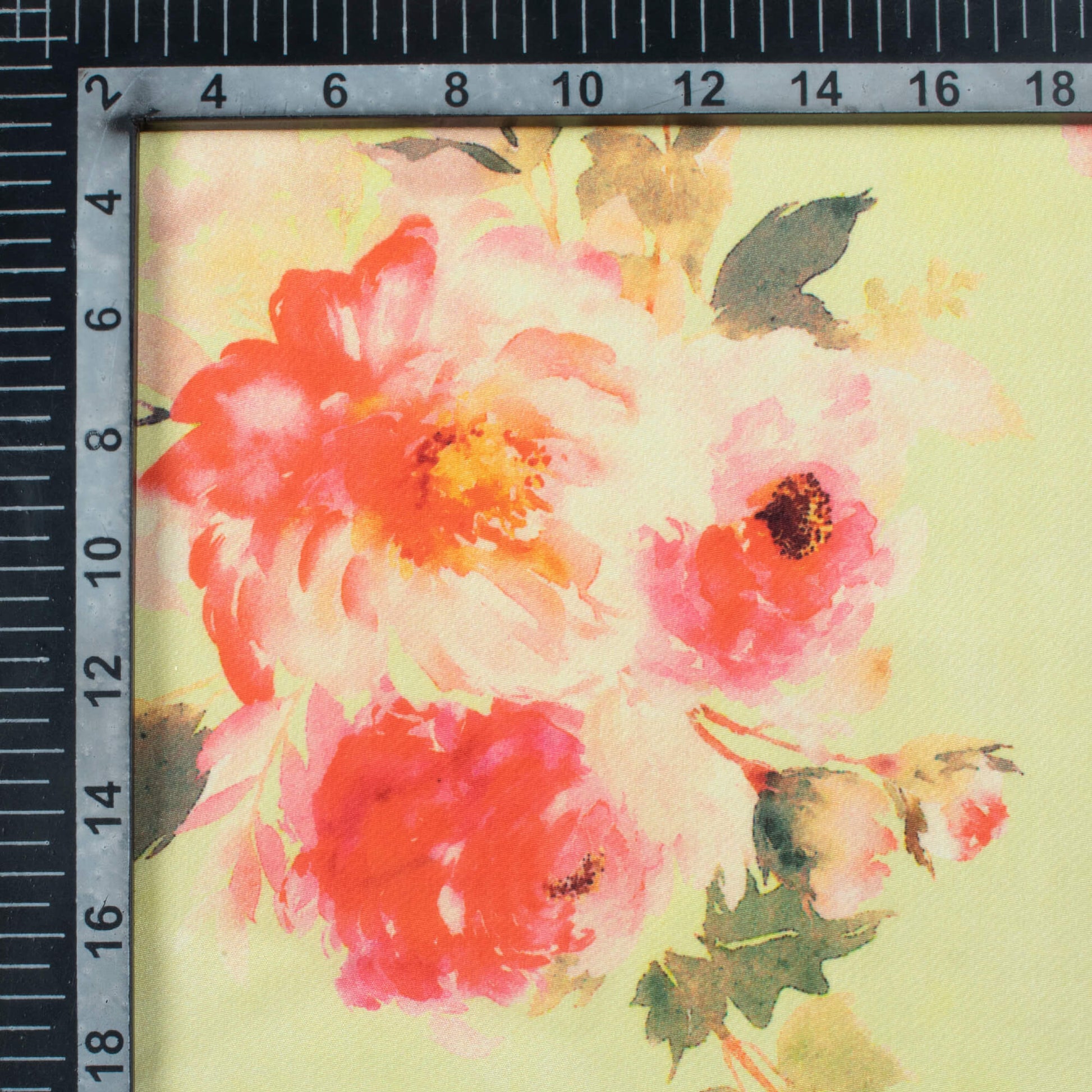 Lemon Yellow And Persian Red Floral Pattern Digital Print Crepe Silk Fabric