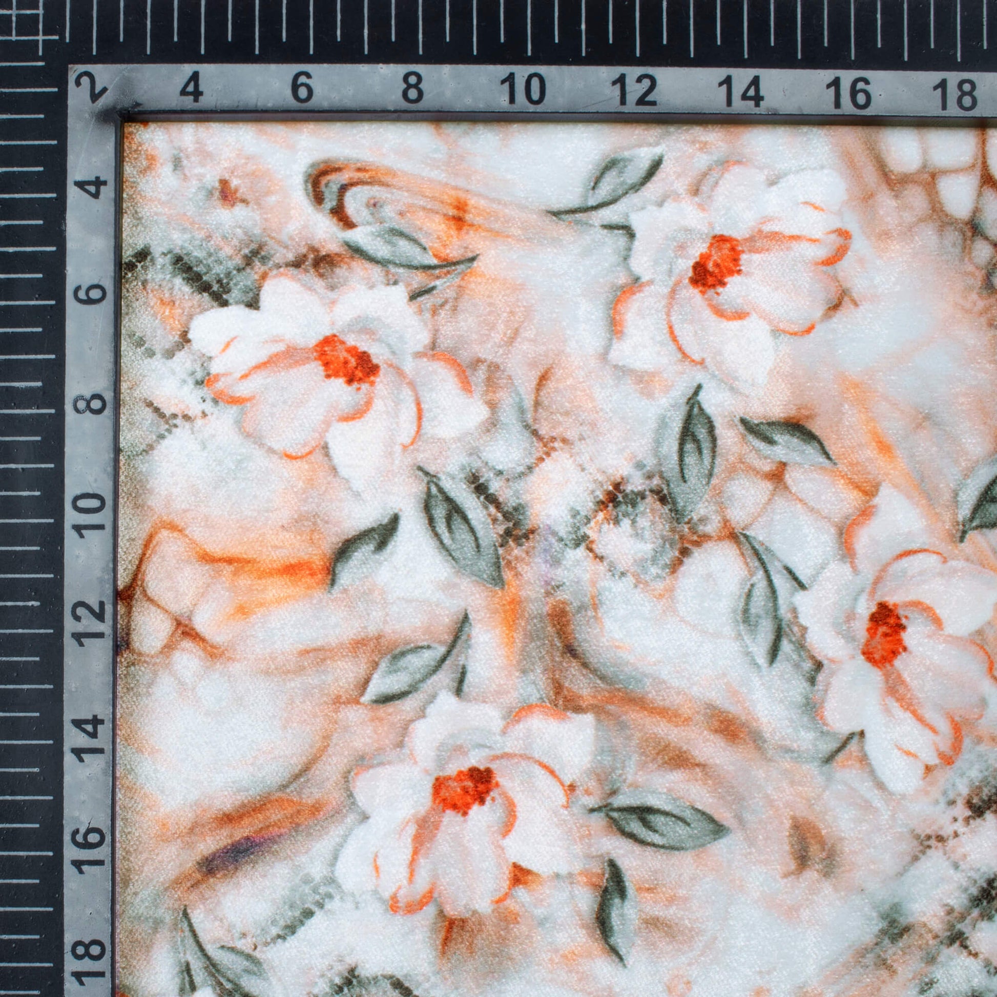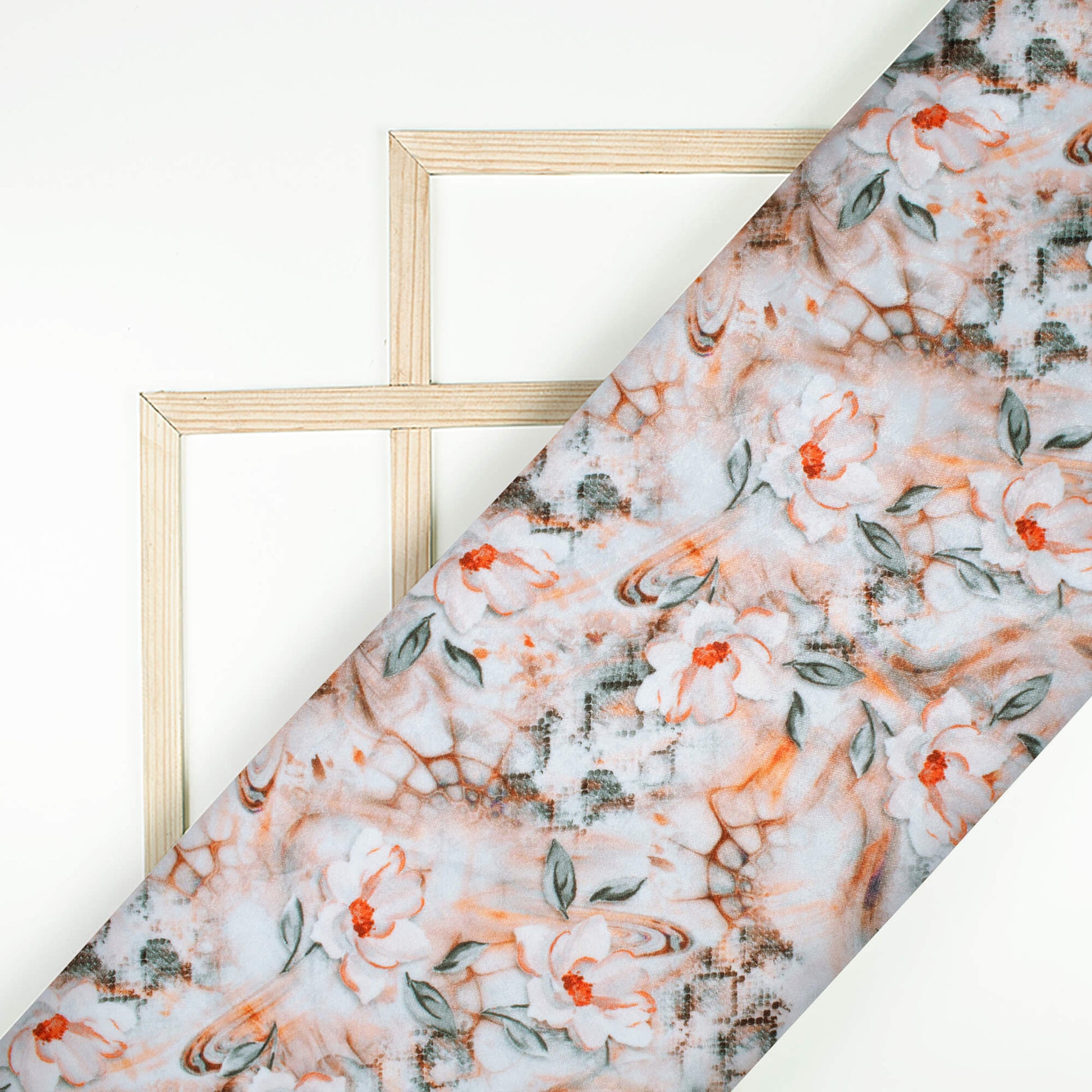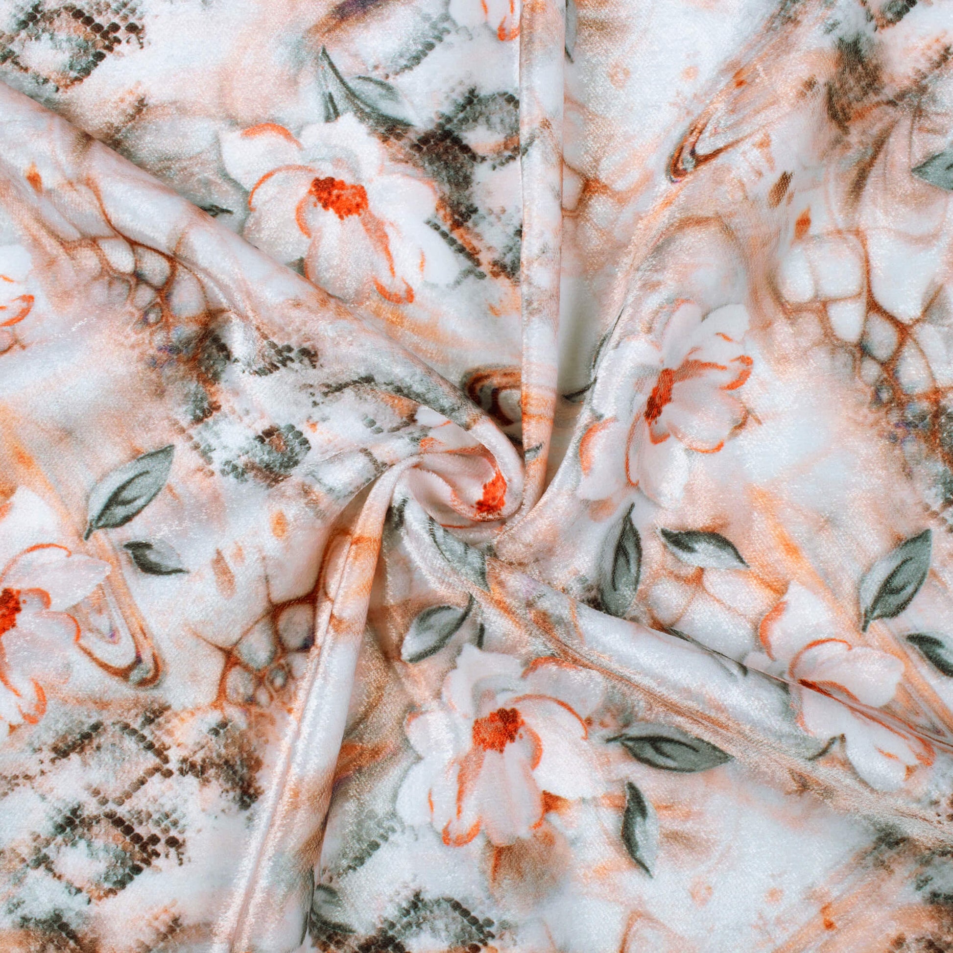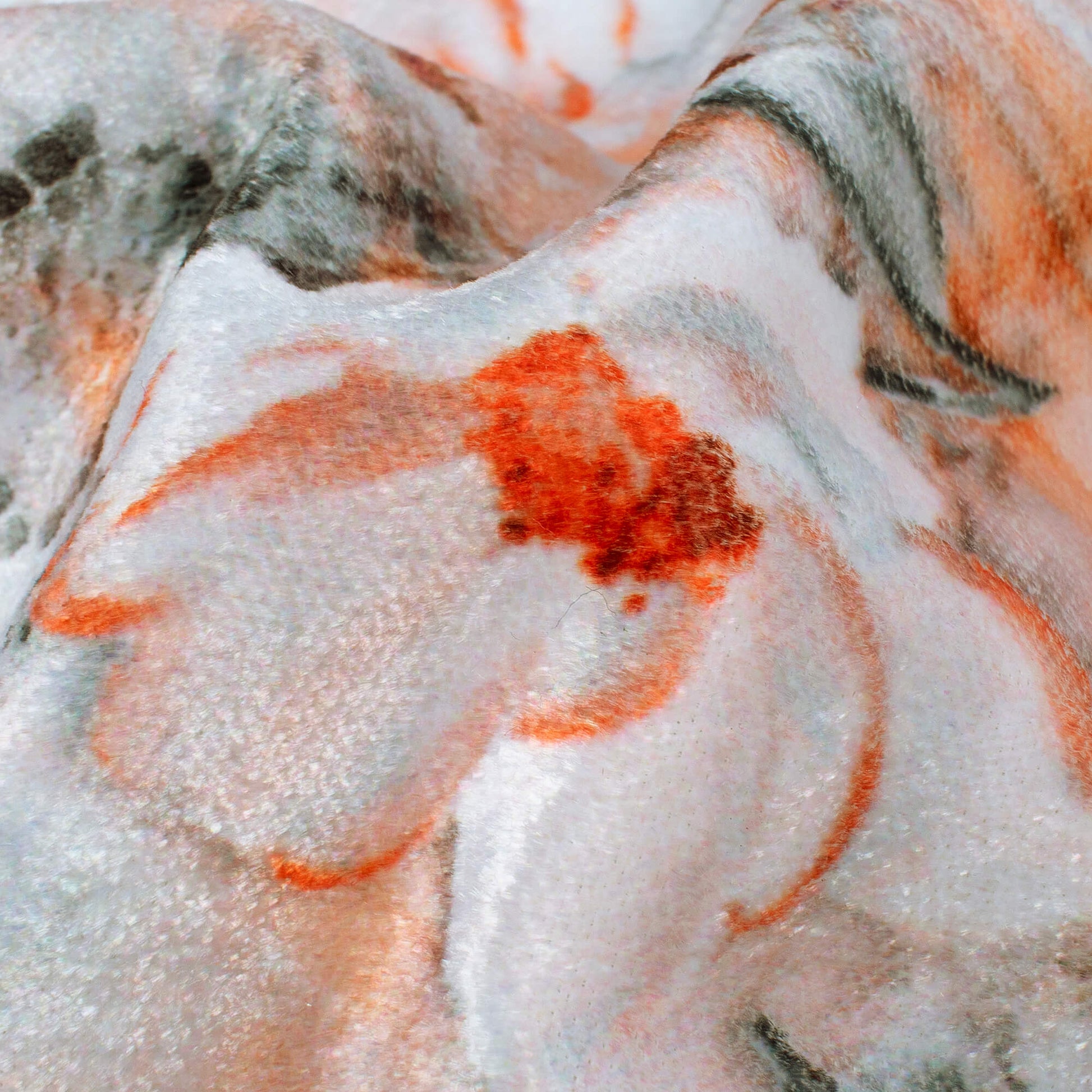 Light Orange And Grey Floral Pattern Digital Print Premium Velvet Fabric