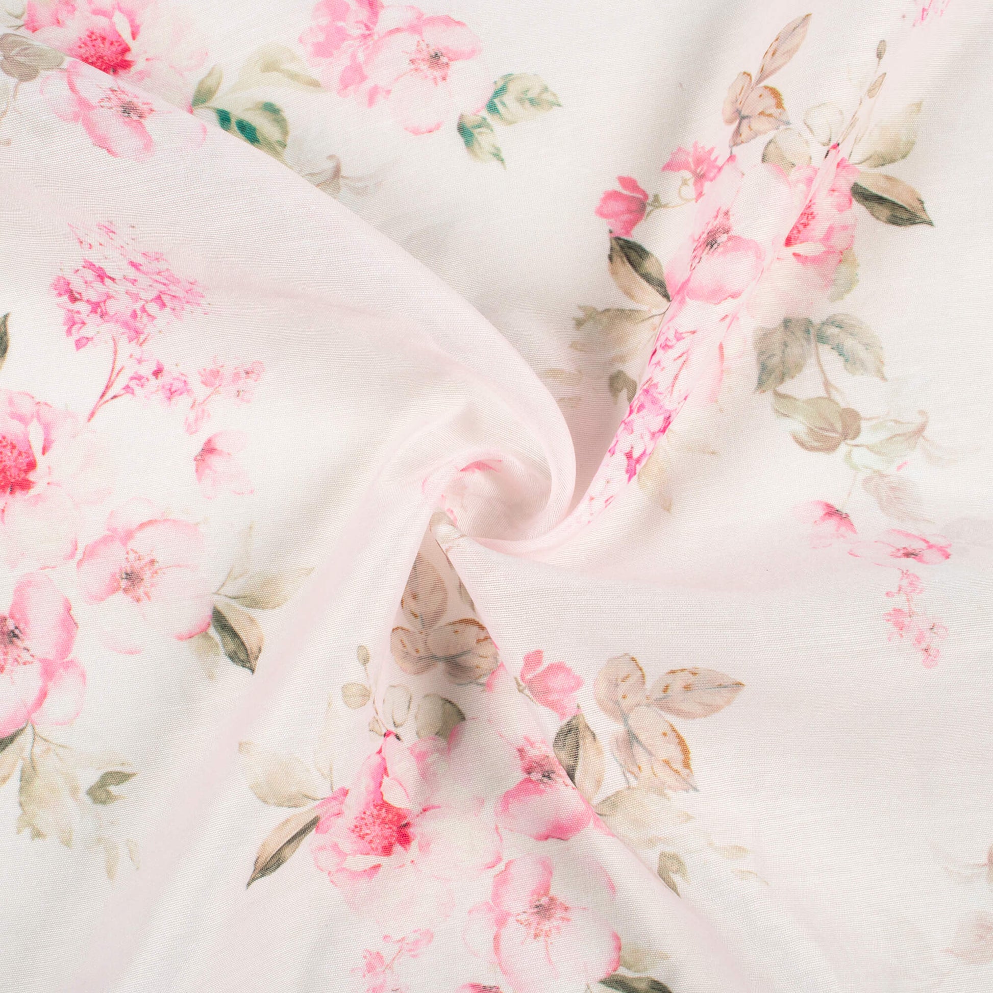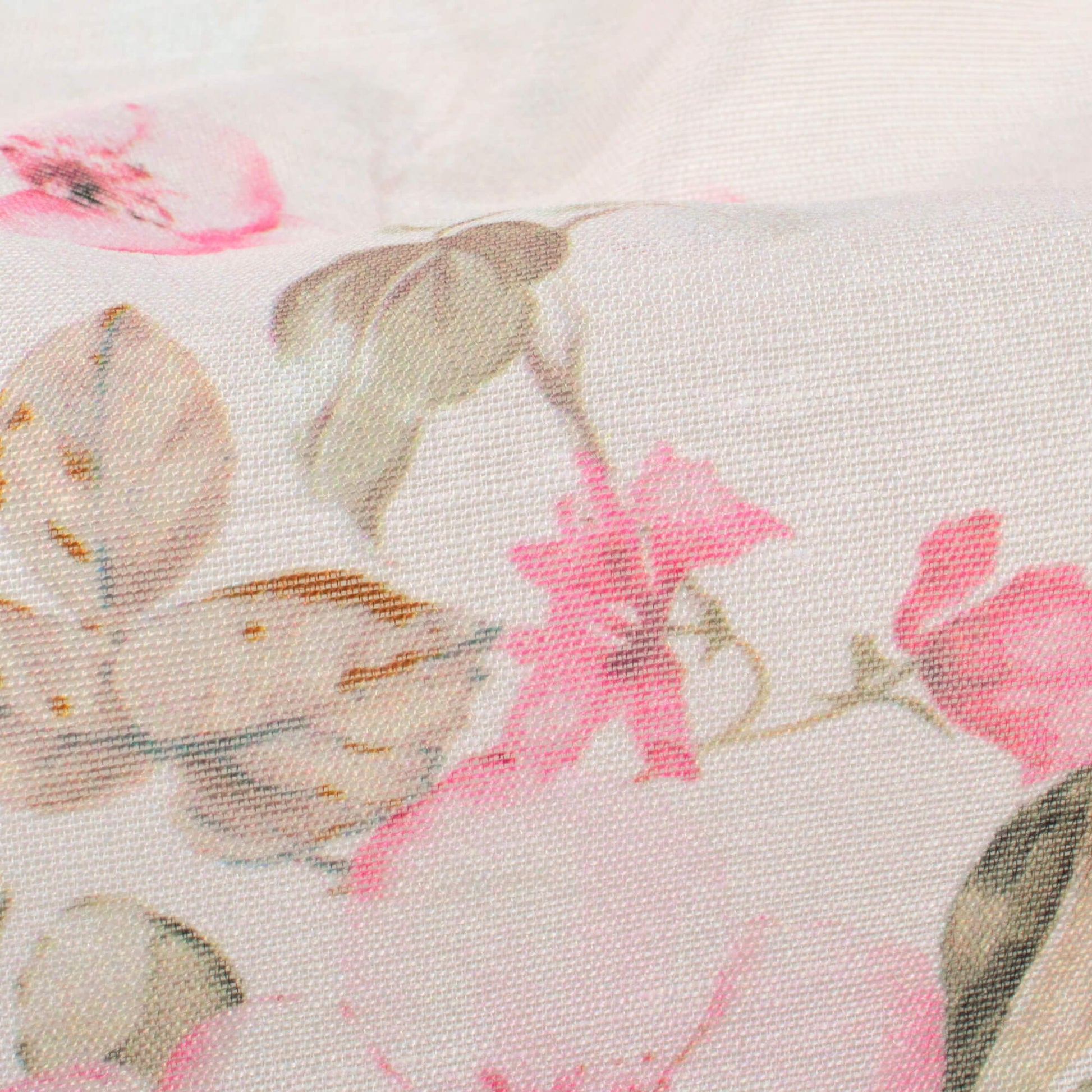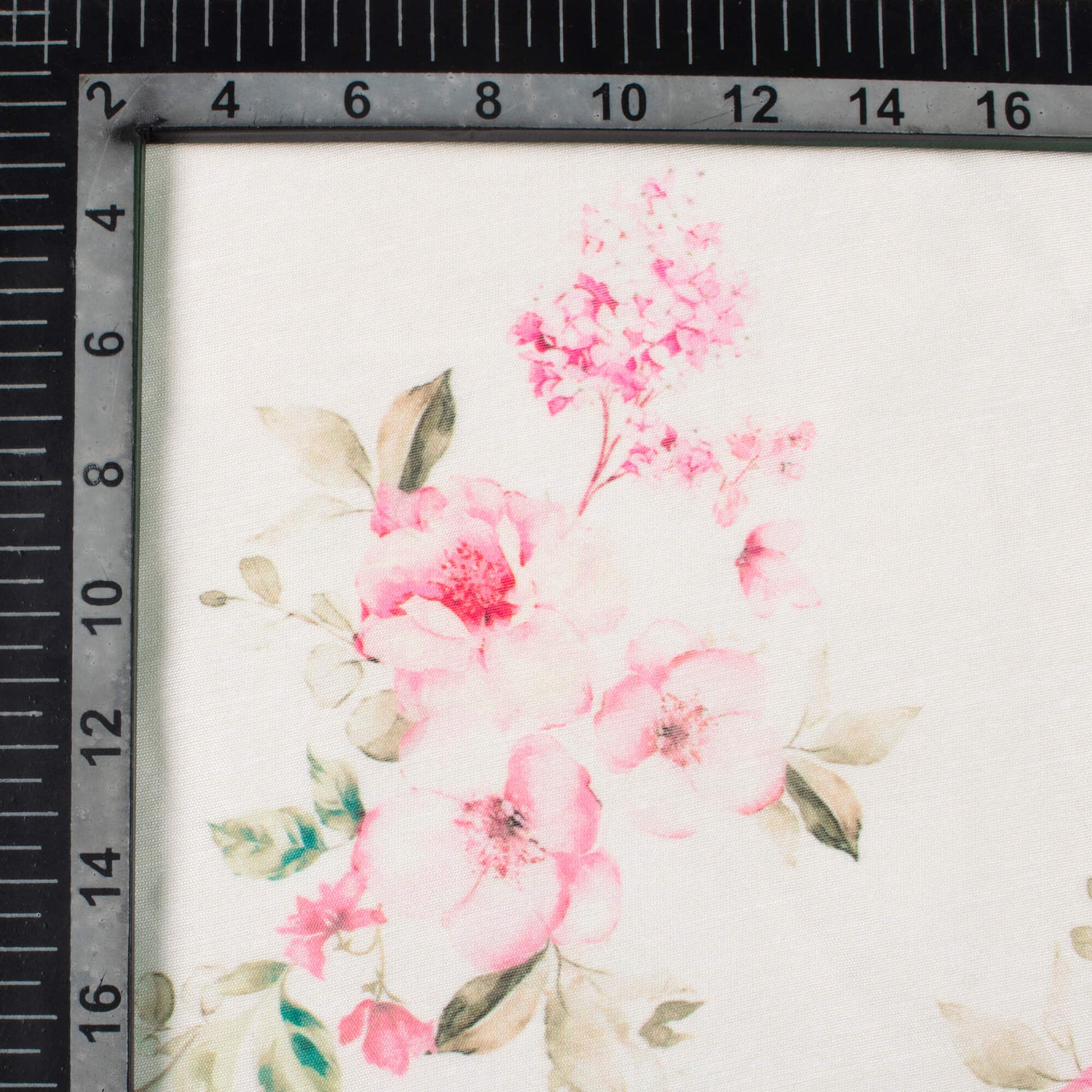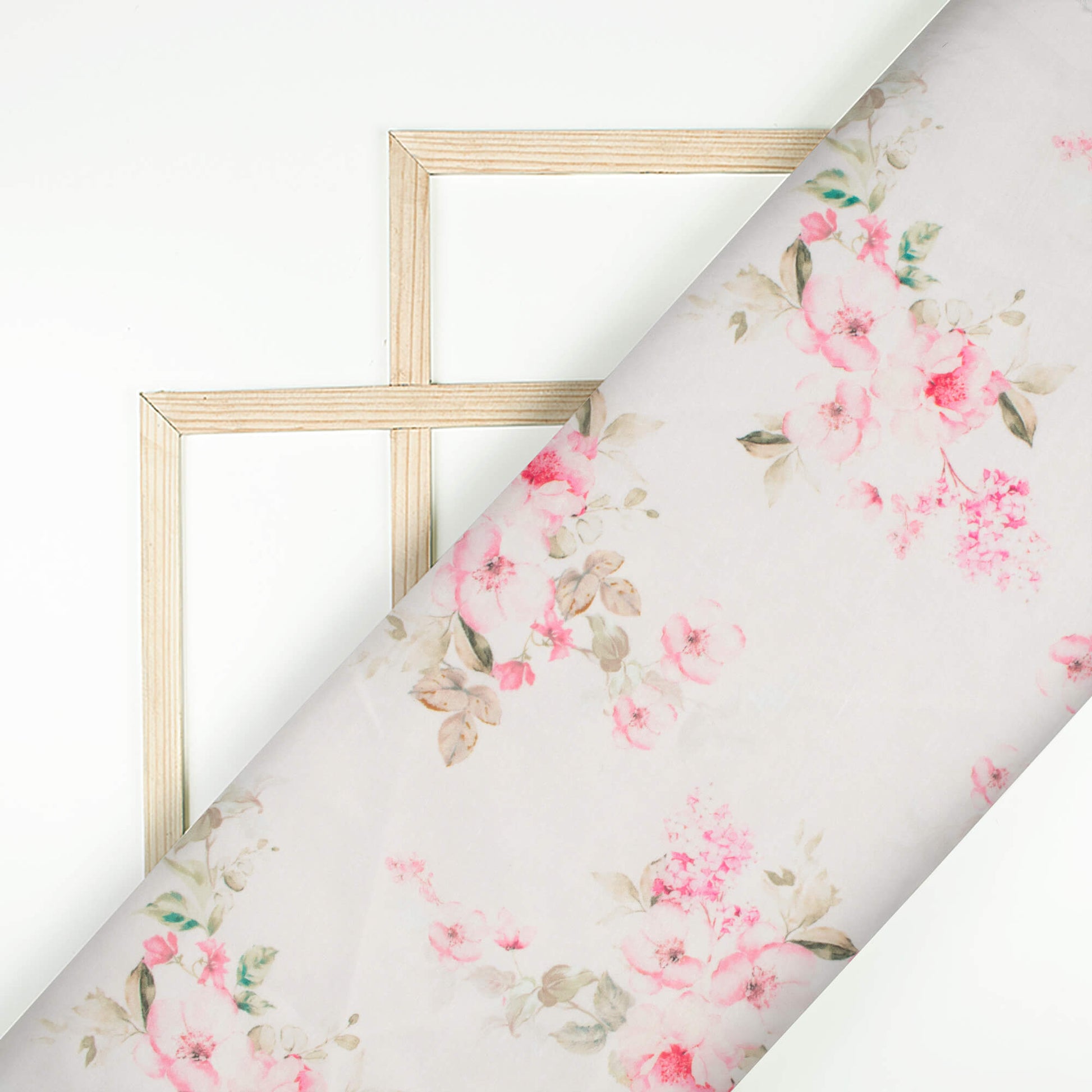 Light Peach And Pastel Pink Floral Pattern Digital Print Chanderi Fabric