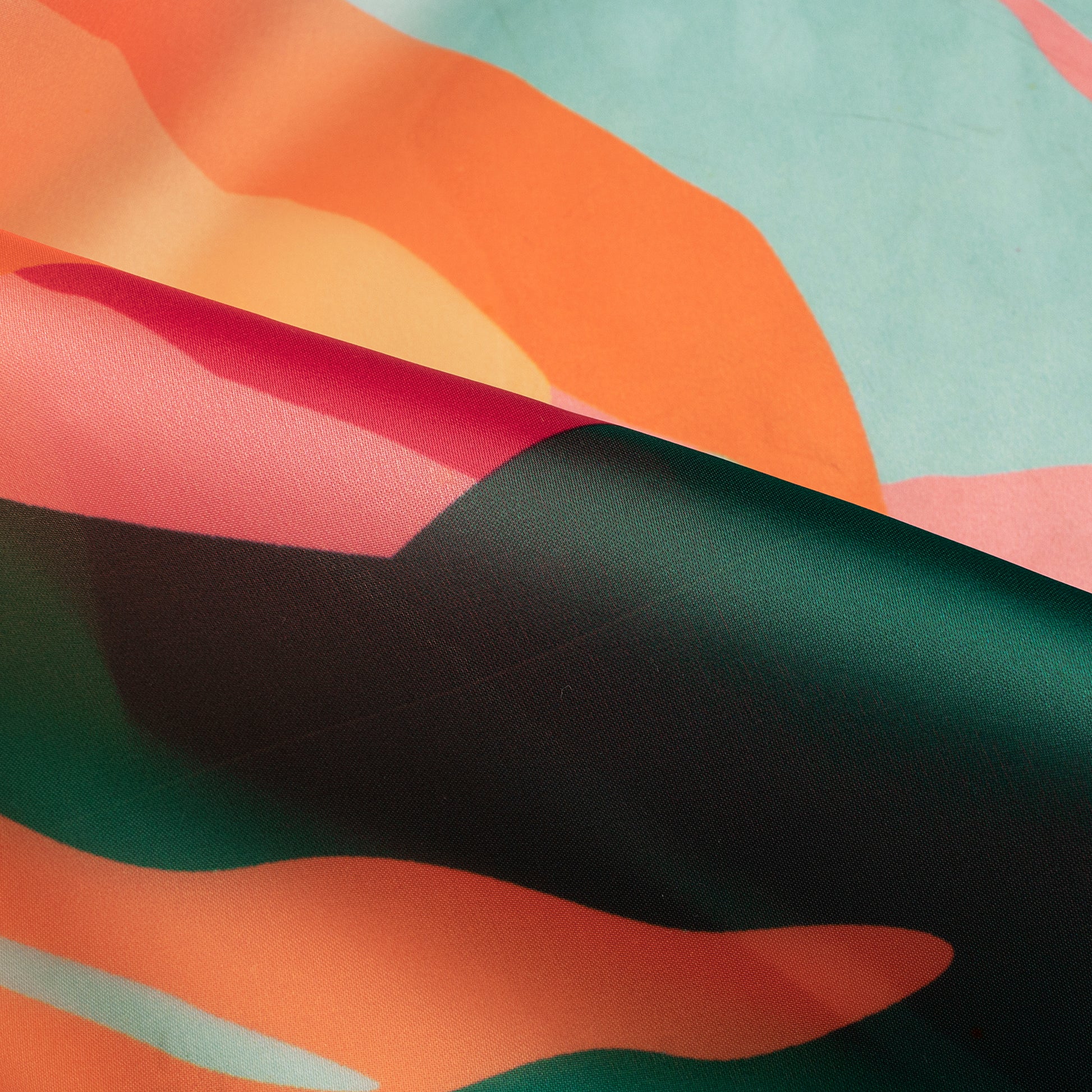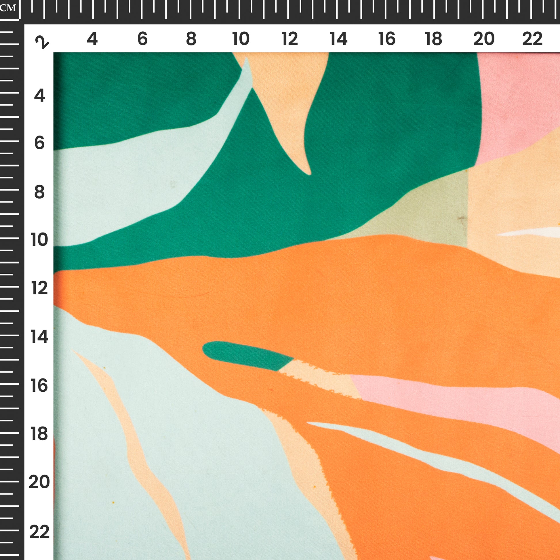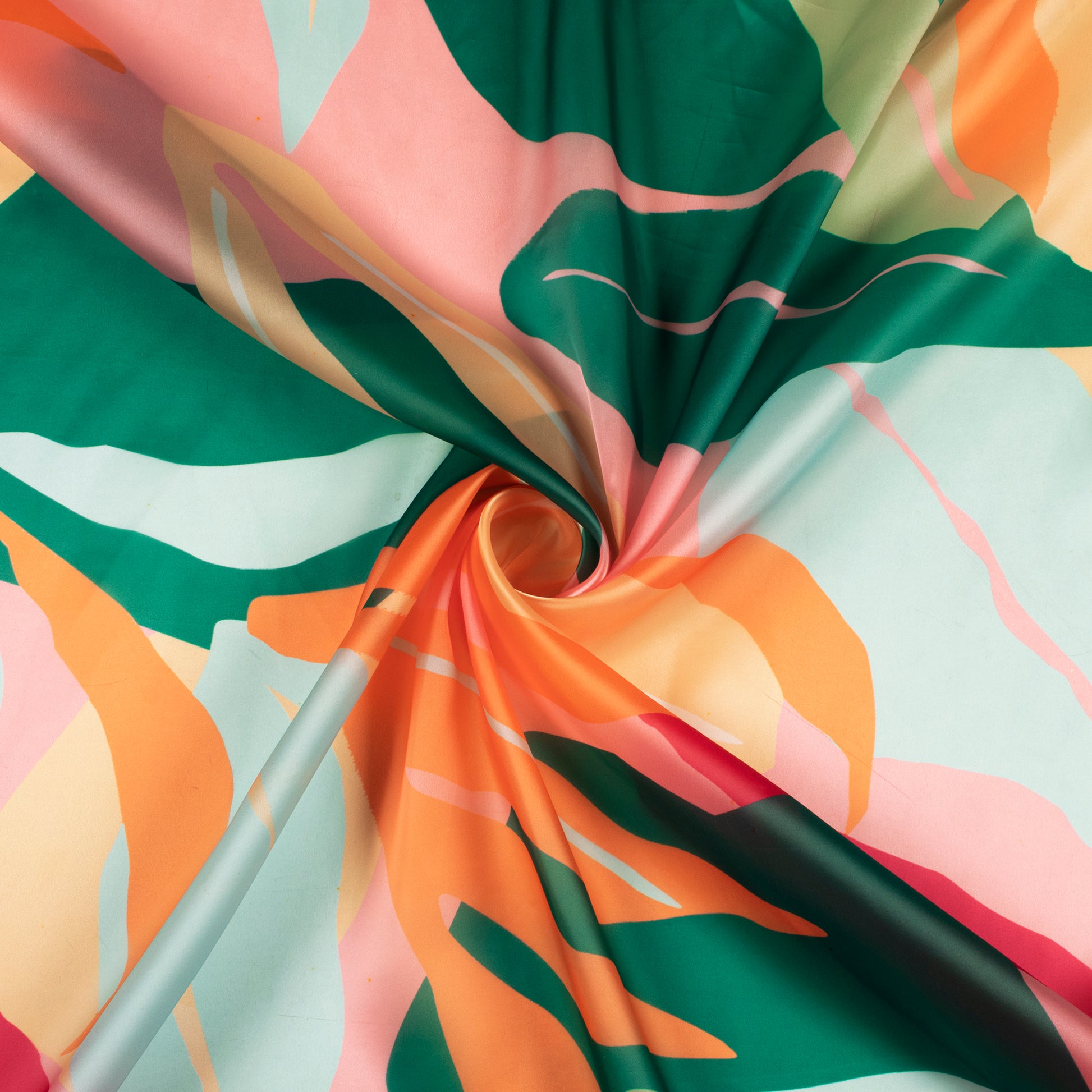 Light Pink And Green Leaf Digital Print Organza Satin Fabric