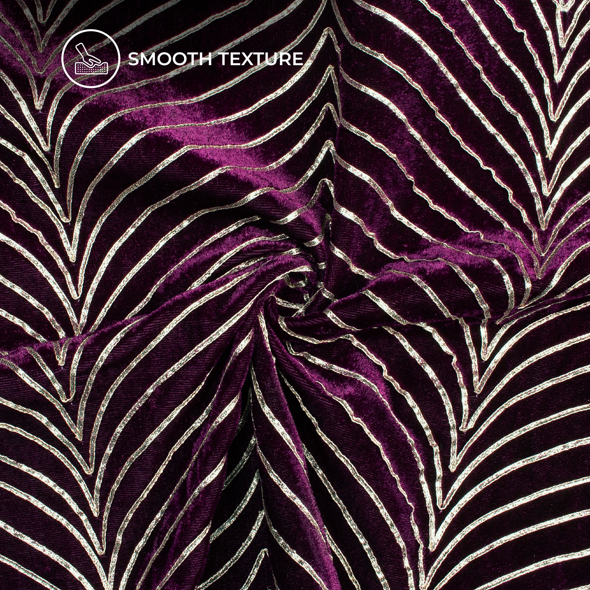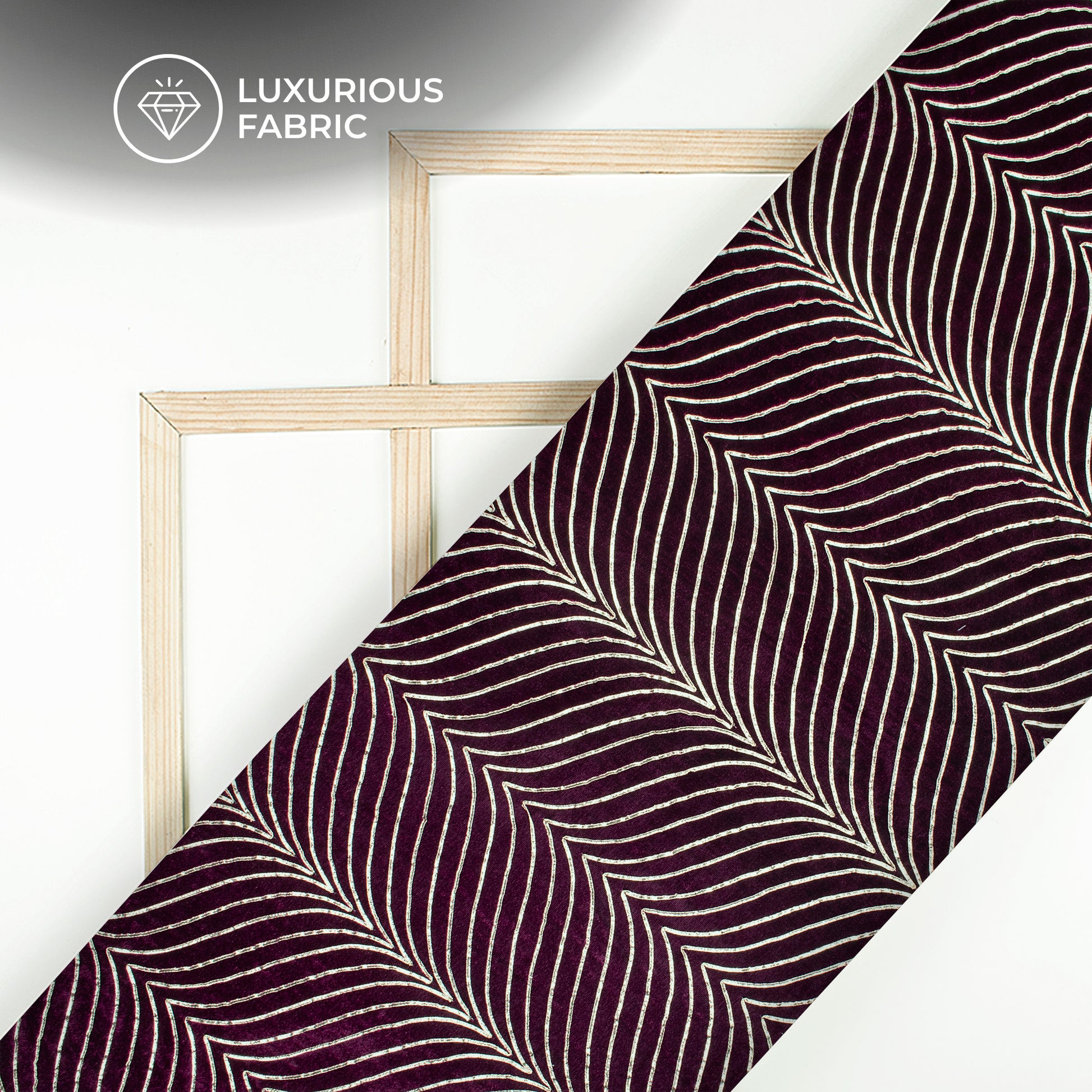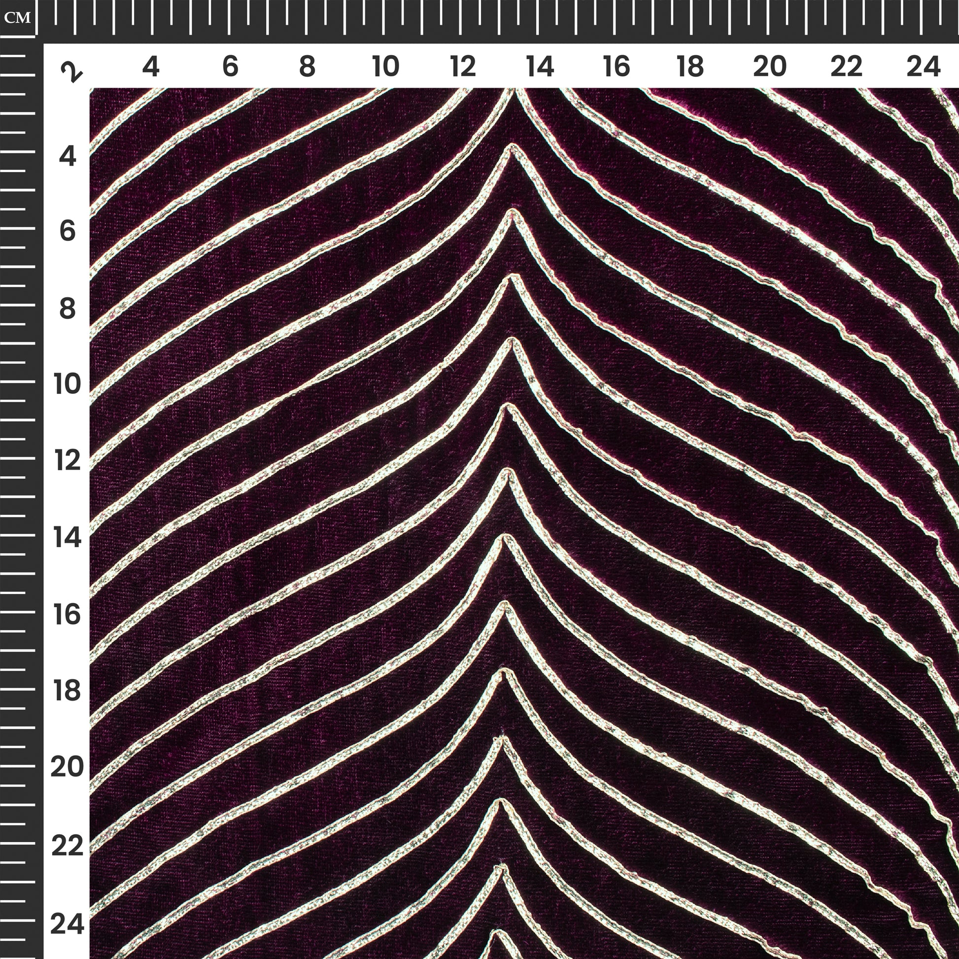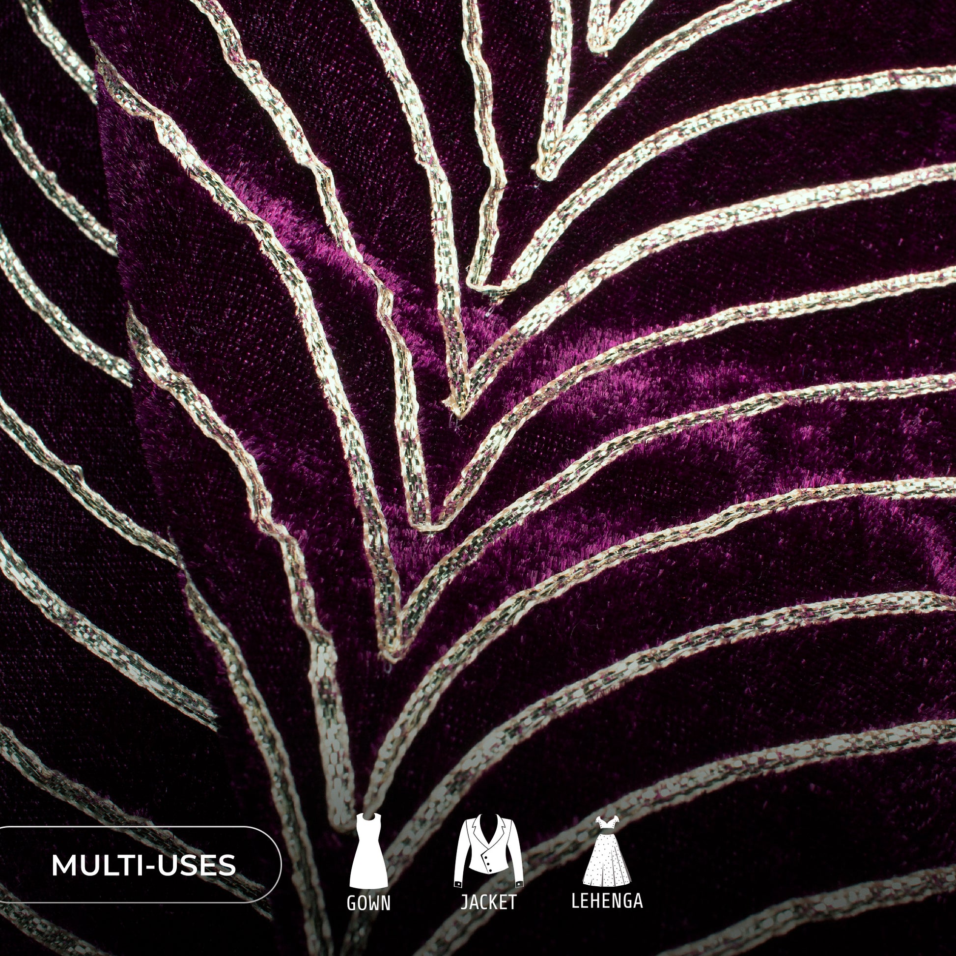 Luxurious Golden Zari Chevron Embroidery On Wine Purple Velvet Fabric