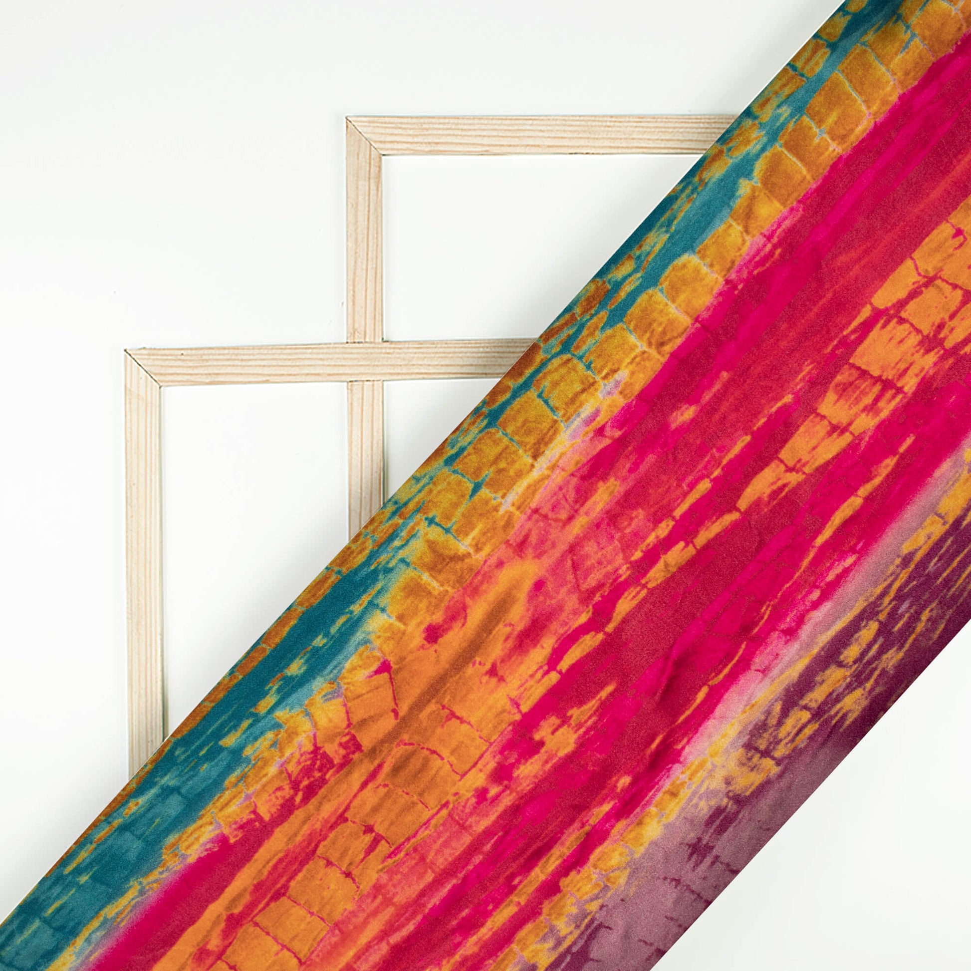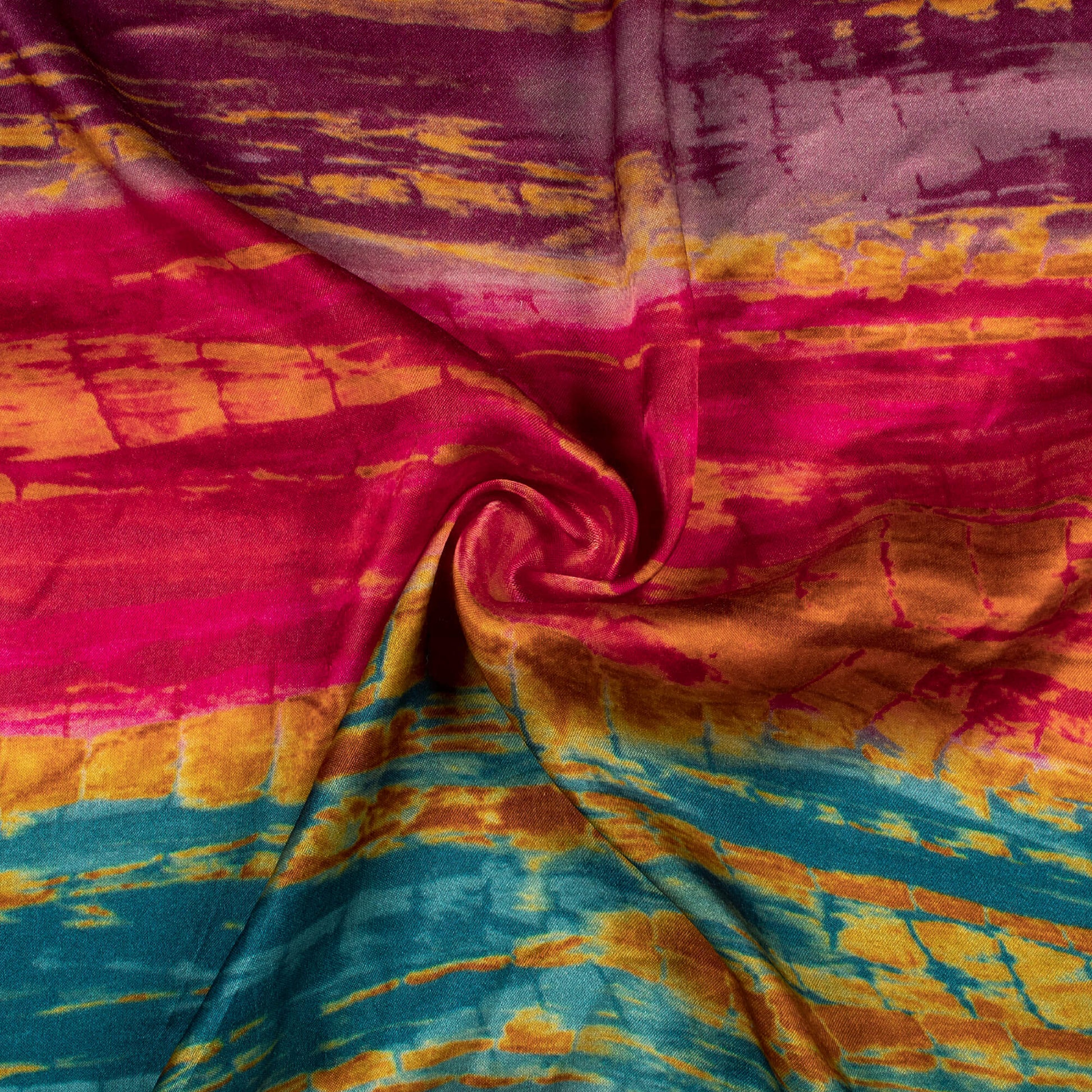 Magenta Pink And Orange Shiiborii Digital Print Viscose Gaji Silk Fabric