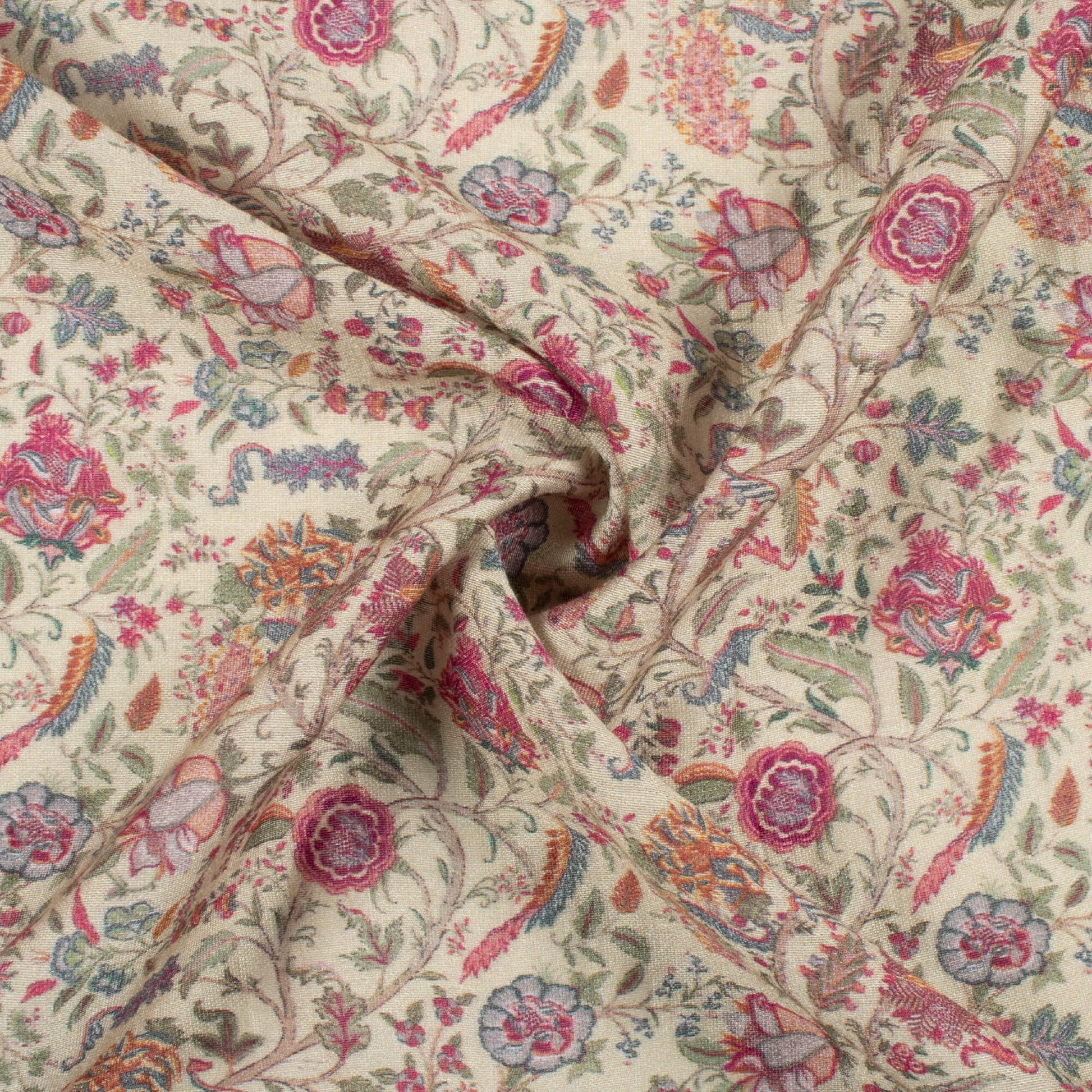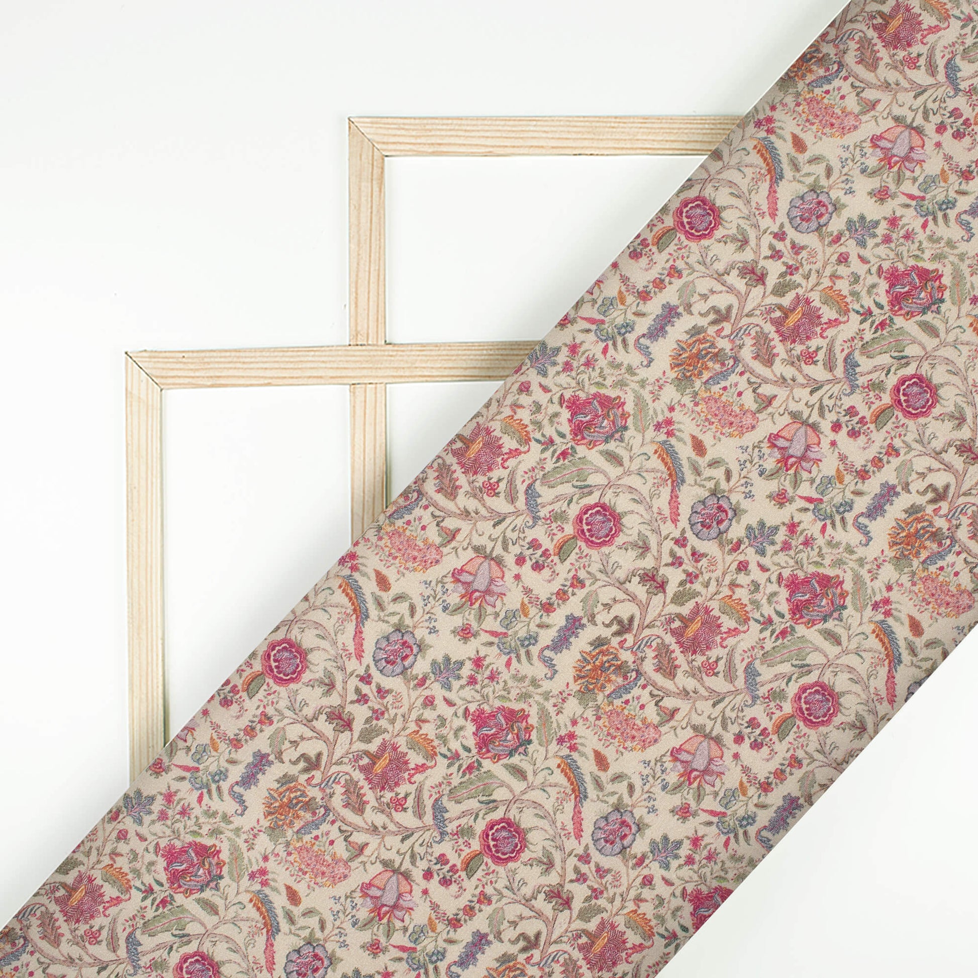 Moss Green And Magenta Purple Floral Pattern Digital Print Viscose Chanderi Fabric