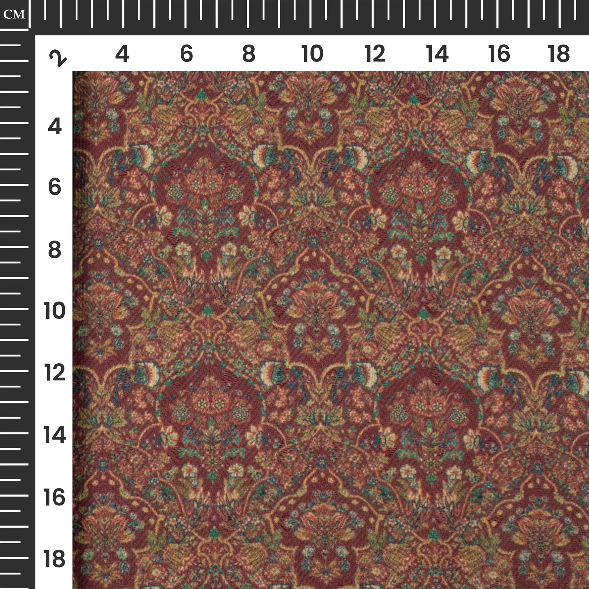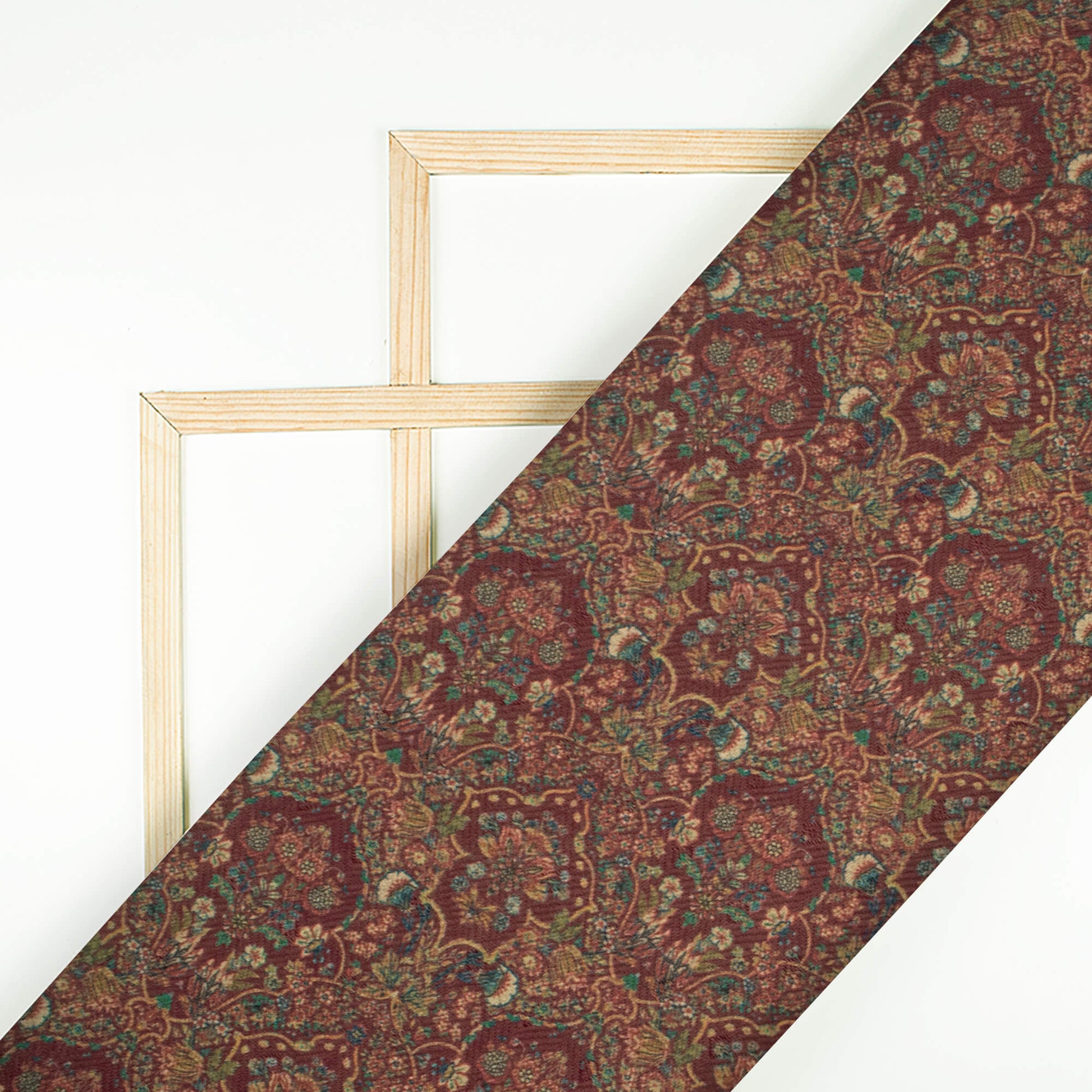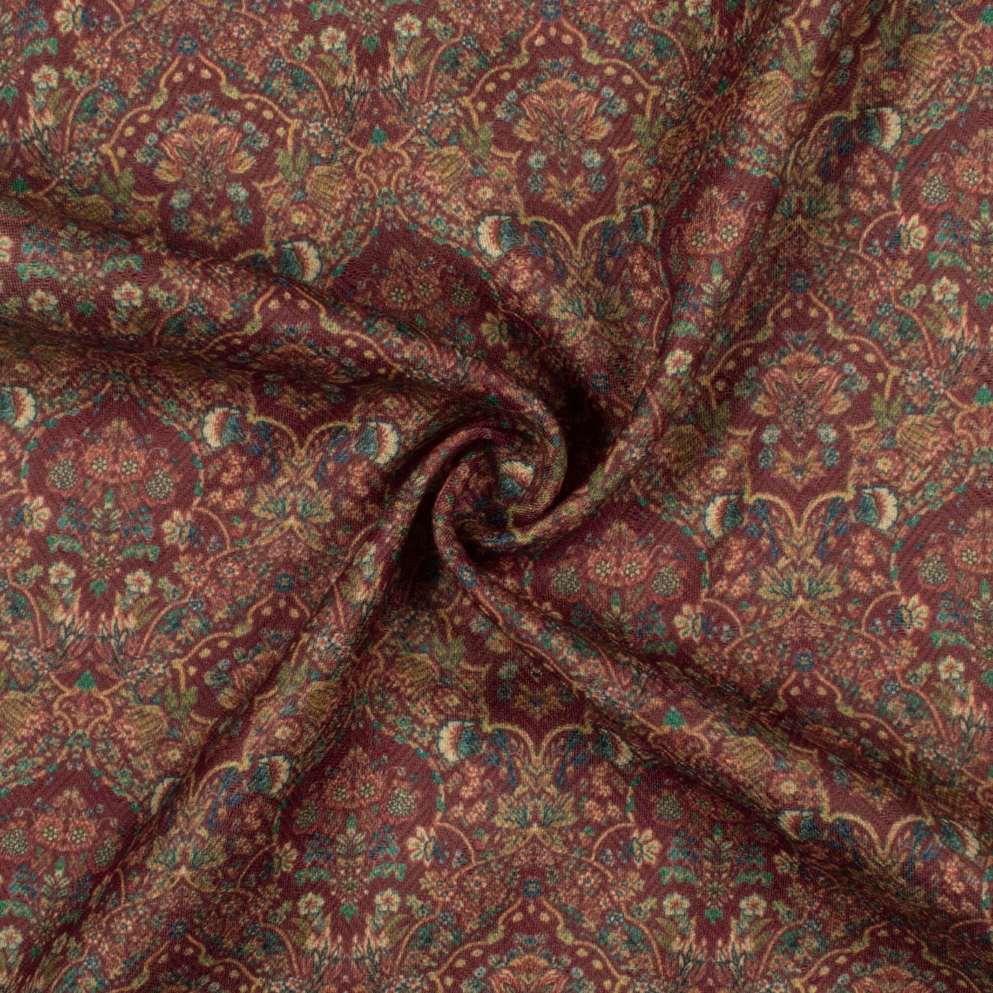 Maroon And Green Ethnic Pattern Digital Print Elegant Blend Pashmina Fabric