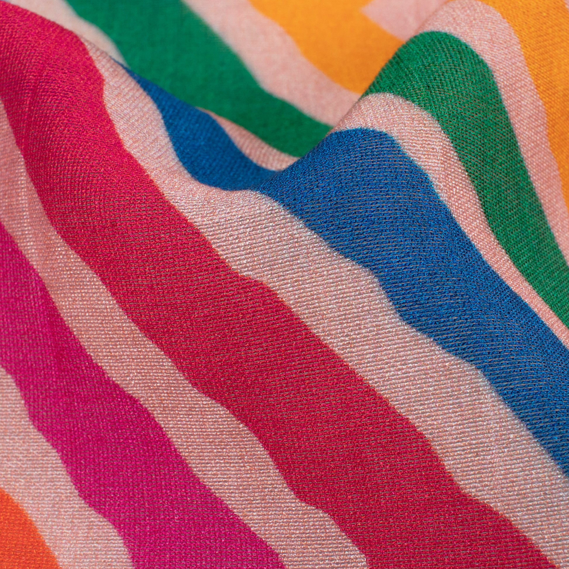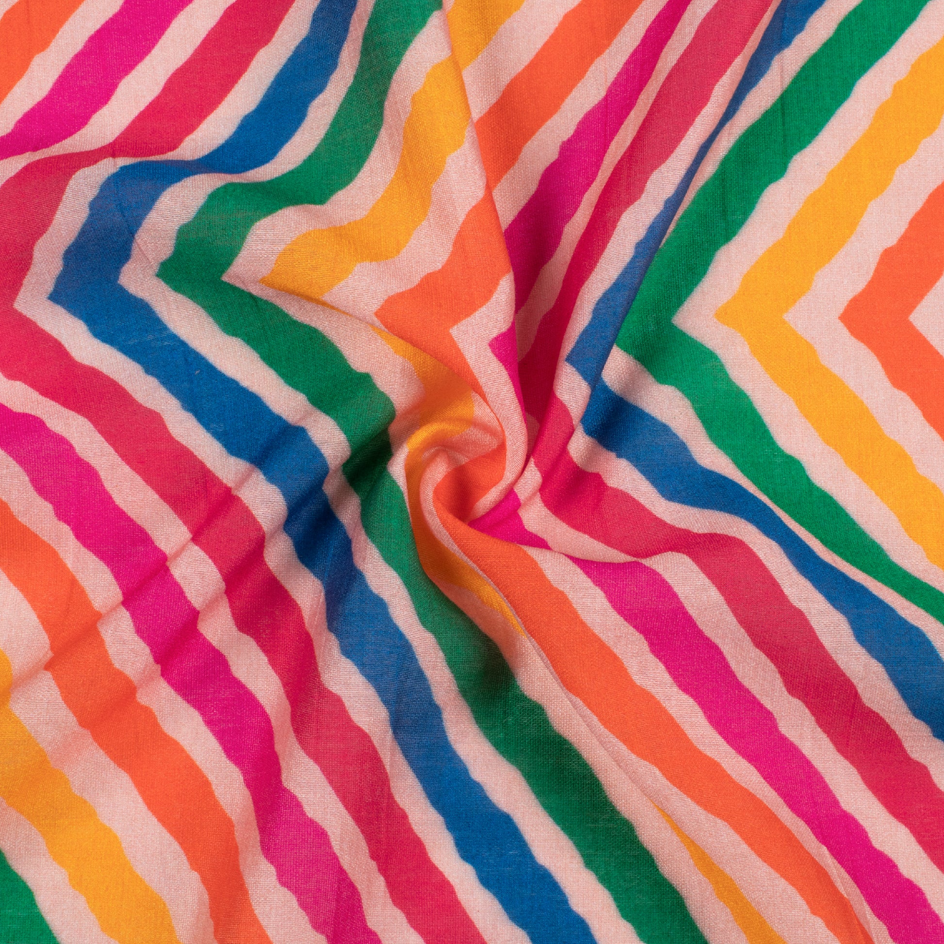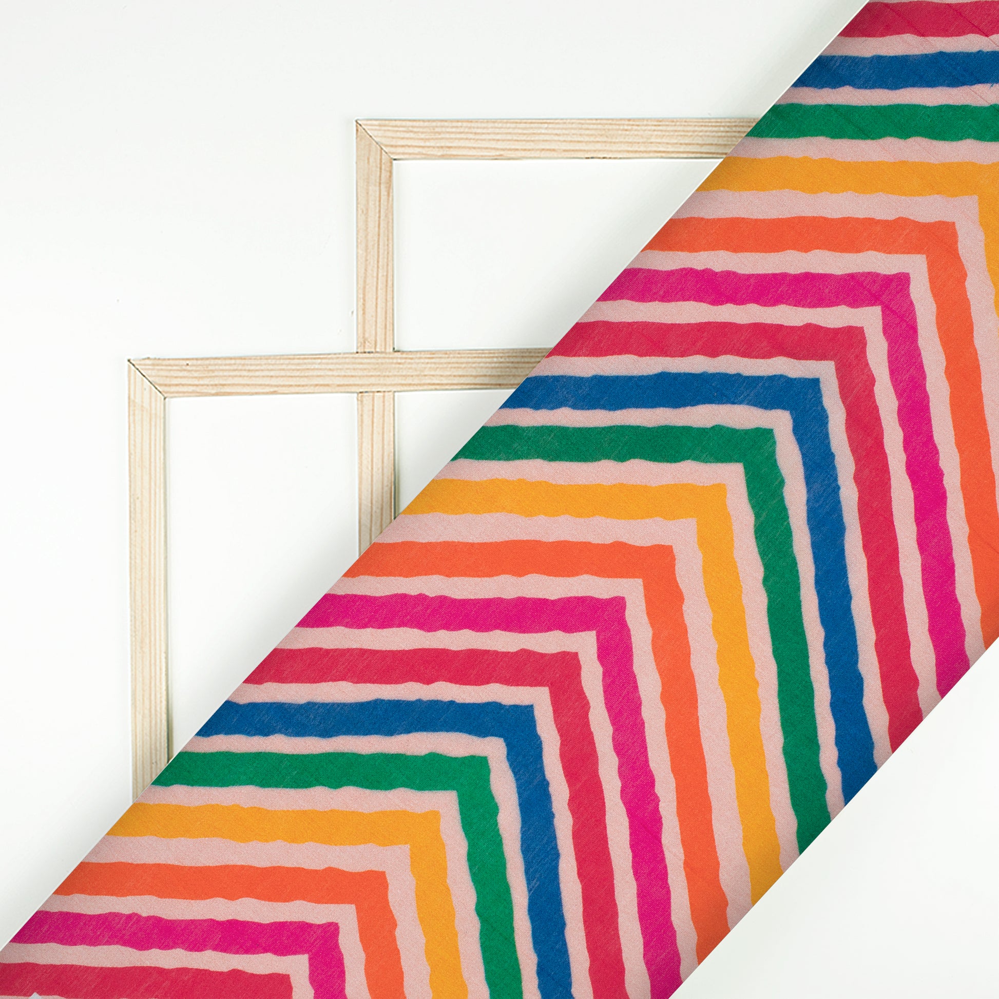 Multi-Color Chevron Pattern Digital Print Viscose Chanderi Fabric