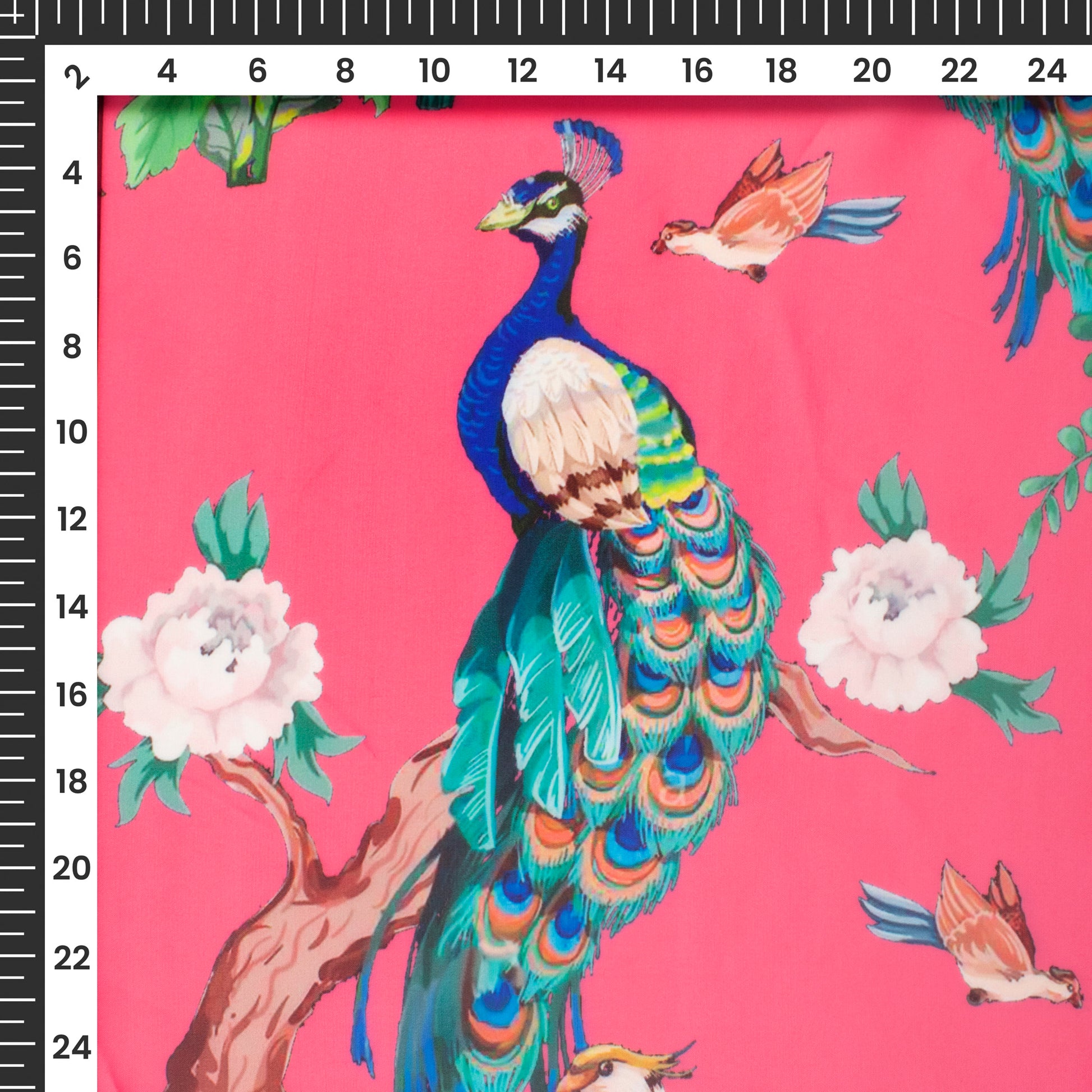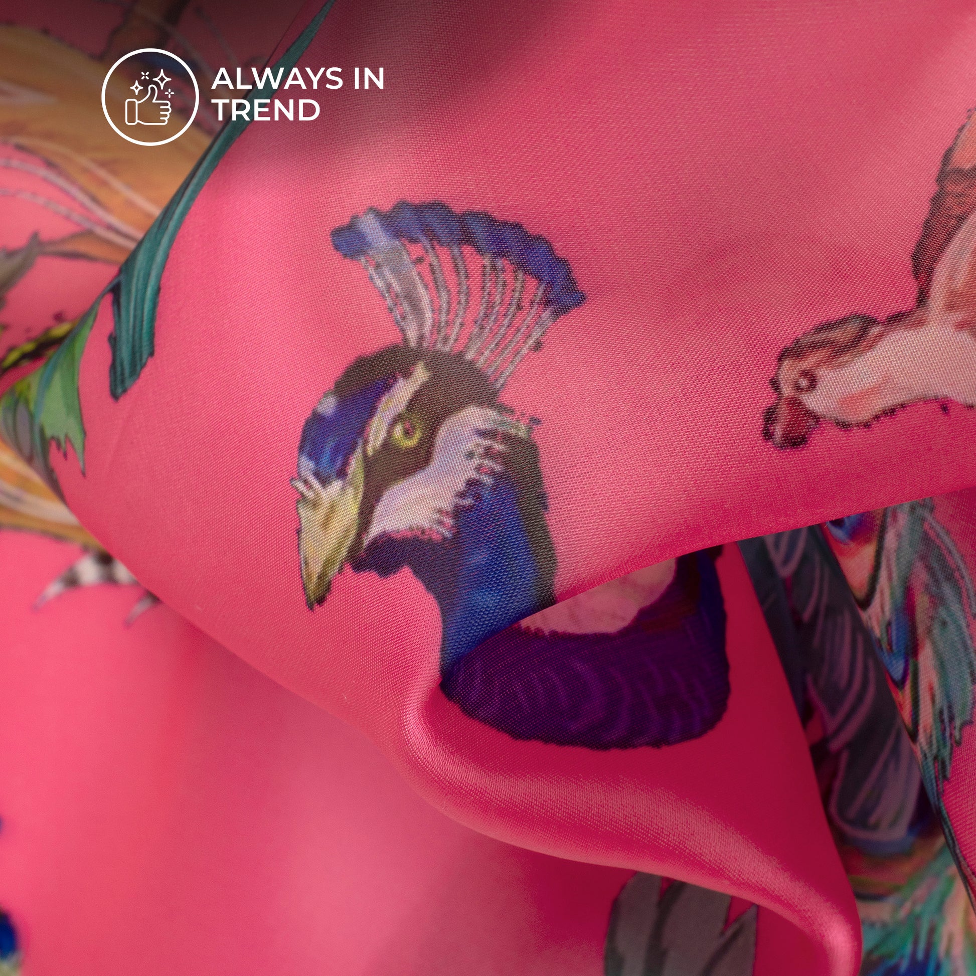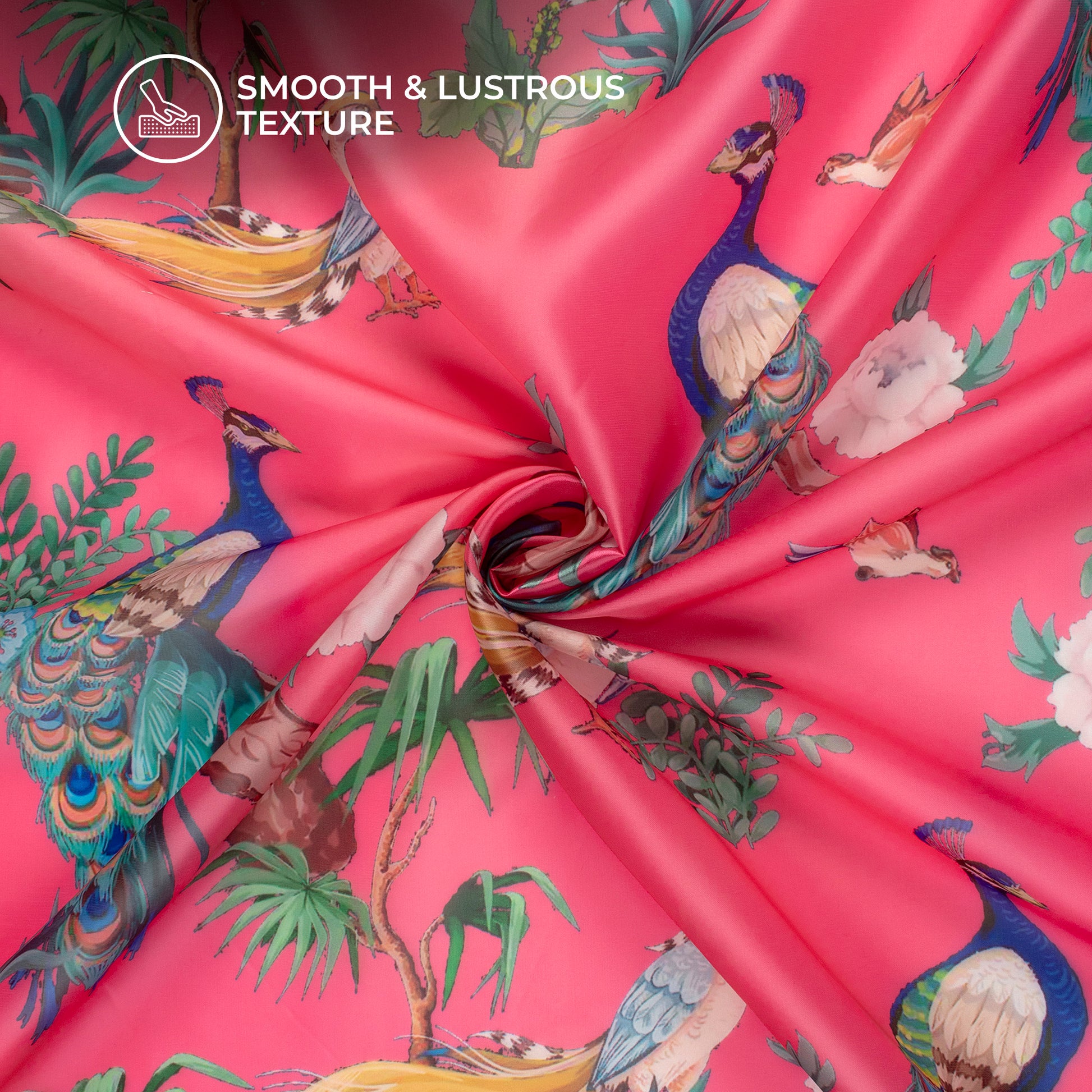 Neon Pink Peacock Digital Print Organza Satin Fabric