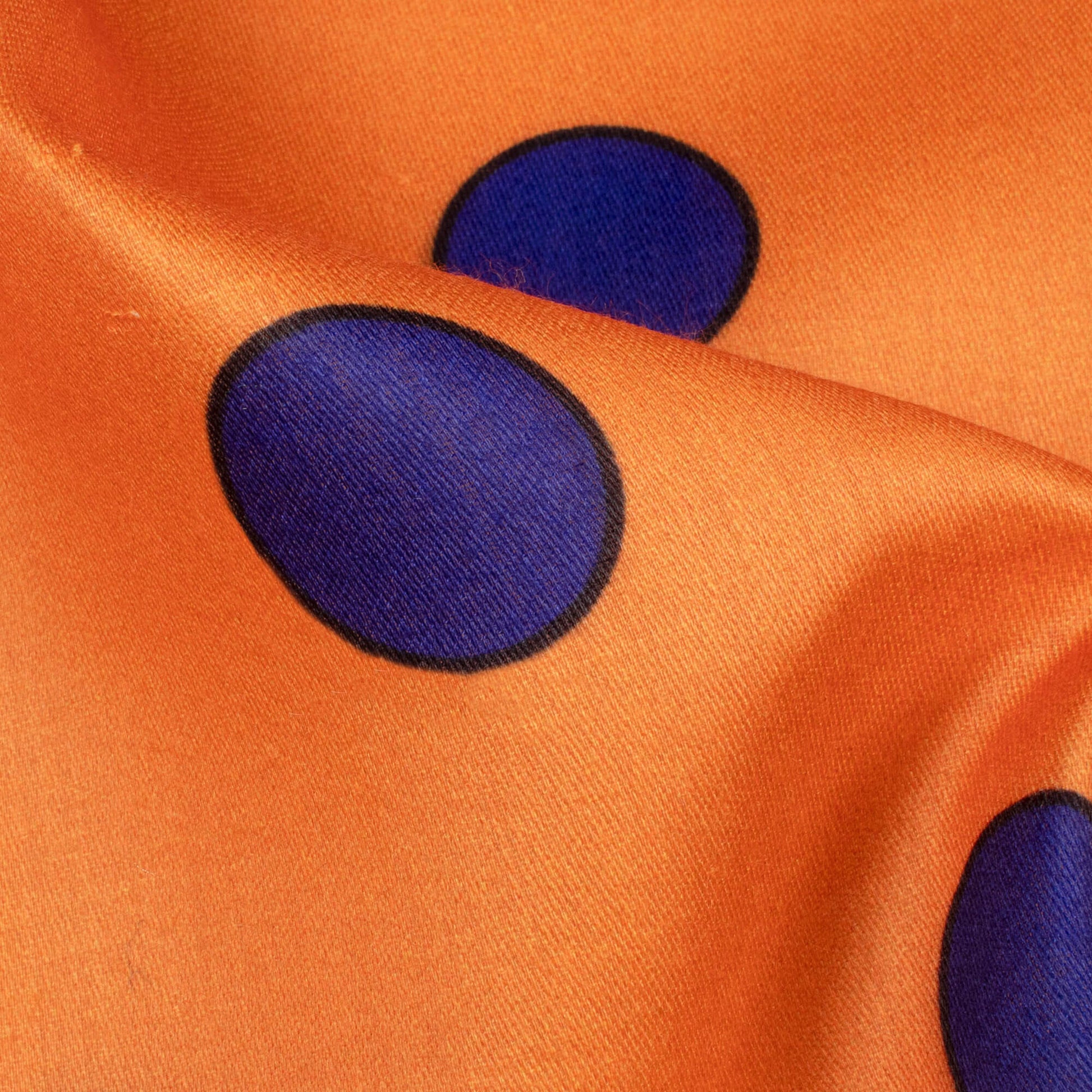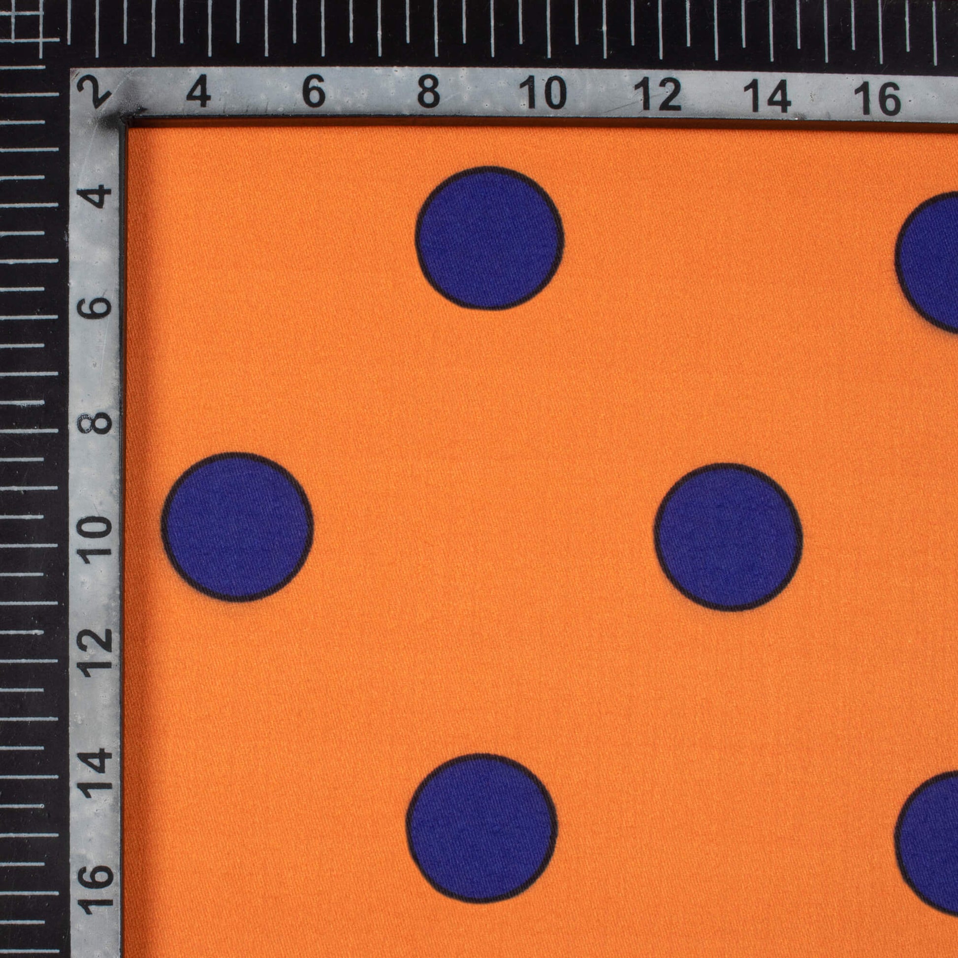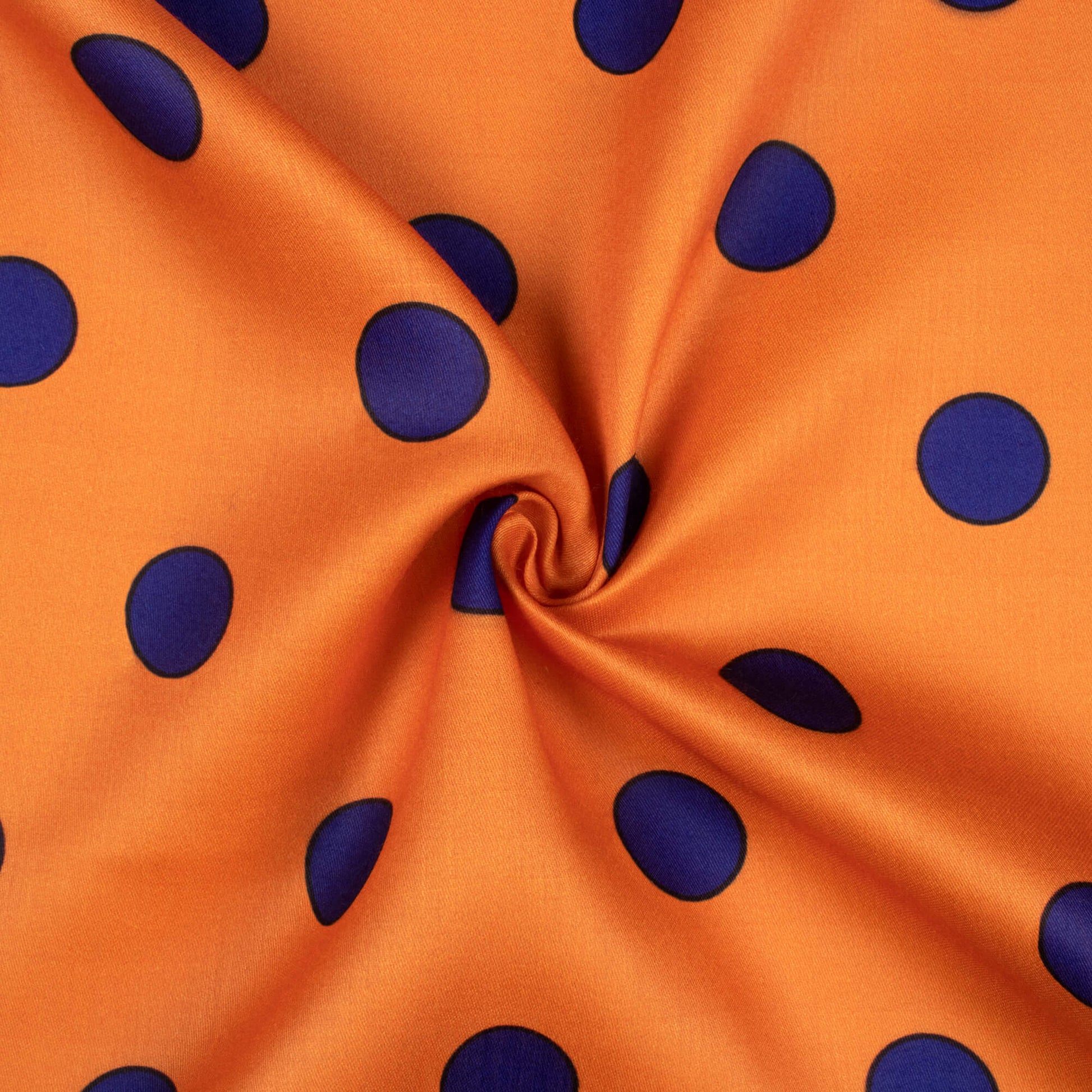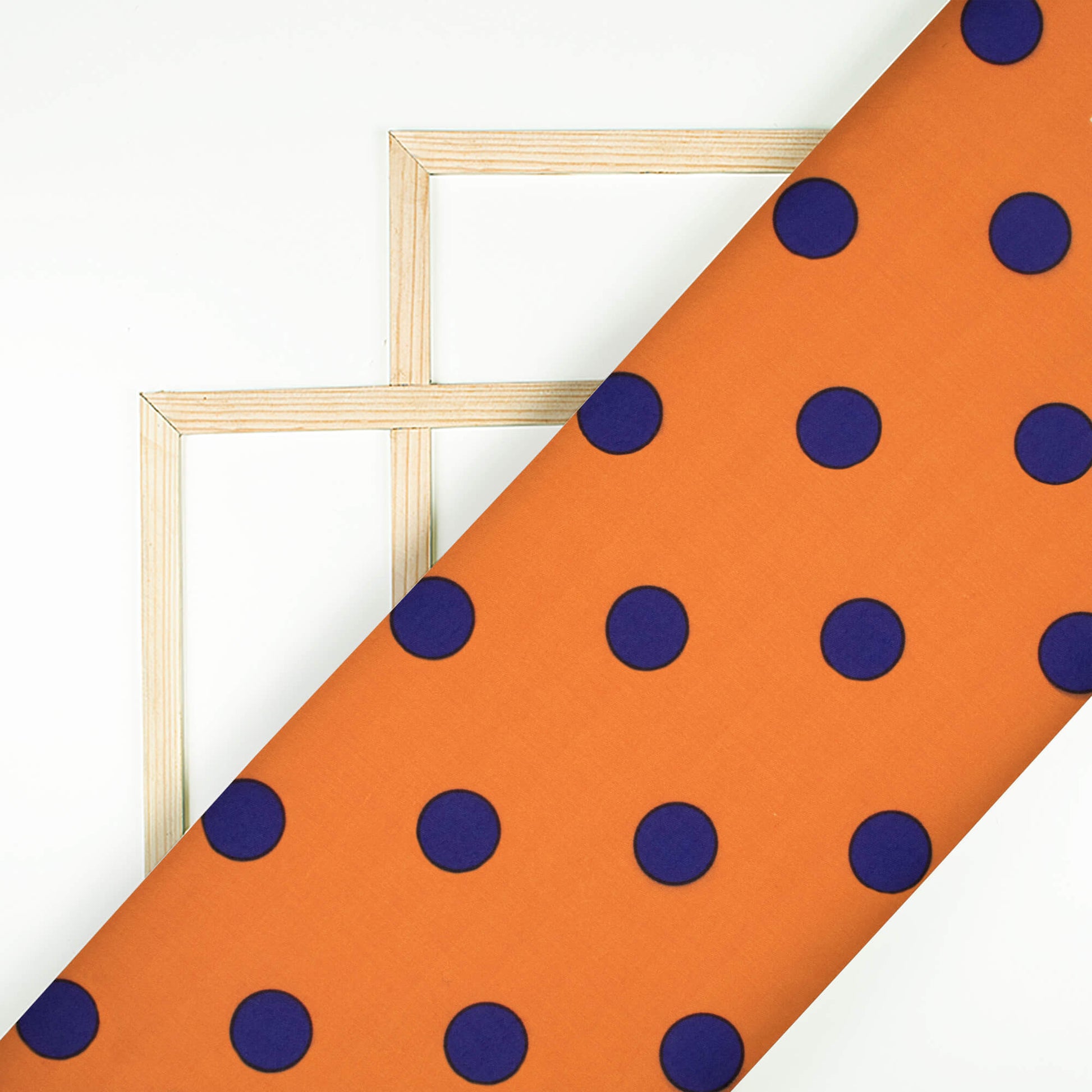 Ochre Orange And Navy Blue Polka Dots Pattern Digital Print Poly Glazed Cotton Fabric