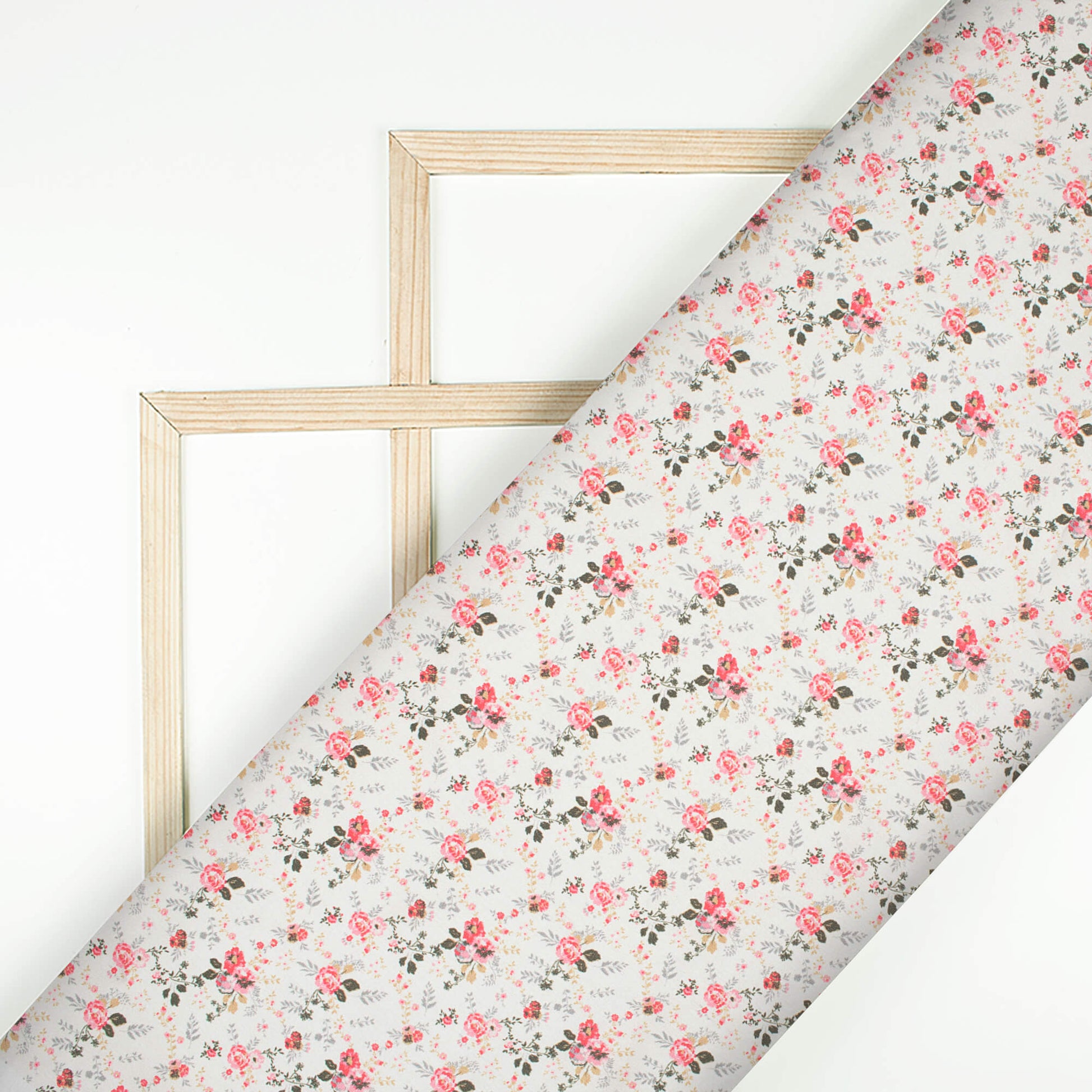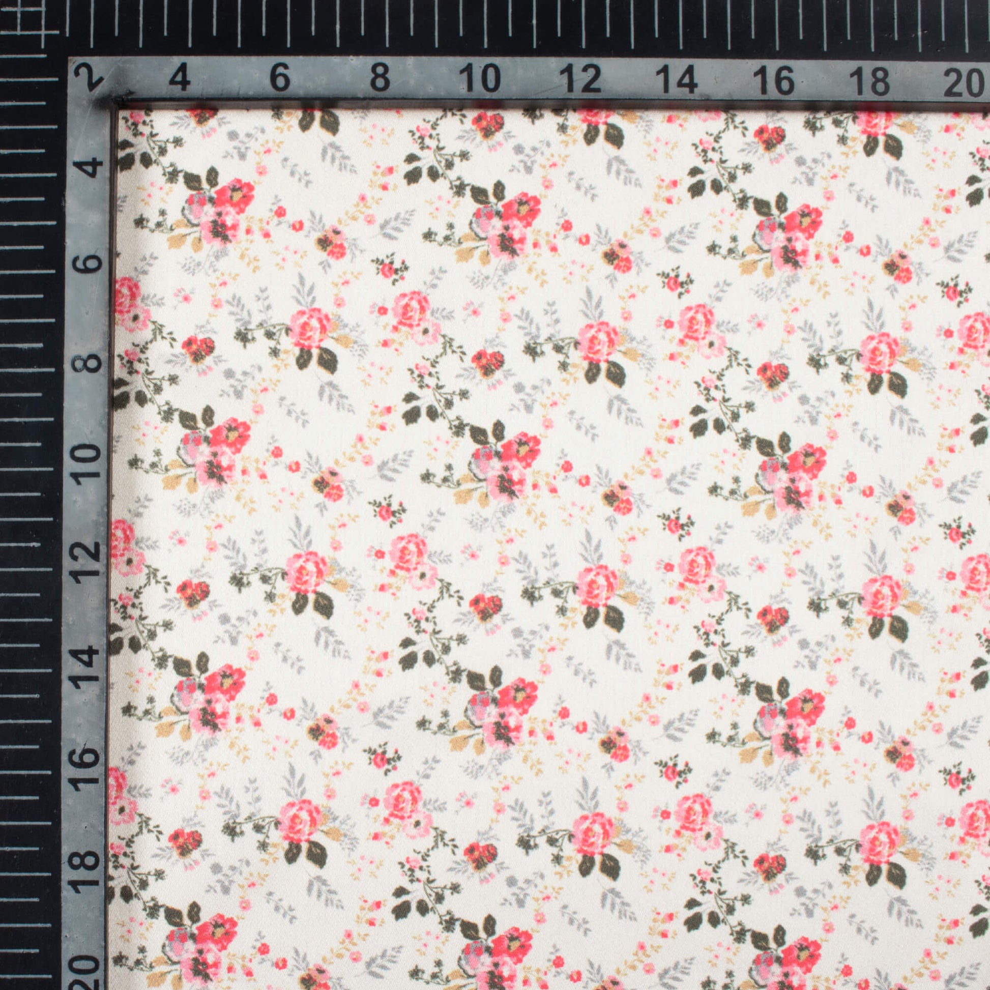 Off White And Taffy Pink Floral Pattern Digital Print Japan Satin Fabric