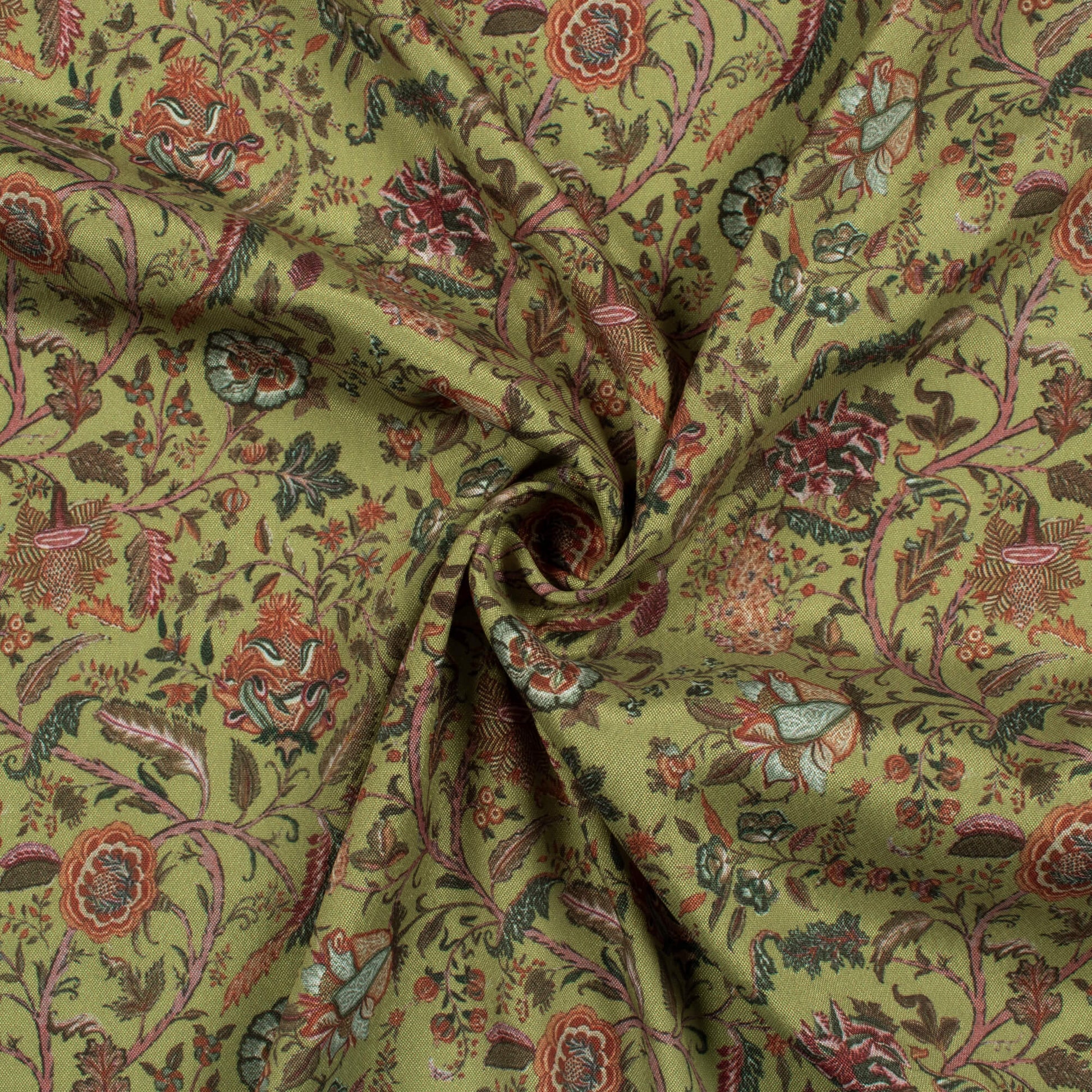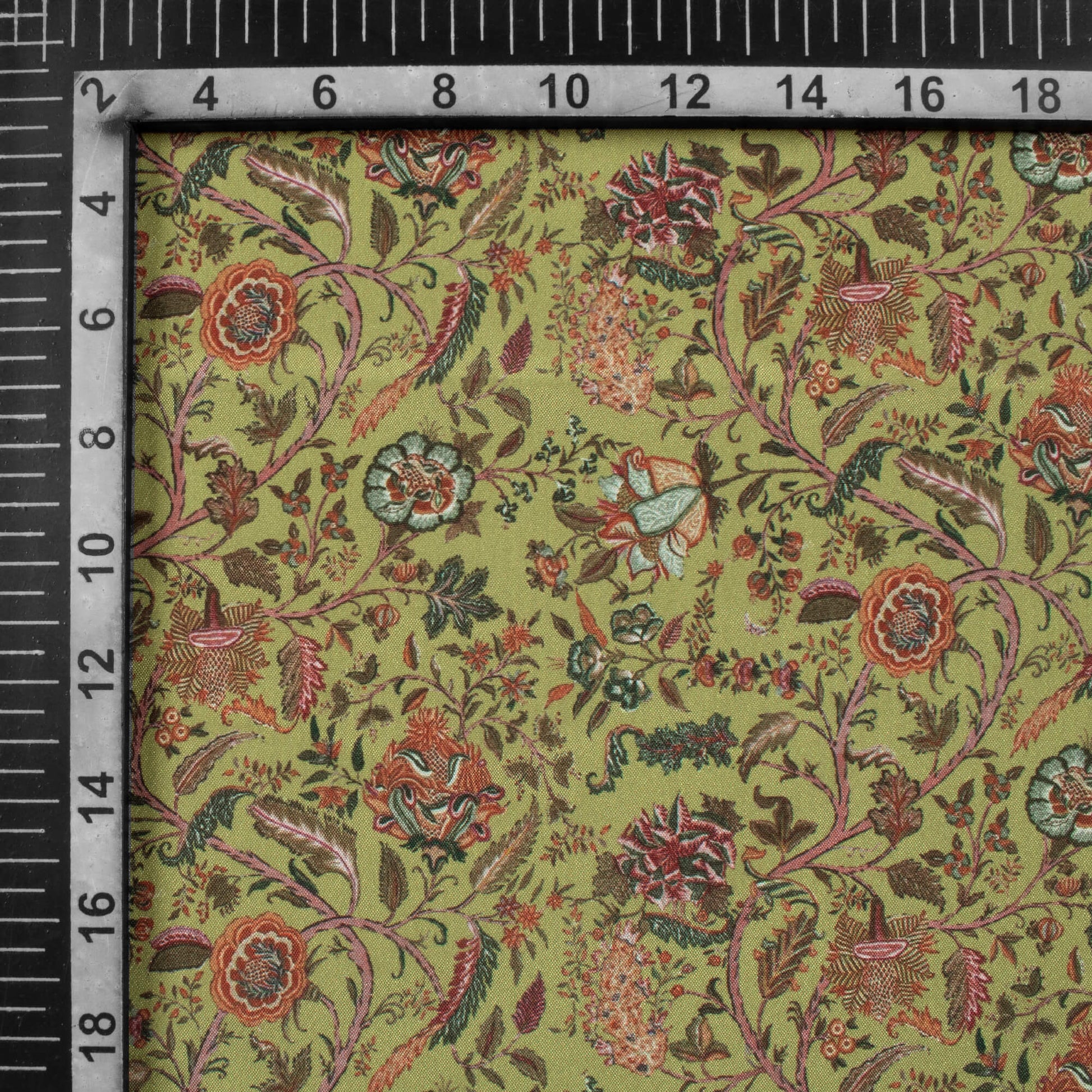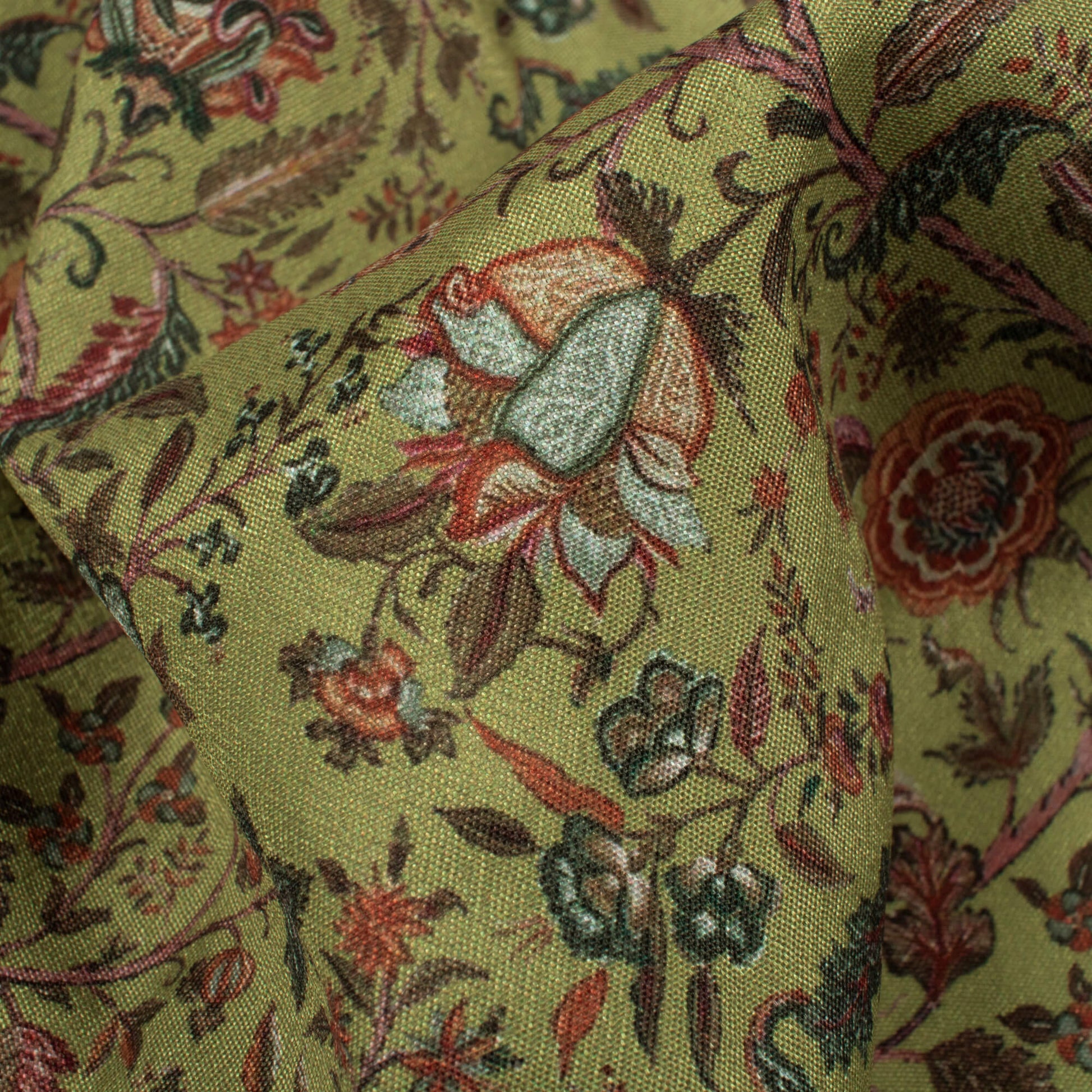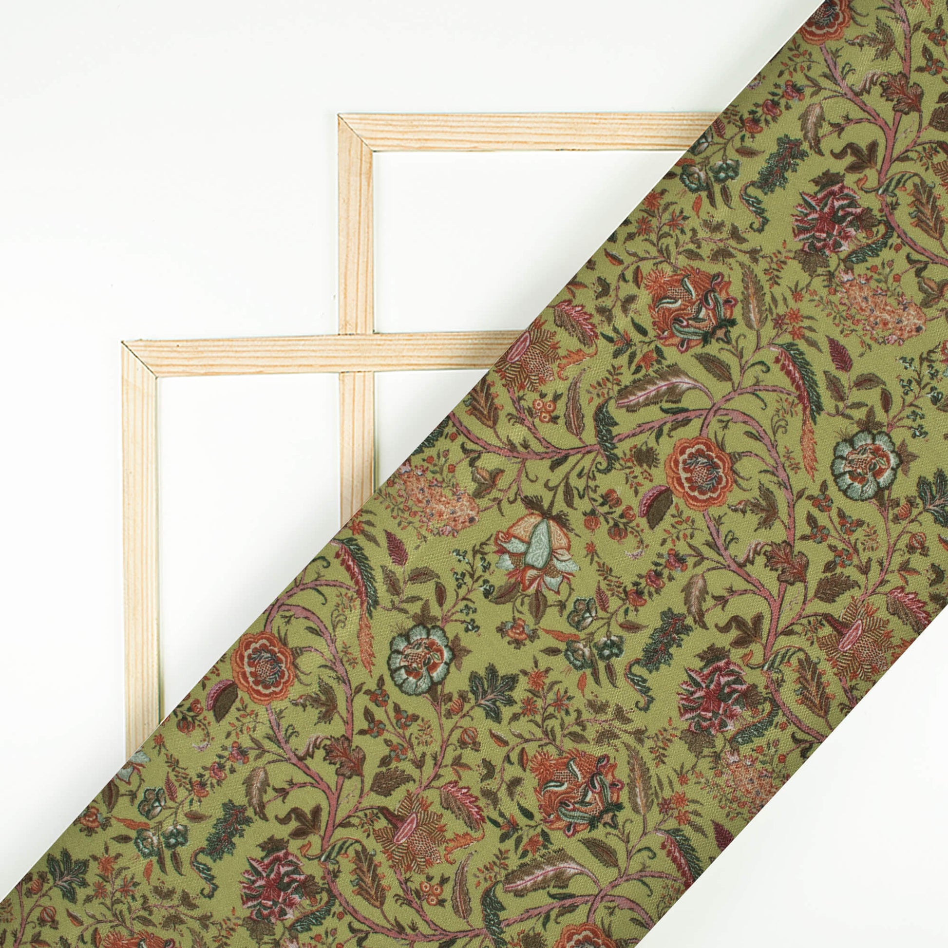 Olive Green Floral Pattern Digital Print Crepe Silk Fabric