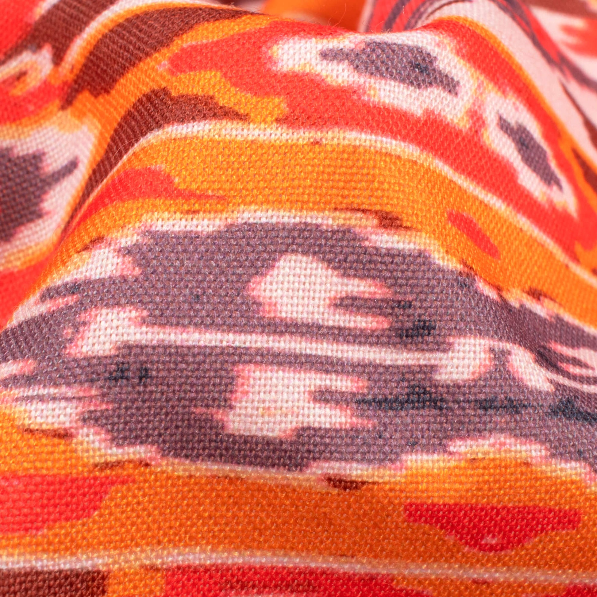 Orange And Red Ikkat Pattern Digital Print Rayon Fabric