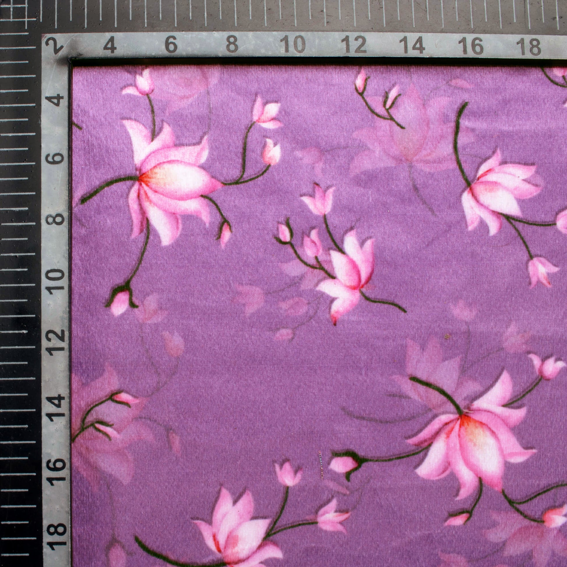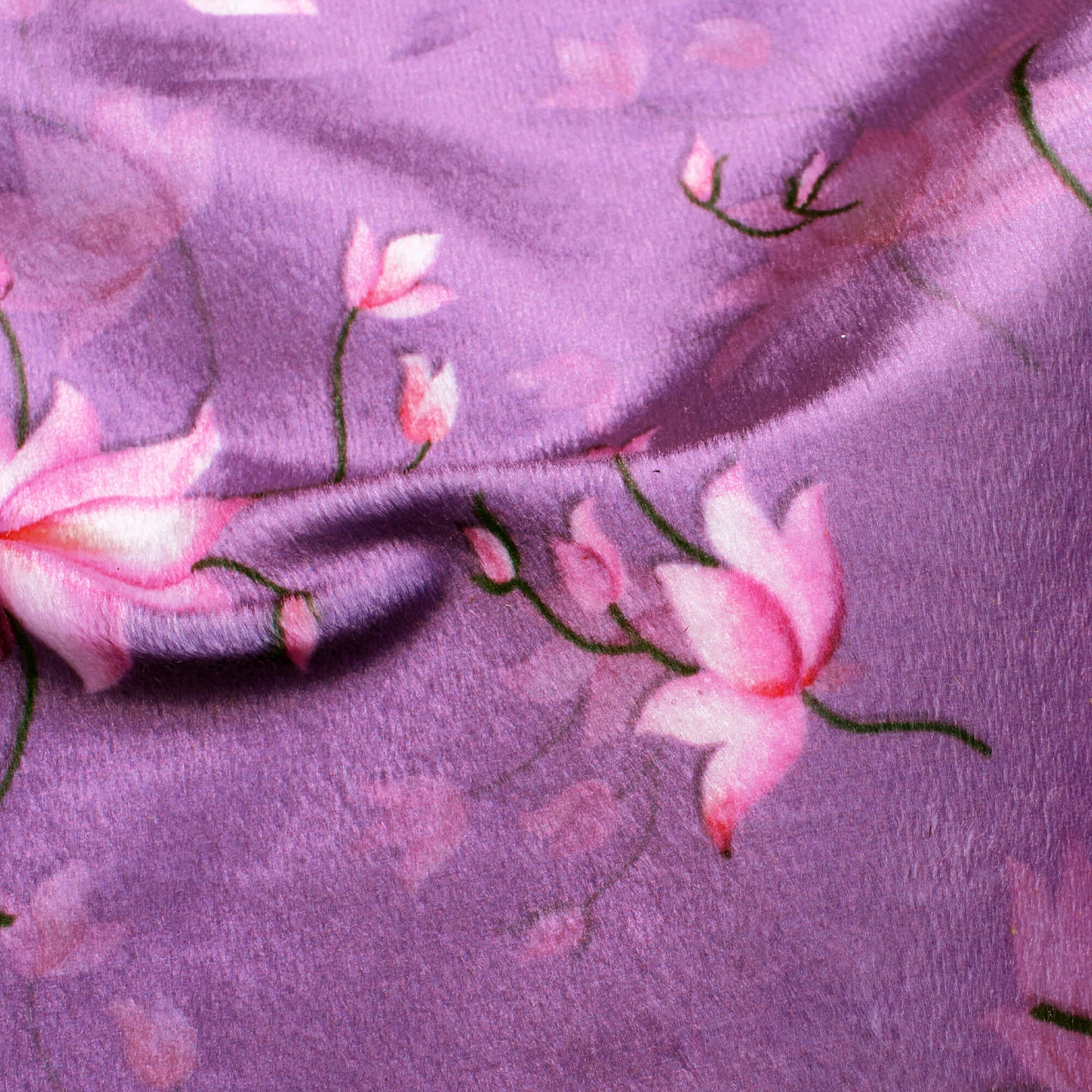 Purple And Rose Pink Floral Pattern Digital Print Velvet Fabric (Width 58 Inches)