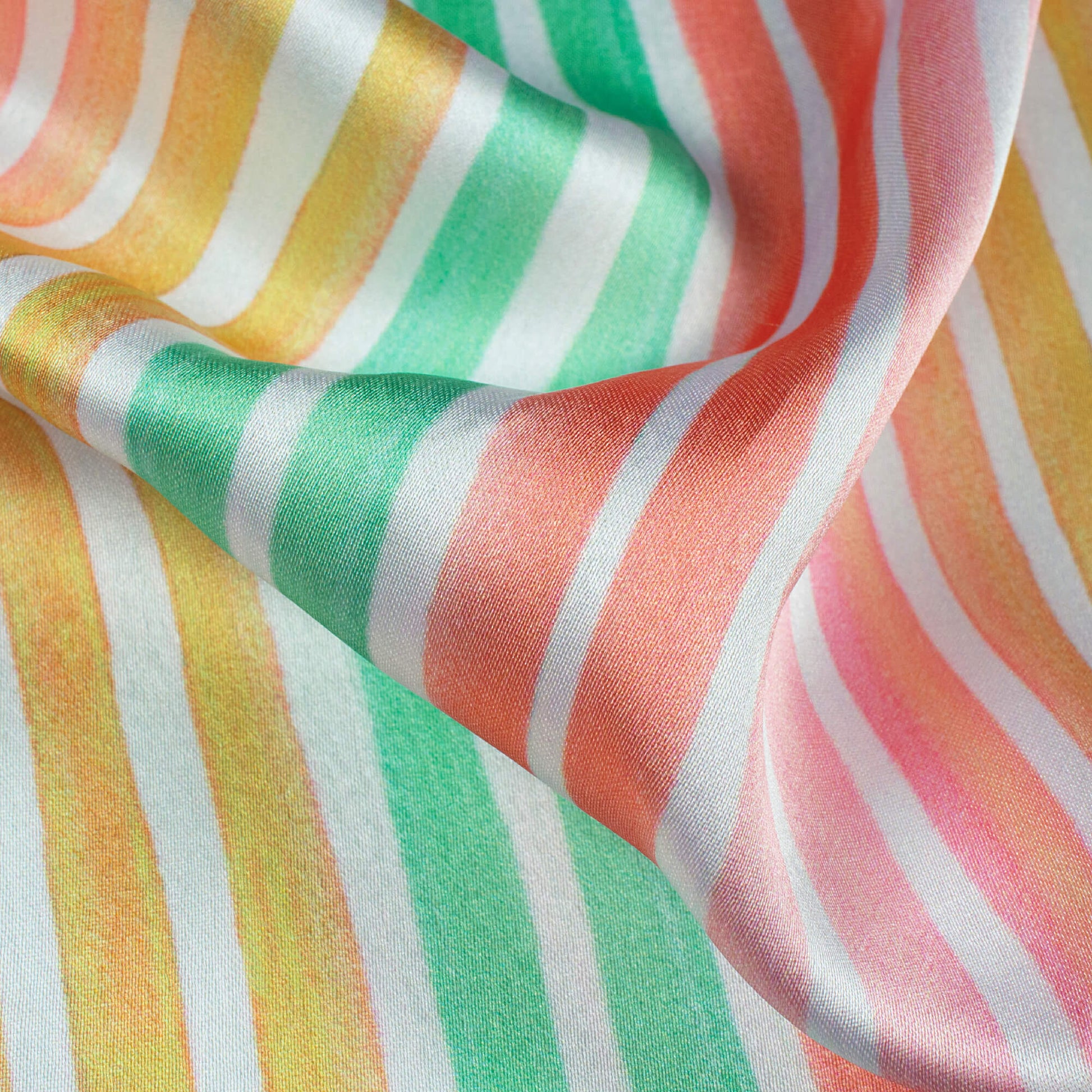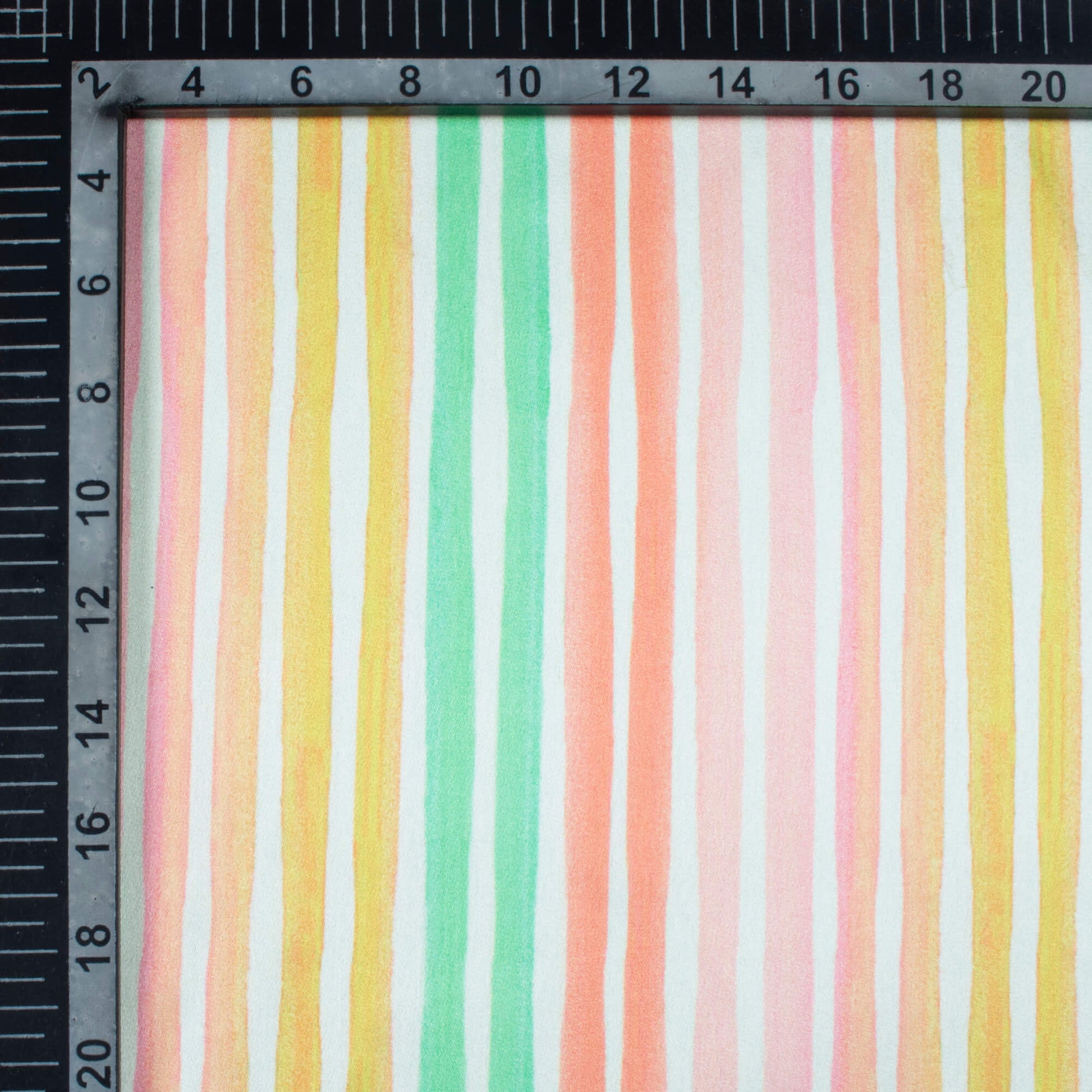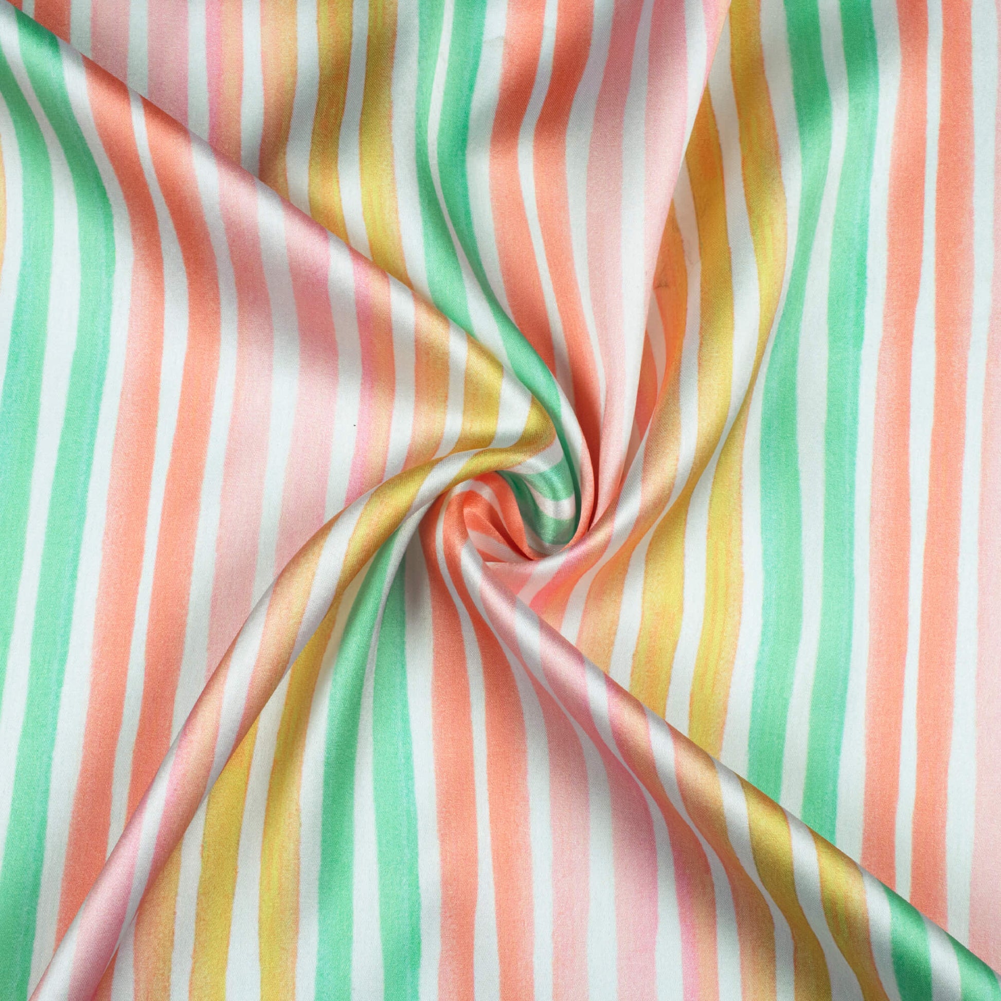 Pale Pink And Jade Green Stripes Pattern Digital Print Japan Satin Fabric