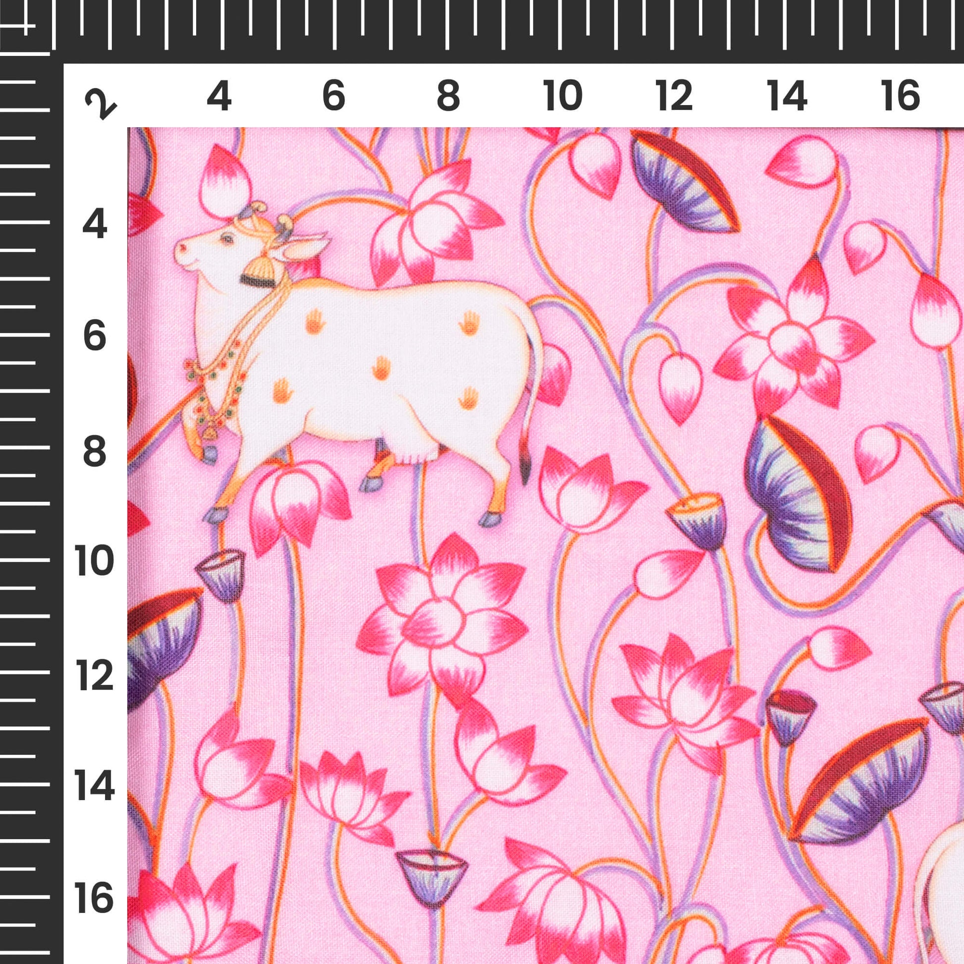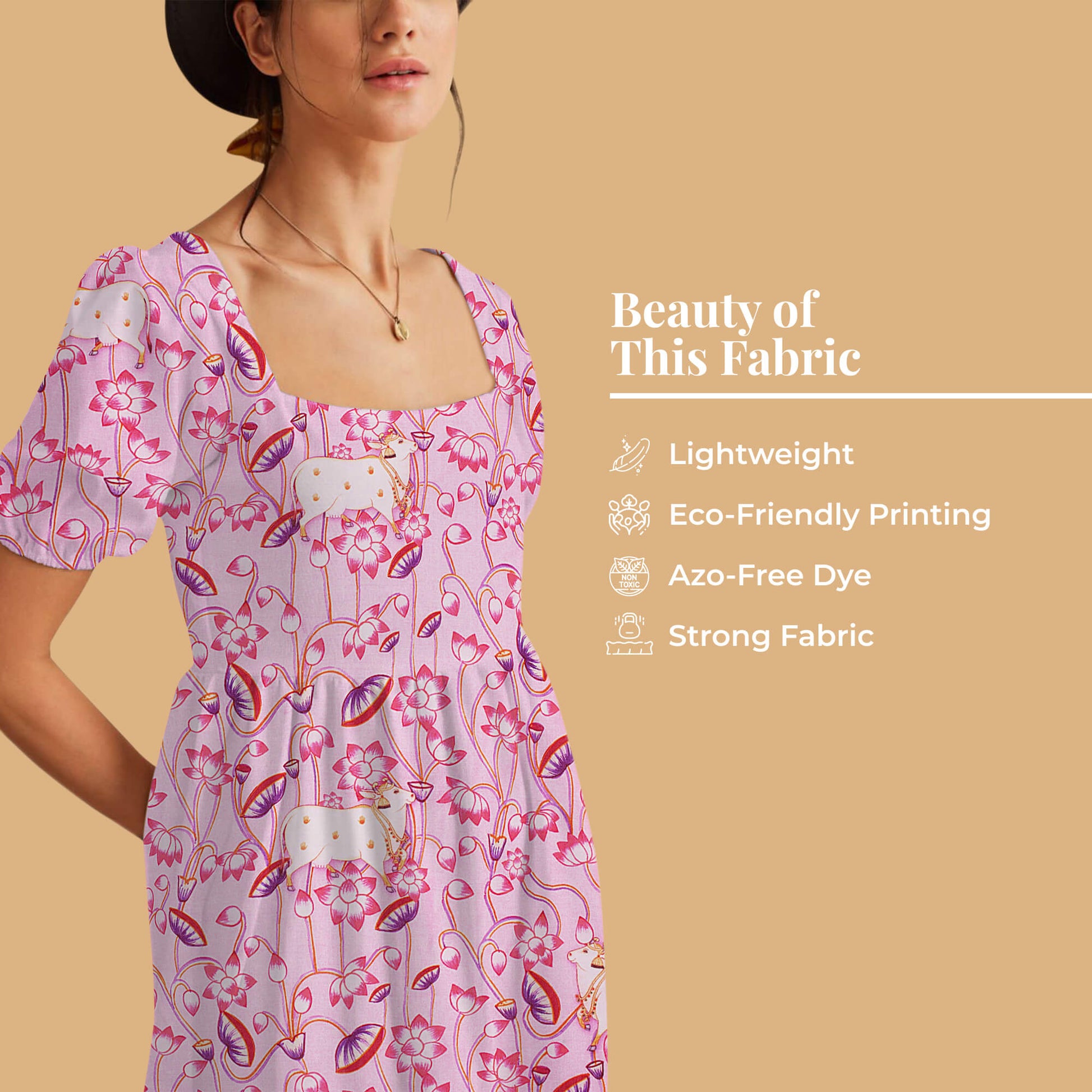 The Pichwai pattern collection from fabcurate is an adoption of the Pichwai painting that depicts the historical events of Lord Krishna's life. Motifs of leaves, trees, and scenic beauty on the fabric will surely mesmerize you at a glance. Digitally printed Pichwai patterns are something unique that tell a lot about our culture and one can display them in style. You can wear these fabrics during festive days and special occasions. One can make dresses, sarees, tops, and much more using this fabric.
