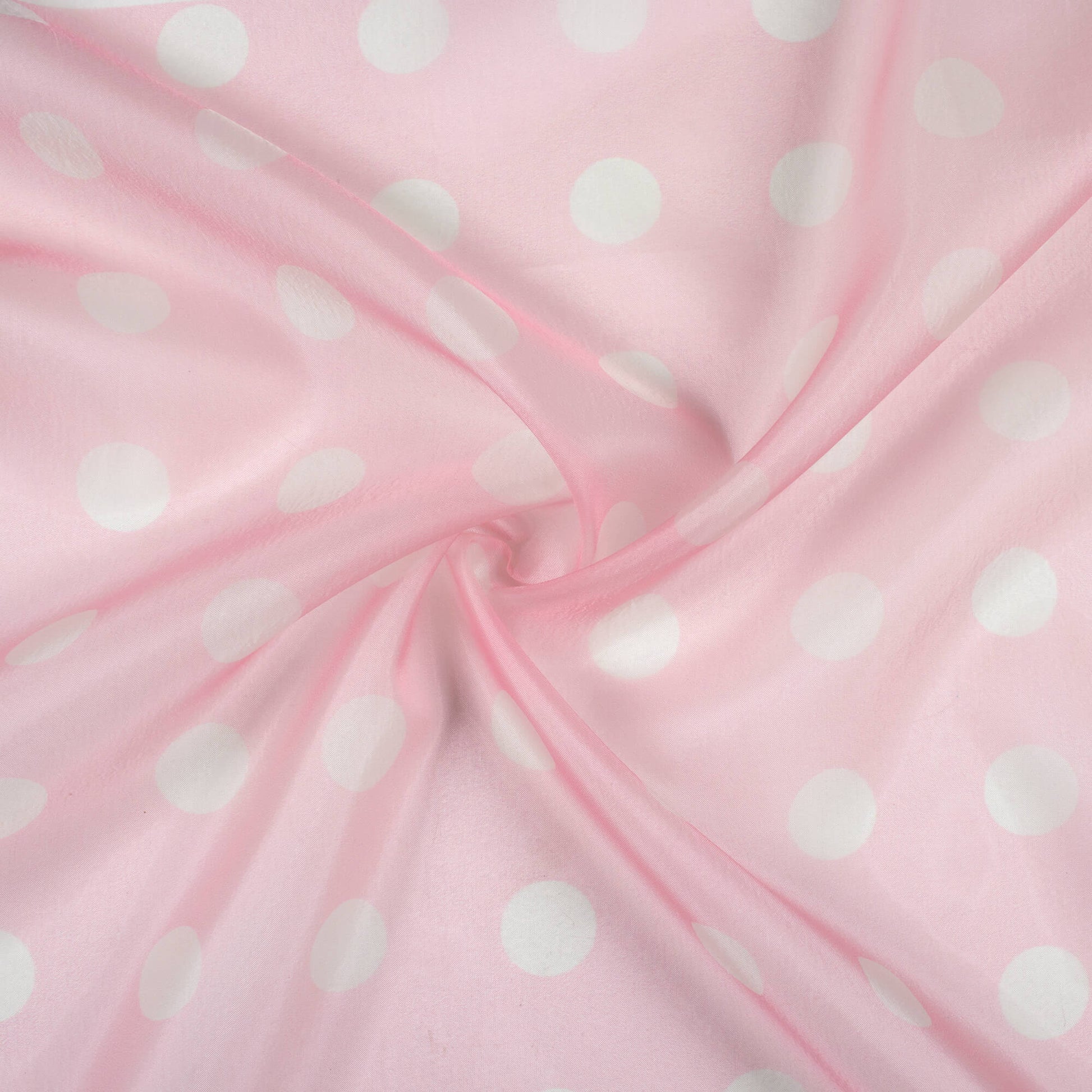 Pale Pink And White Polka Dots Pattern Digital Print Organza Satin Fabric